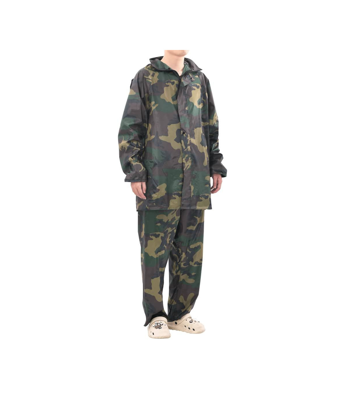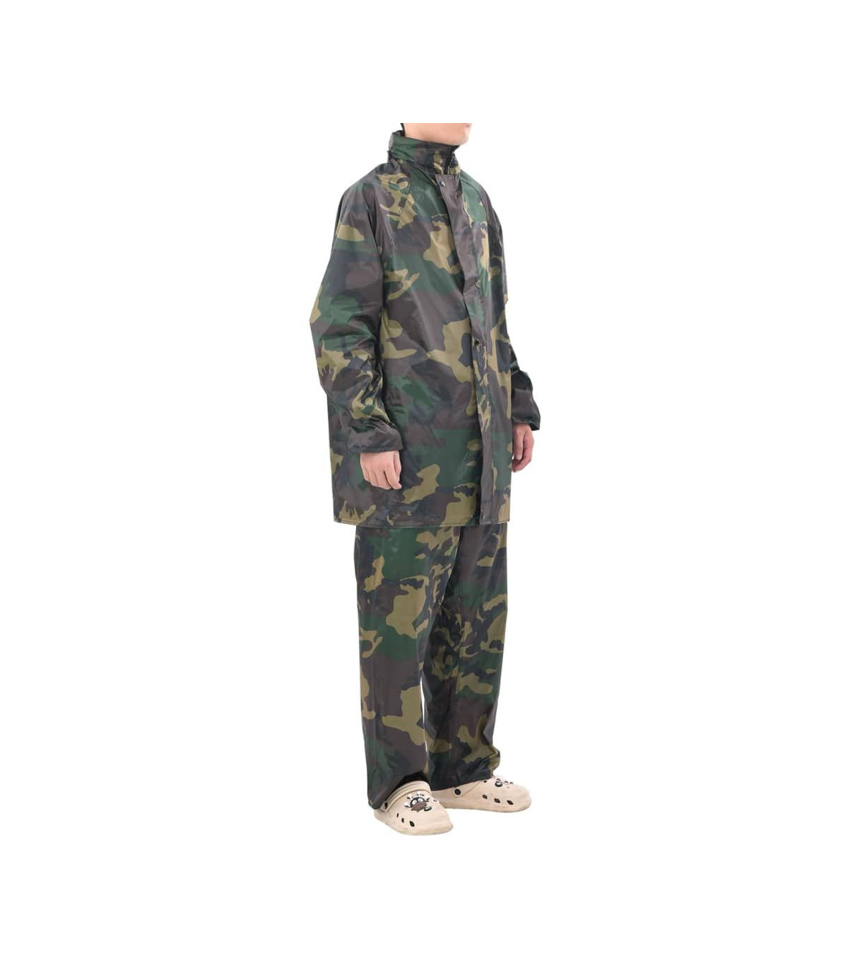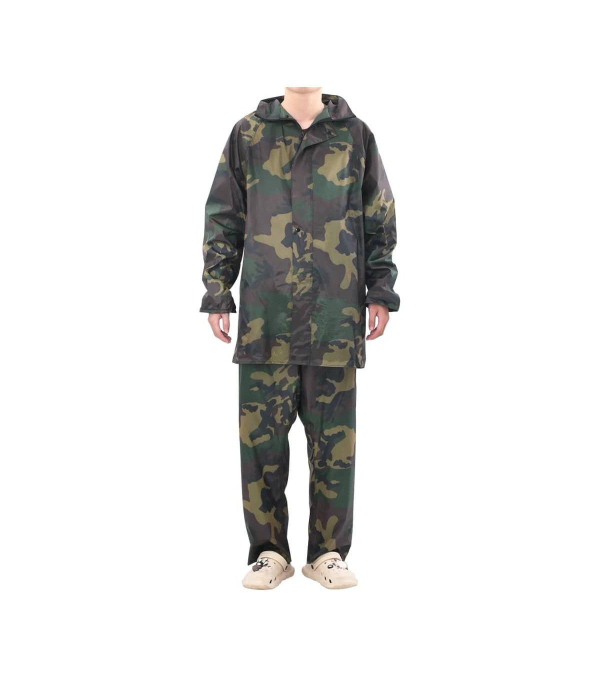 This lightweight yet durable 2-piece rain suit will be ideal for all outdoor activities, such as hiking, walking, fishing, gardening, and building jobs. It features 2 big pockets with flaps on the jacket and 2 side slant pockets so you can reach the pants you are wearing under the rain pant. There is also a hidden hood in the jacket collar. The elastic sleeve cuffs and waistband will fit different sizes to ensure a comfortable fit. Made from high quality pvc coated polyester, this rain suit has is waterproof and built to last. Please check the size carefully before making a purchase.