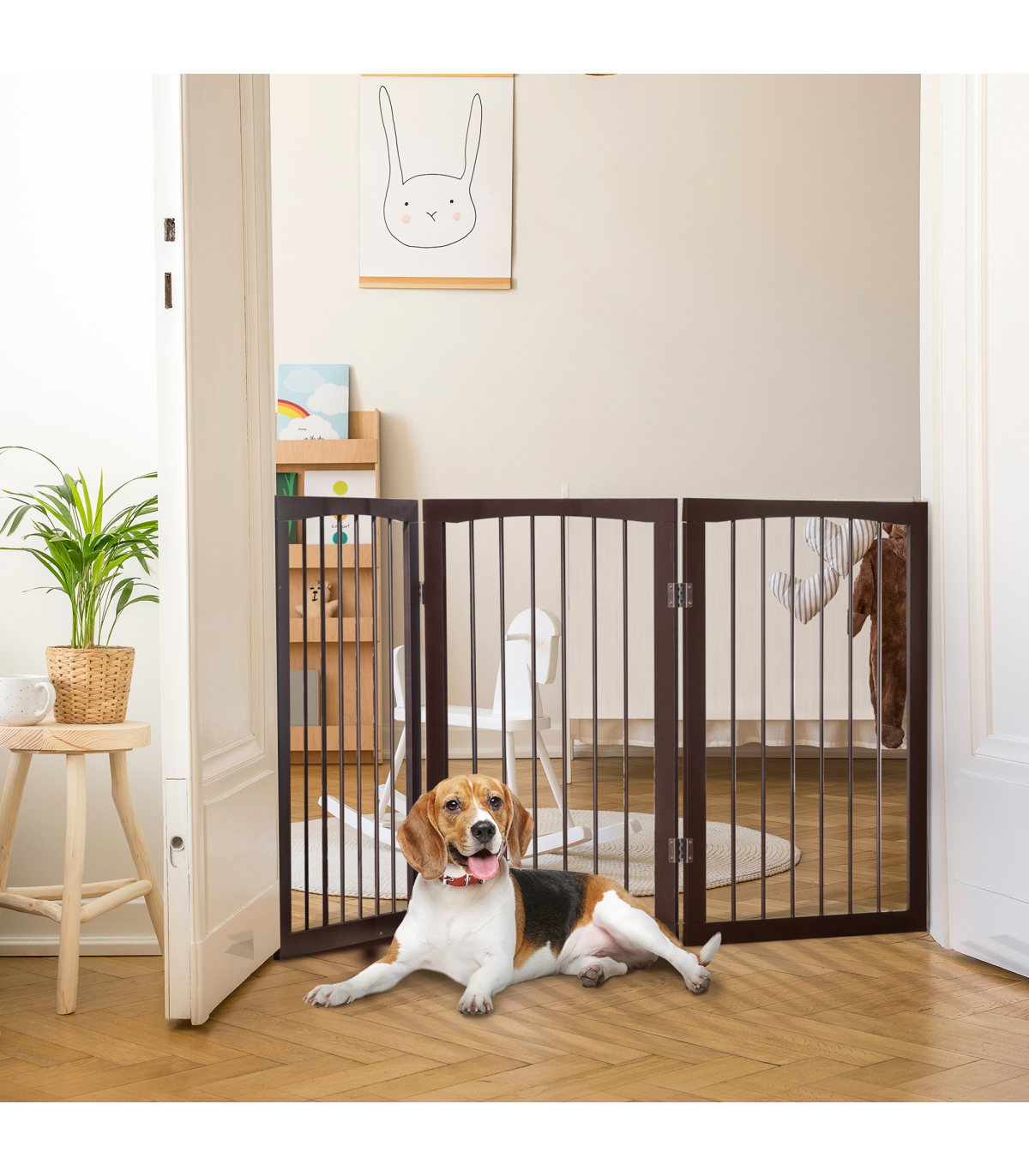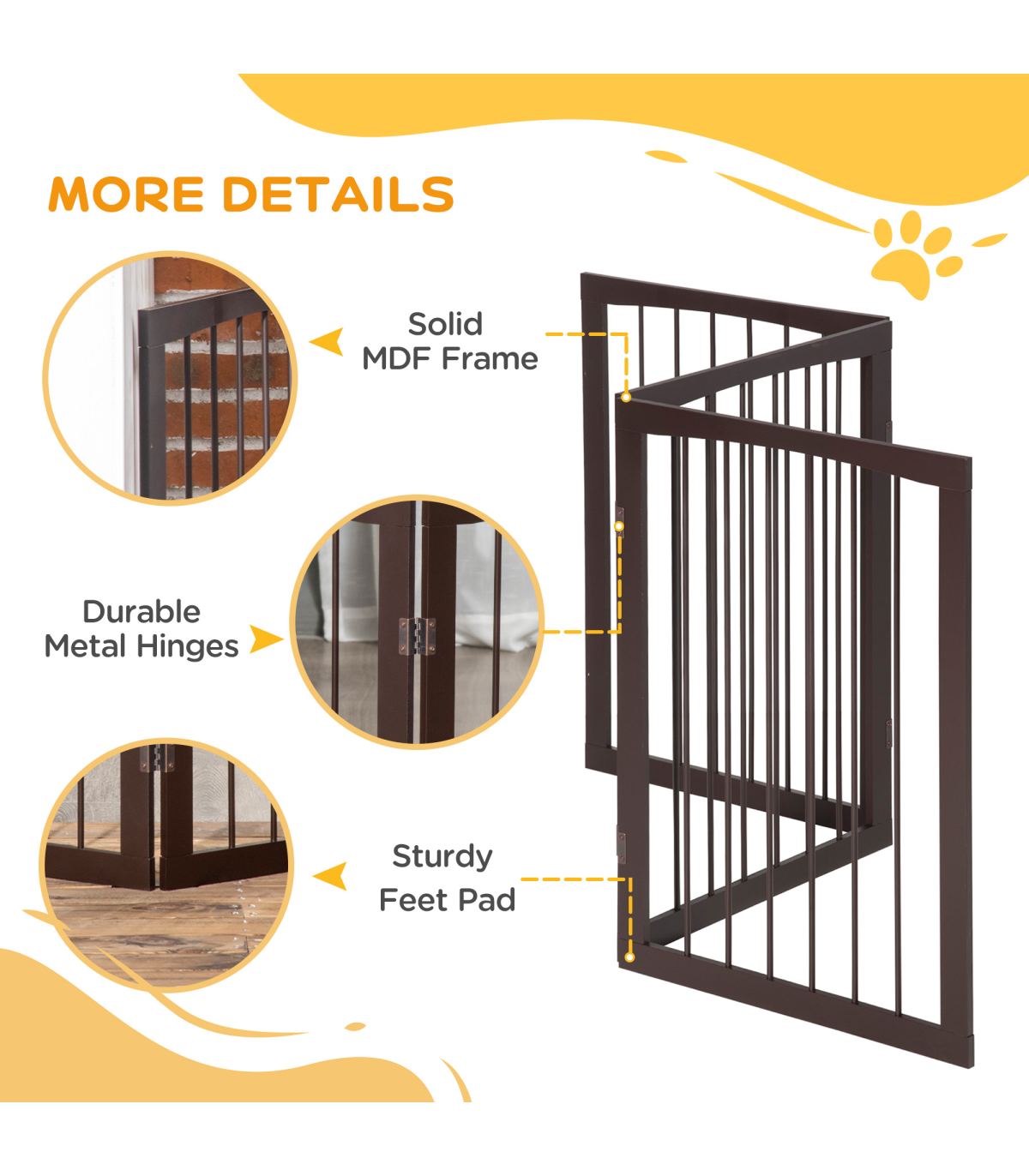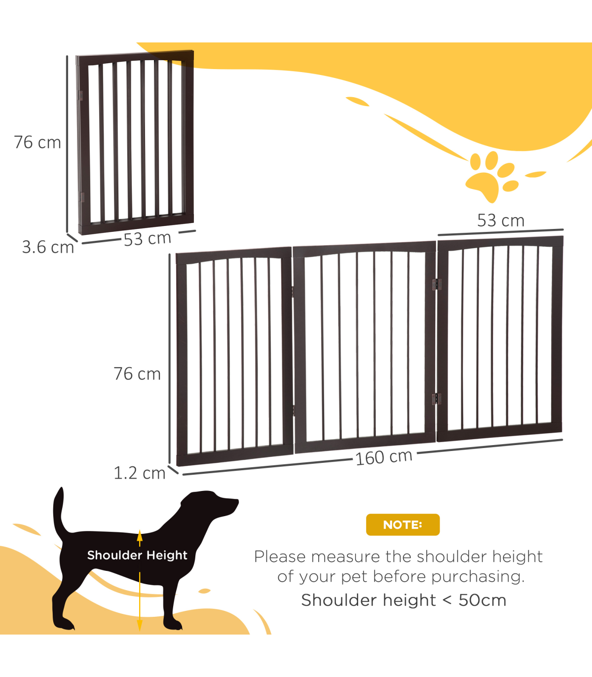 This PawHut pet gate is a great way to separate your pets from rooms, using it between door frames or between furniture. It's a great way to separate pets from children to keep them both safe. Made from a wooden frame with vertical grill, it has a high gloss finish to suit any room decor. The pet gate comes in three sections in a freestanding format making it easy to place anywhere. The gate is suitable for small size dogs. This is a great item and will be a great addition for any home.