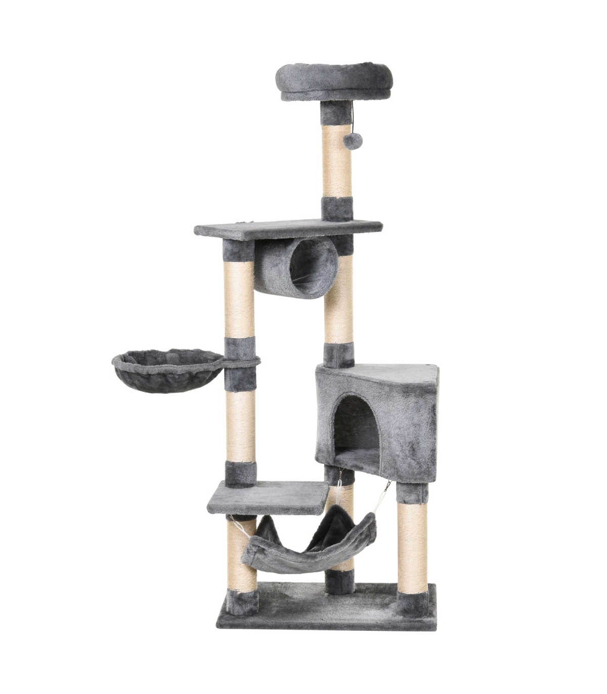 Provide your lovely furry friends a comfortable and safe place with this cat play tower from PawHut. With multiple platforms to lounge and bask on, this multi-tiered cat tree is the purr-fect solution for homes with more than one frisky feline! The middle post features scratching areas, offers them plenty of places to stretch and exercise their claws. With multiple platforms to choose from, your little ones are bound to have an absolute blast with this easy-to-install cat furniture!
