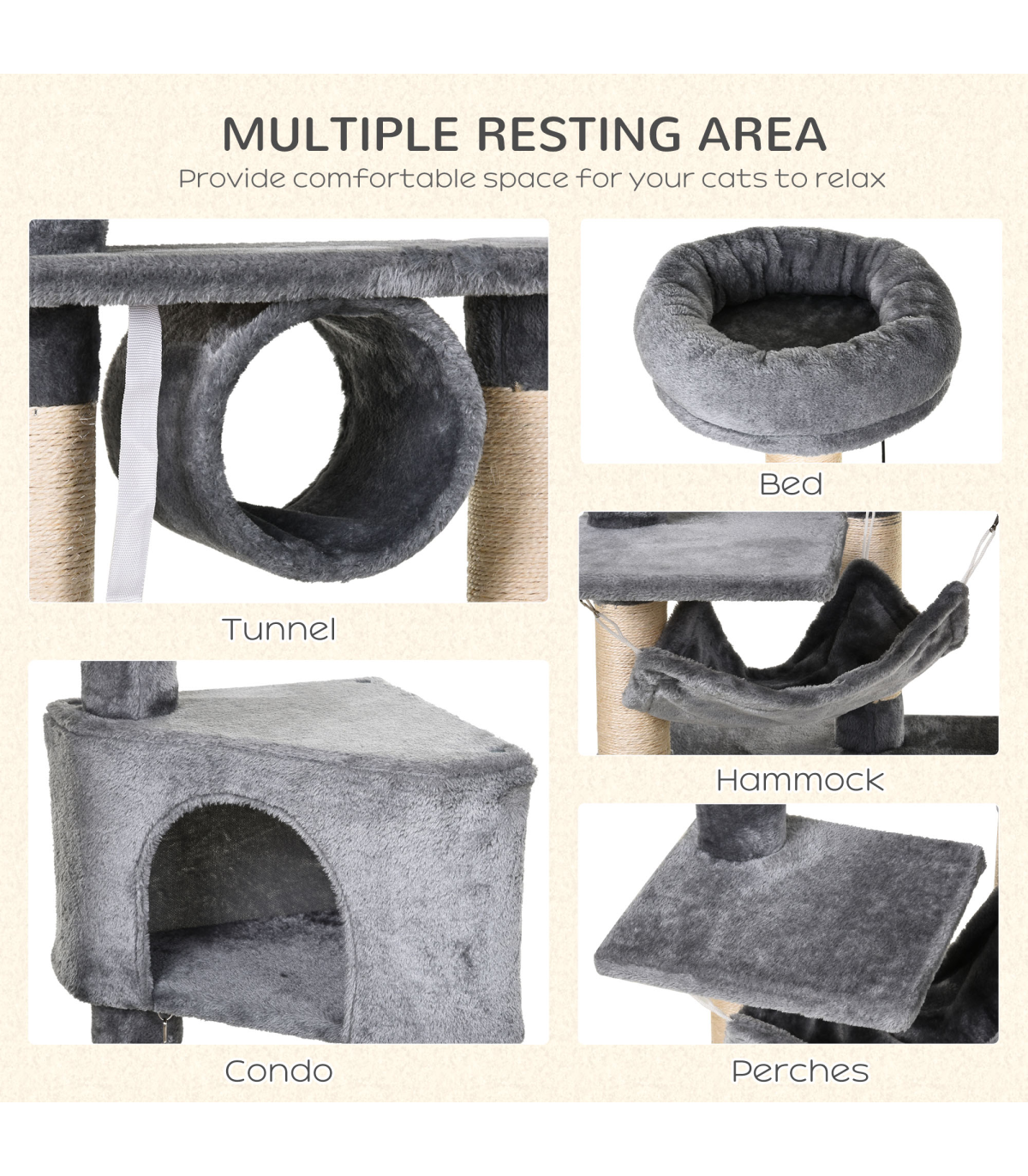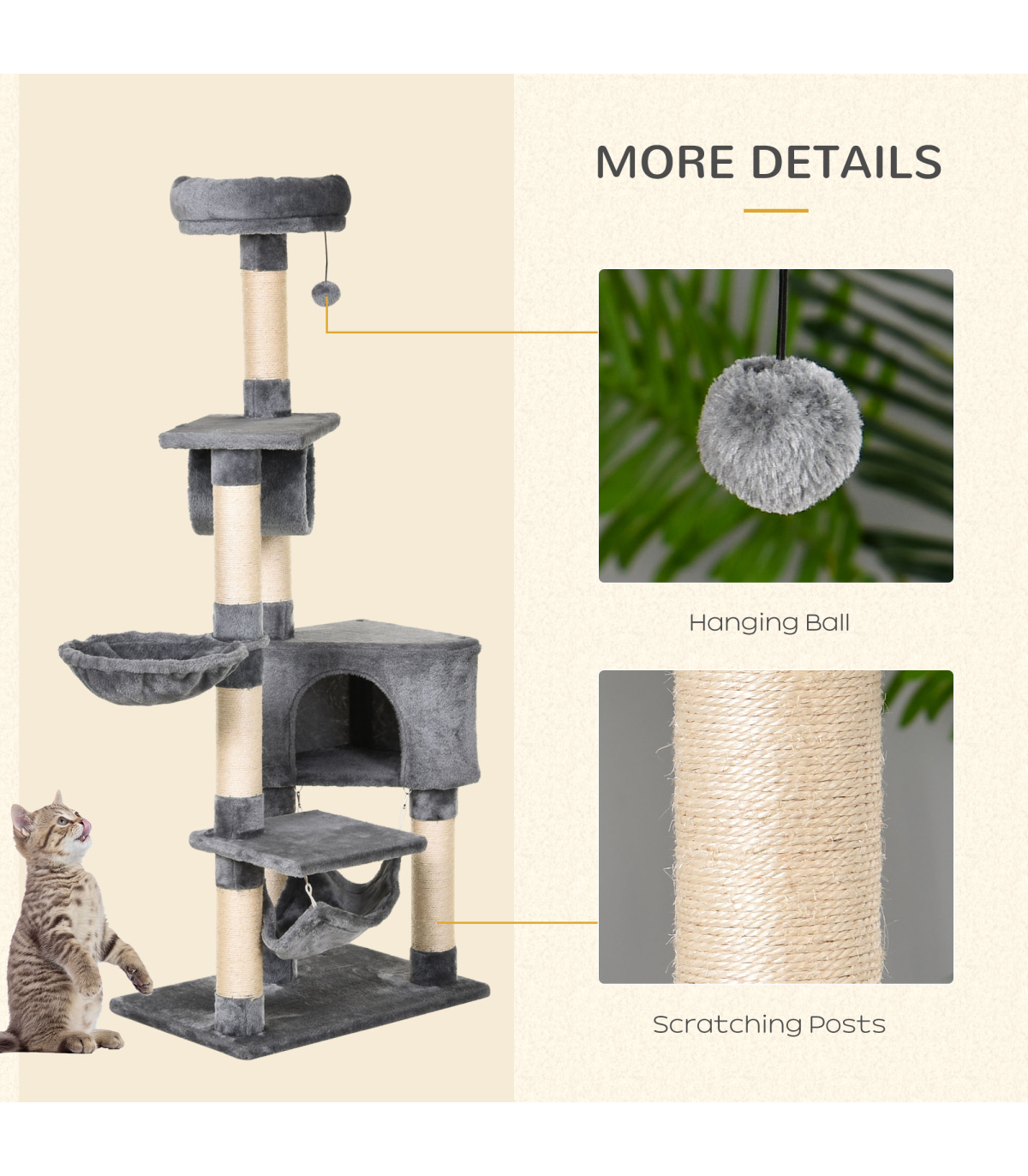 - Save your furniture: Multiple cat scratching posts are lined with natural sisal ropes, and this large cat tree is a great addition to keep your cats from clawing your furniture.