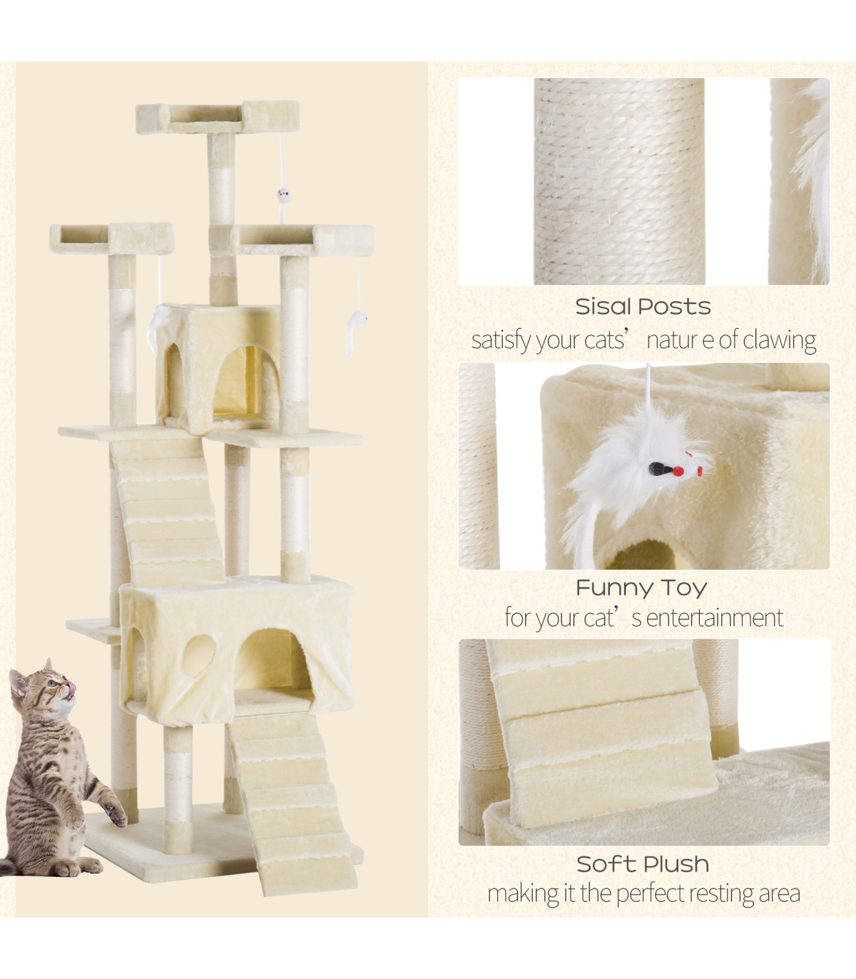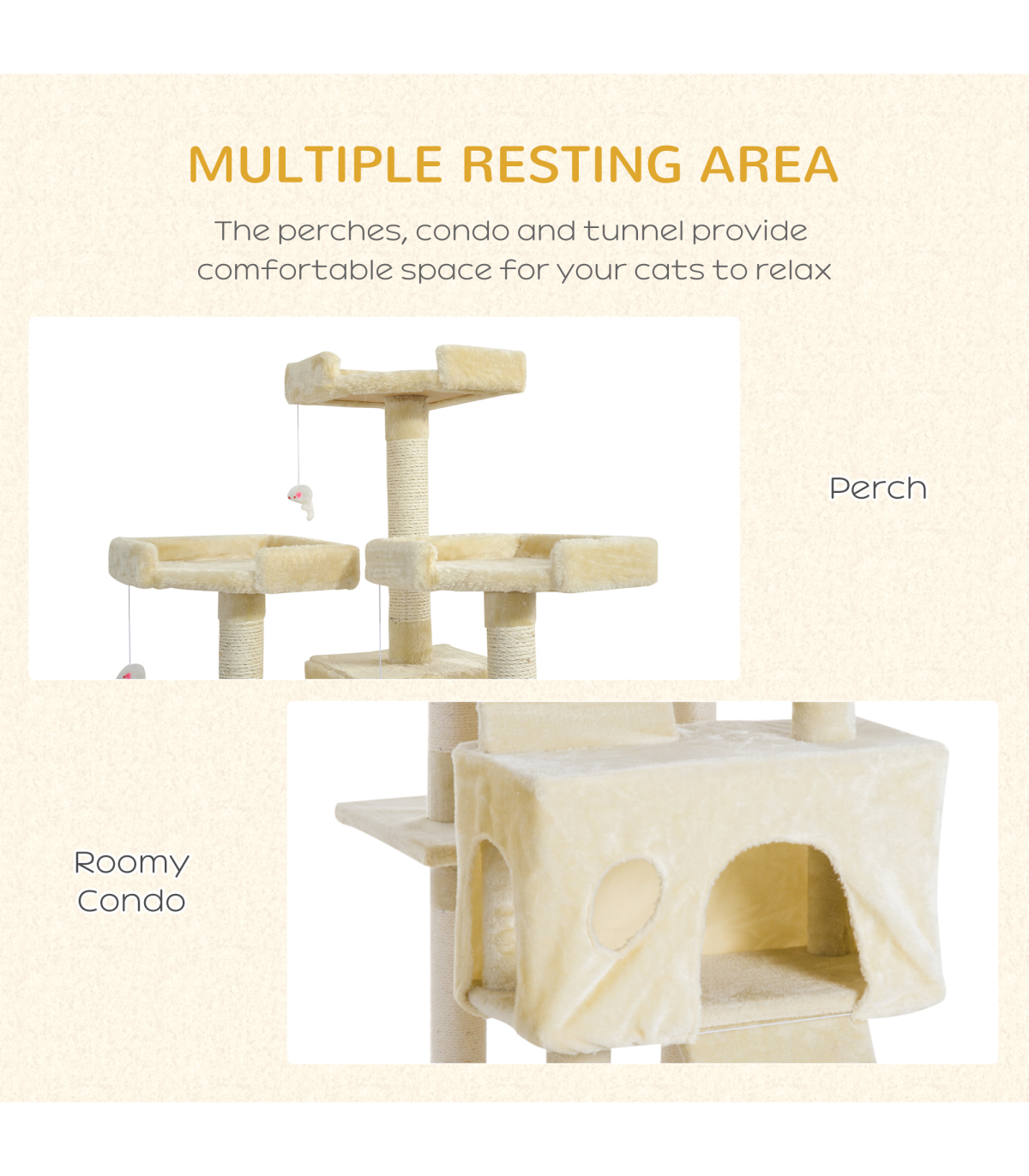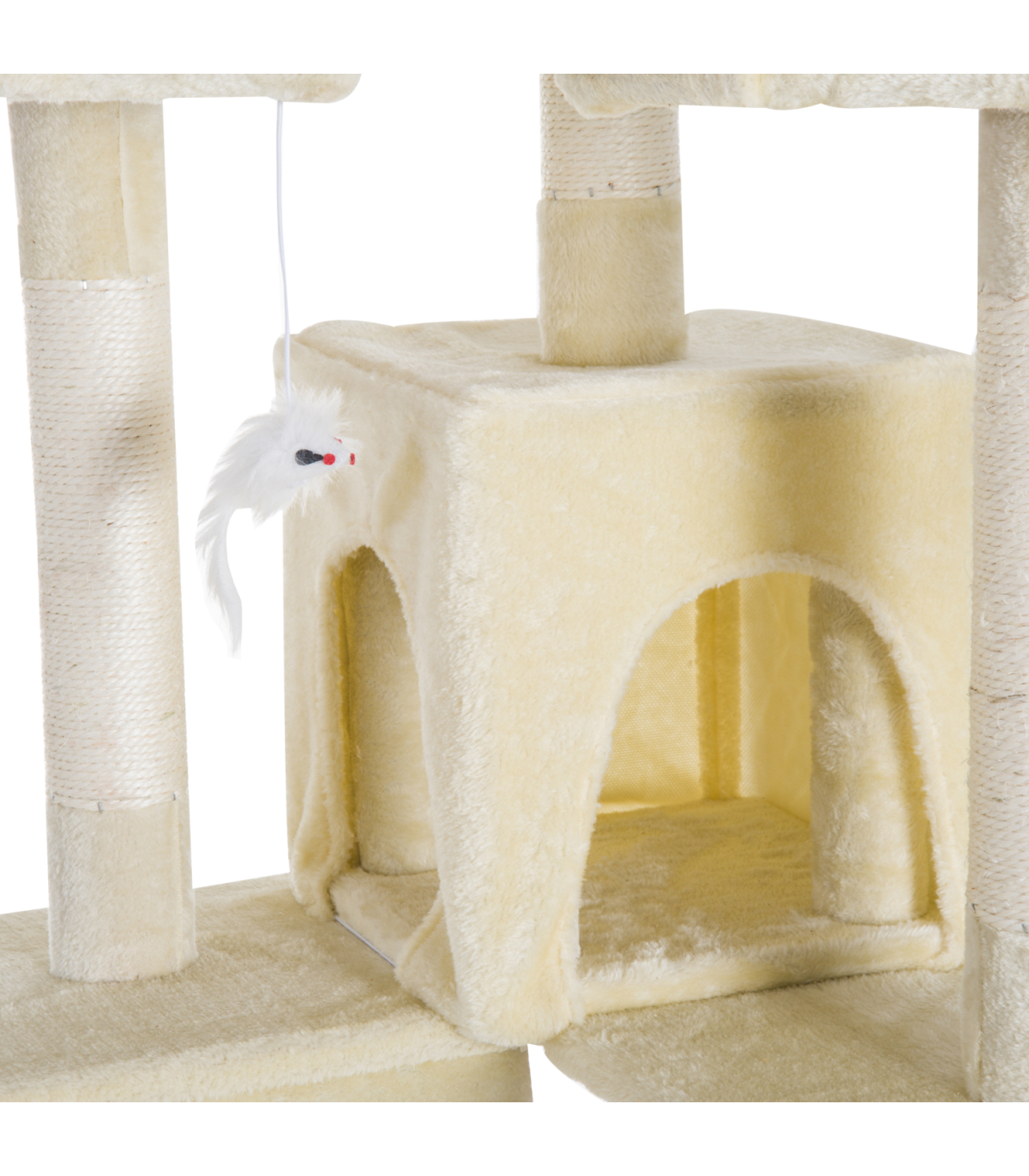 Satisfy your cat's natural instincts safely with the cat towers for indoor cats from PawHut! This multi-activity center features natural sisal-covered scratching posts, a teasing ball toy, roomy condos, and perches. Cat scratchers benefit both pets and owners by relieving cats' desire to claw and saving carpets and household furniture from damage. Whether your cat wants to rest, play, or exercise, they can spend all day on this cat climbing tower. Keep your kitten happy and your home safe with this versatile piece of furniture.
