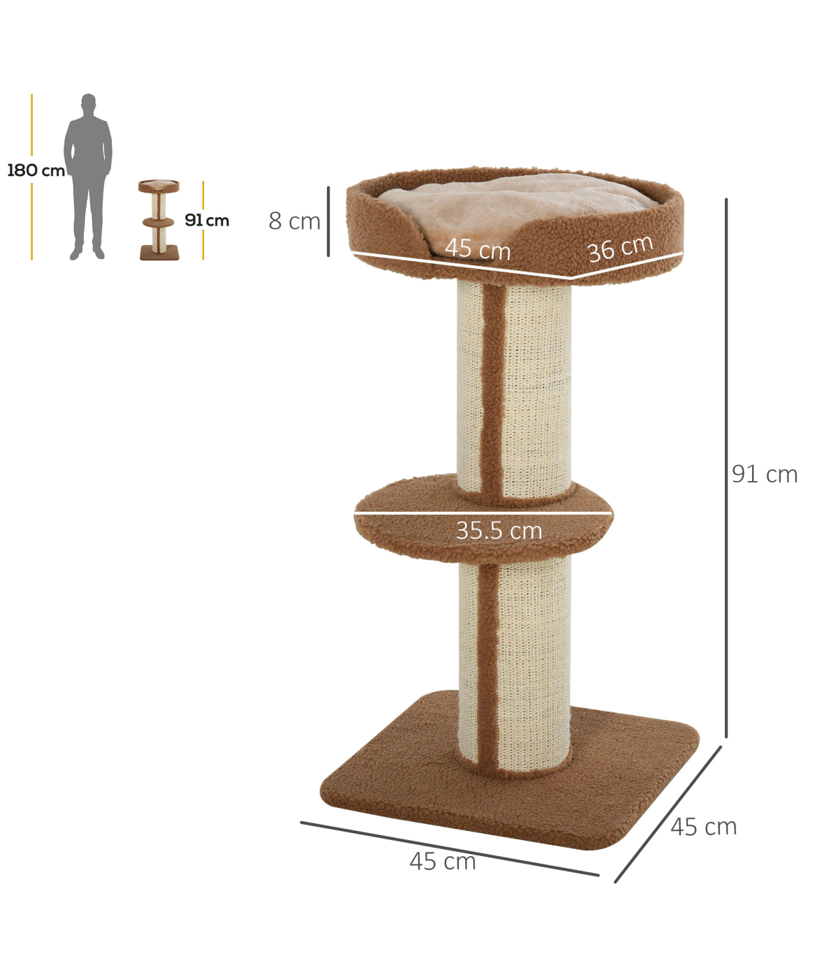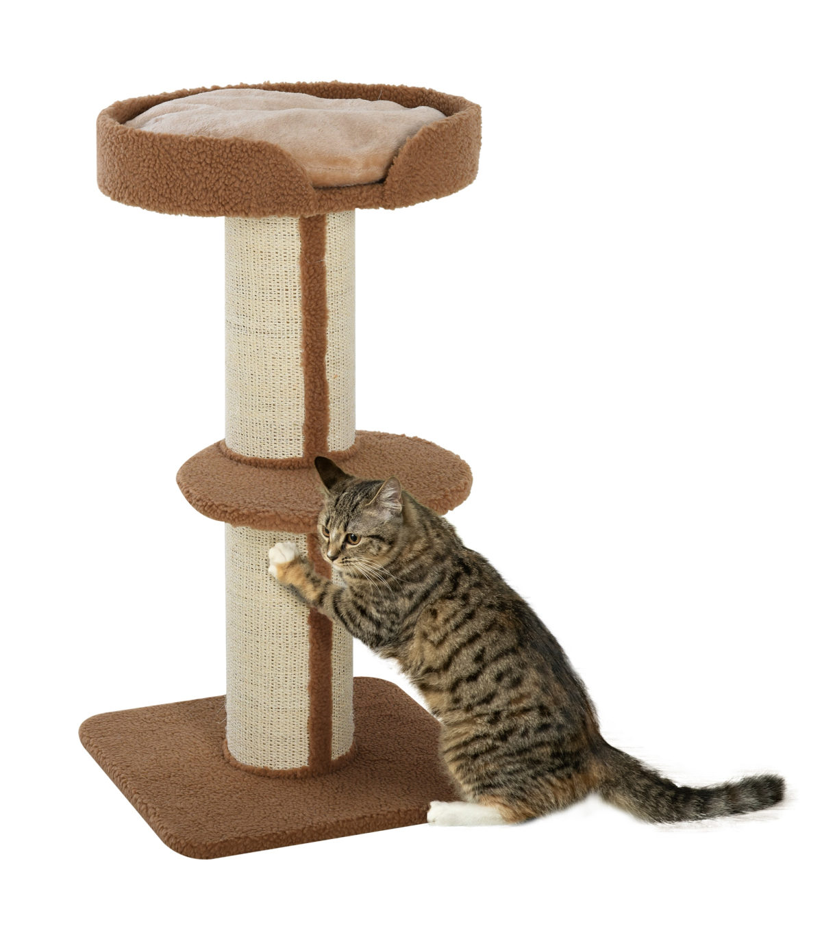 Treat your cat to somewhere new to rest and relax with this cat tower from PawHut. Using solid particle board for a steady frame, it is made into a two level design, featuring a large top basket and a middle perch, with a large base for balance. Sisal scratching posts in the middle for keeping your cat's claws sharp without using your furniture. It is finished with a plush pillow in the top basket for comfort.