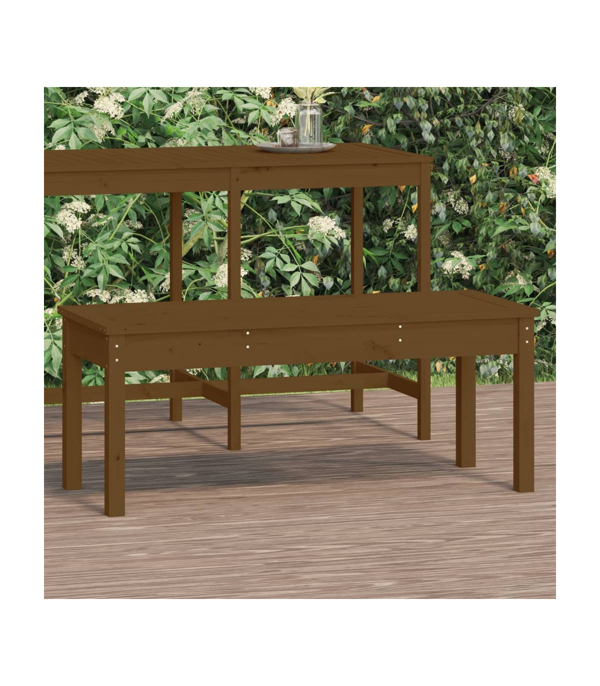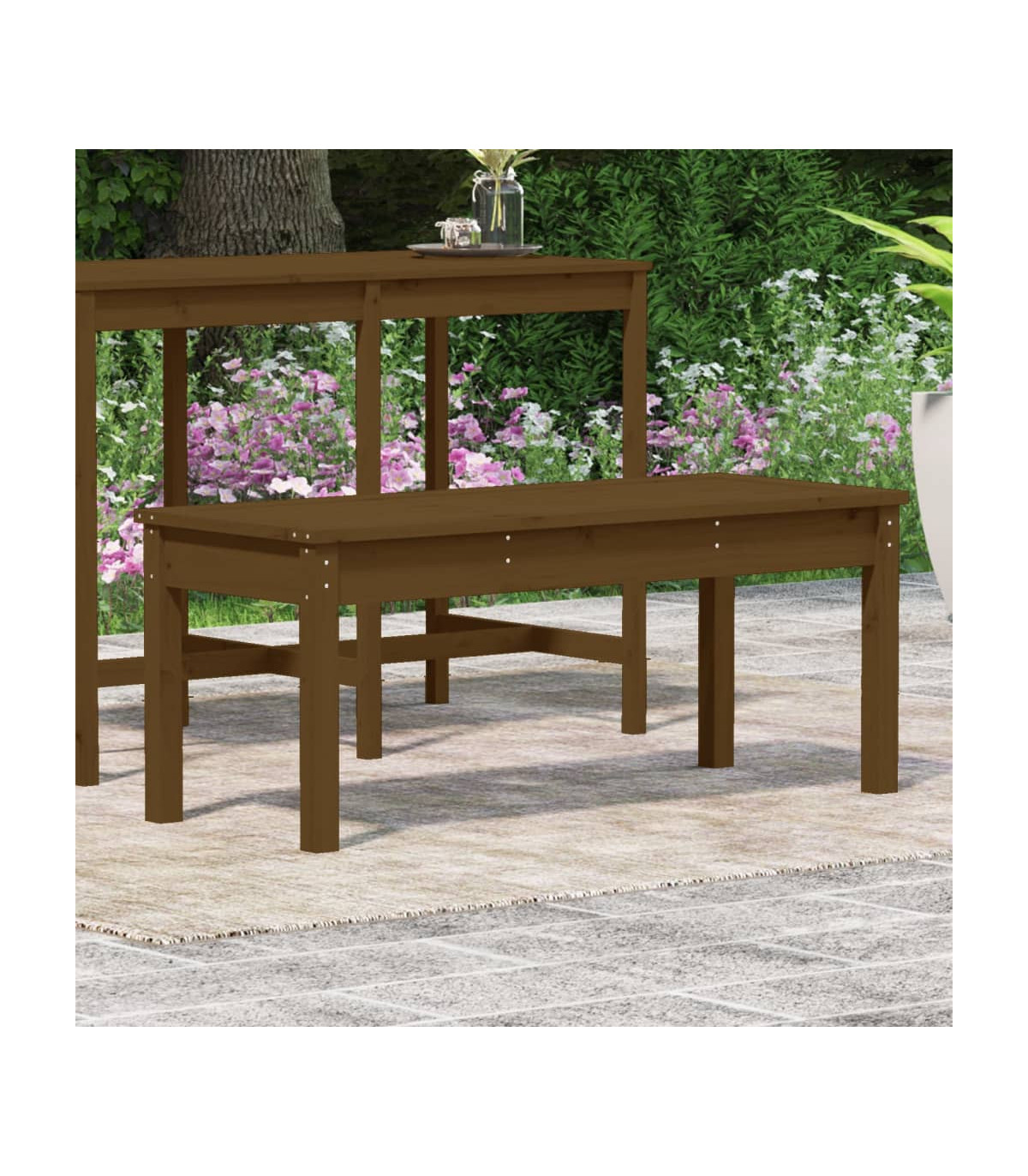 Enhance your outdoor living space with this Honey Brown Solid Pine Wood Garden Bench. Crafted from solid pine wood, this bench boasts a natural beauty with its straight grain and signature rustic look, thanks to the unique knots in the wood. The classic slatted design is not only timeless but also adds a touch of elegance to any garden, terrace, or patio. Whether placed on a balcony, porch, or amidst your garden, this bench is designed to be the focal point of your outdoor area. For ease of assembly, each bench comes with a manual. To ensure your garden furniture remains in pristine condition, we recommend protecting it with a waterproof cover.