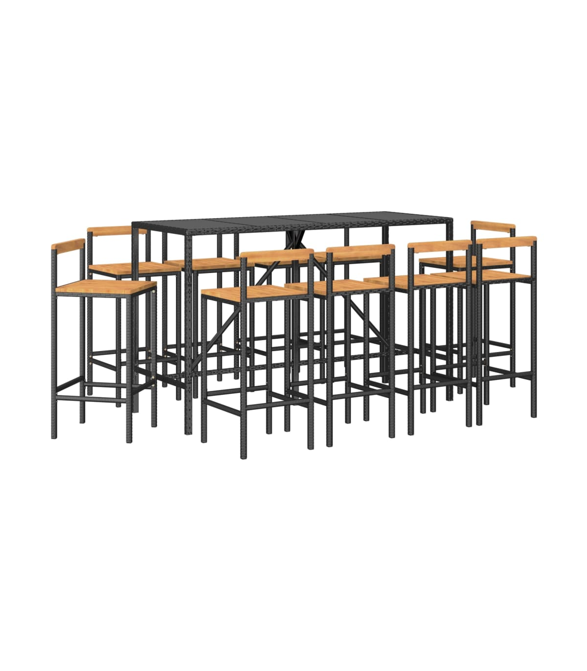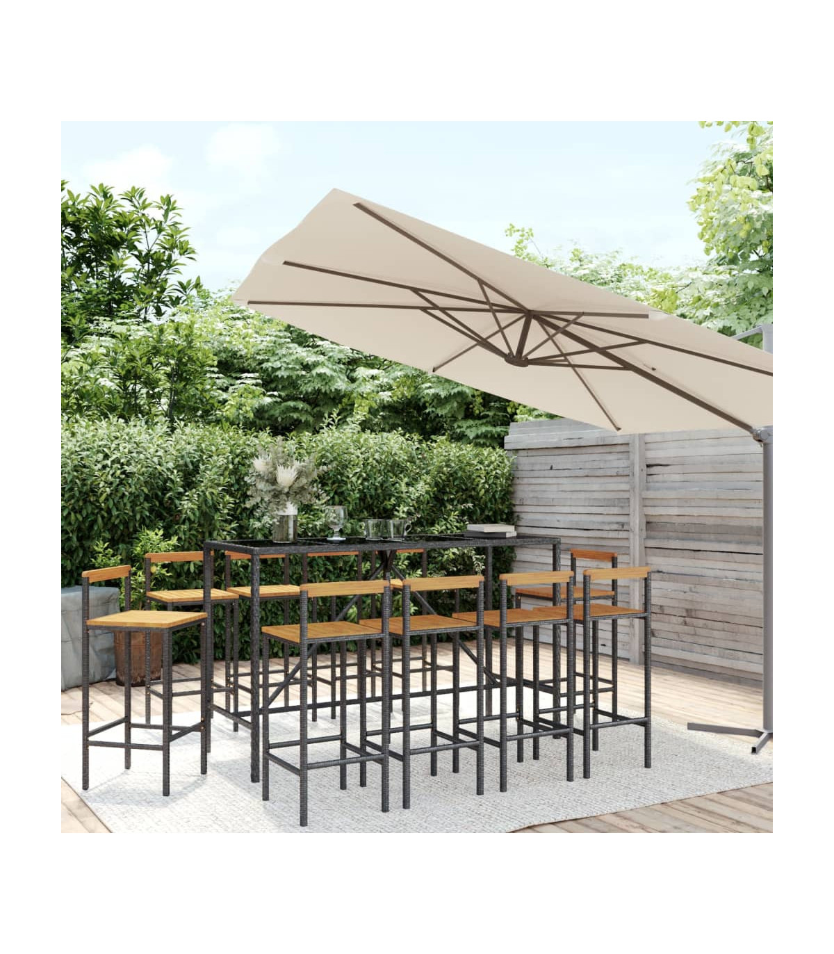 - PE rattan, solid acacia wood