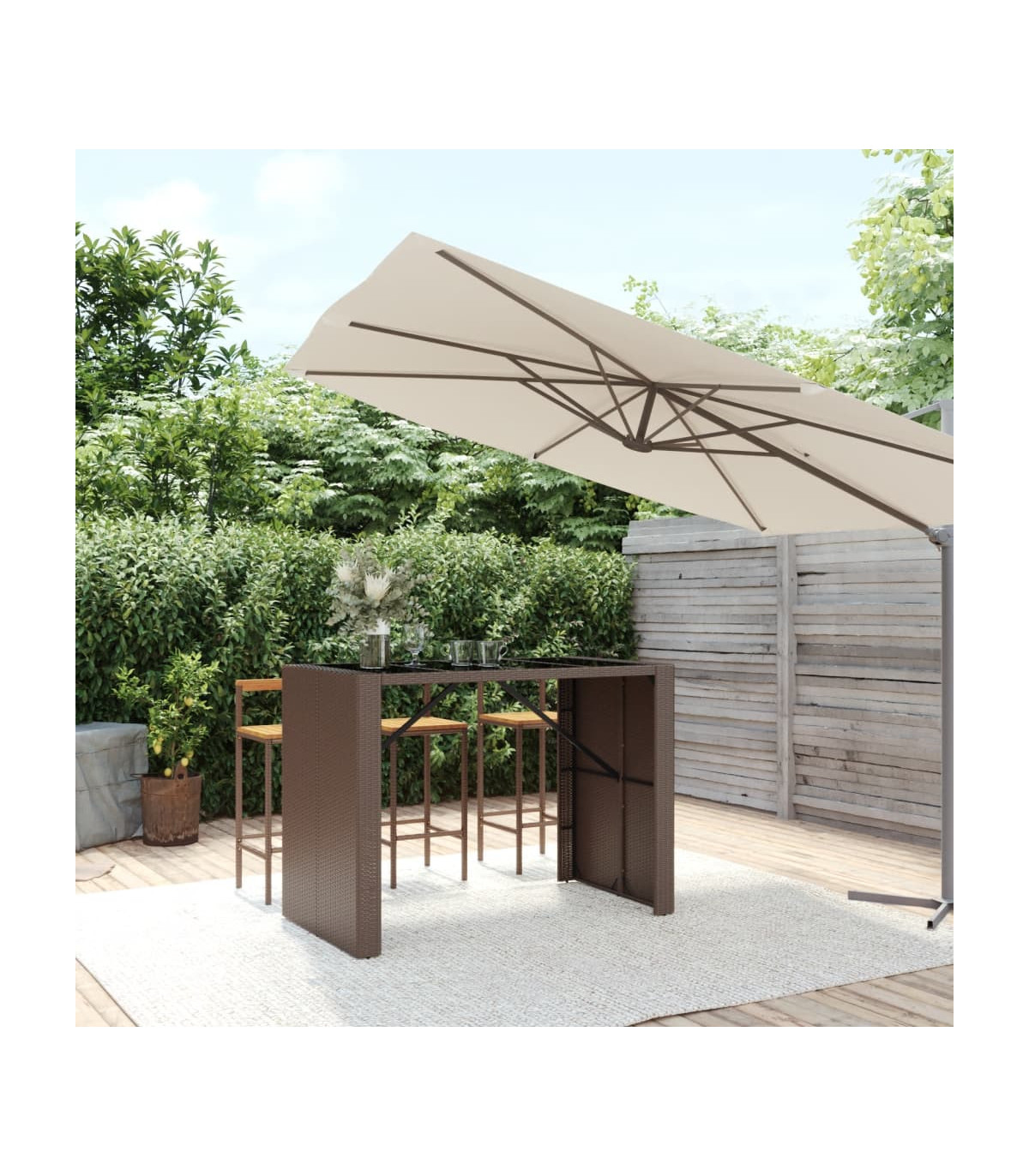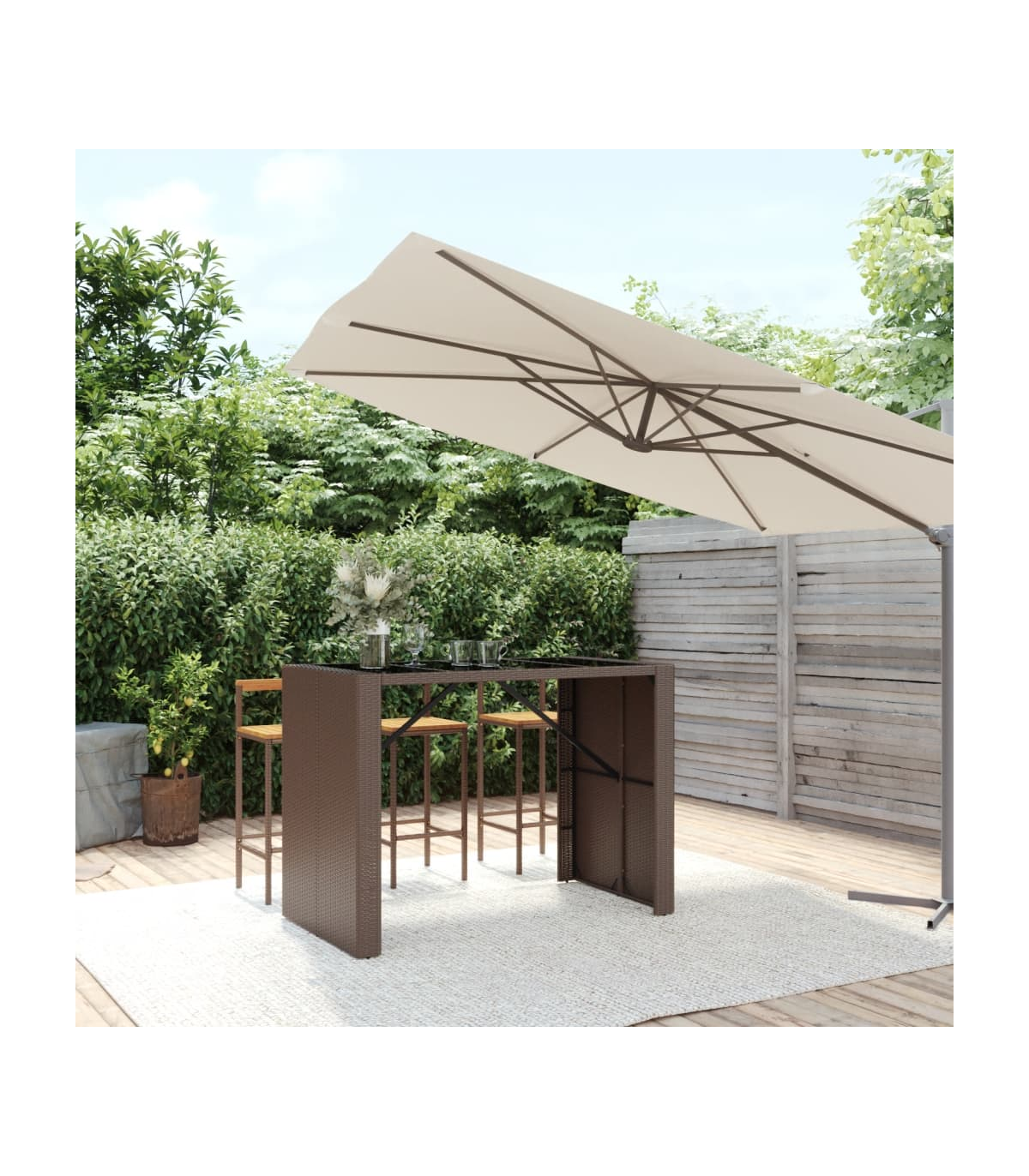 This trendy bar table with glass top, combining both style and function, is surely meant to be the centrepiece of your garden, patio, and any other living space. The PE rattan material is weather resistant and easy to clean, ensuring long-lasting beauty. The tempered glass tabletop provides excellent support for your drinks, snacks, and decorations. The powder-coated steel frame makes the bistro table sturdy and stable for daily outdoor use. With its remarkable design, this pub table integrates effortlessly into any environment.