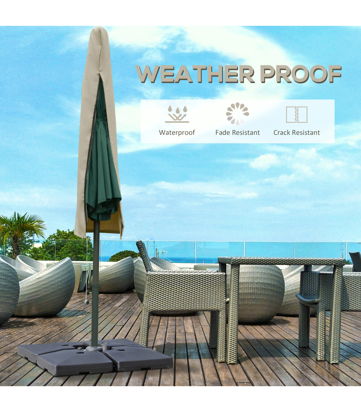 Protect your parasol umbrella when needed with this cover from Outsunny. Made from thick and durable oxford cloth, the shell will not crack, fade or tear, as well as keeping mild rain from leaking through. There is a drawstring fastening on the bottom with cord locks to secure into place - it won't come off in the wind. It's finished with a zip fastening and can also be wiped clean easily.