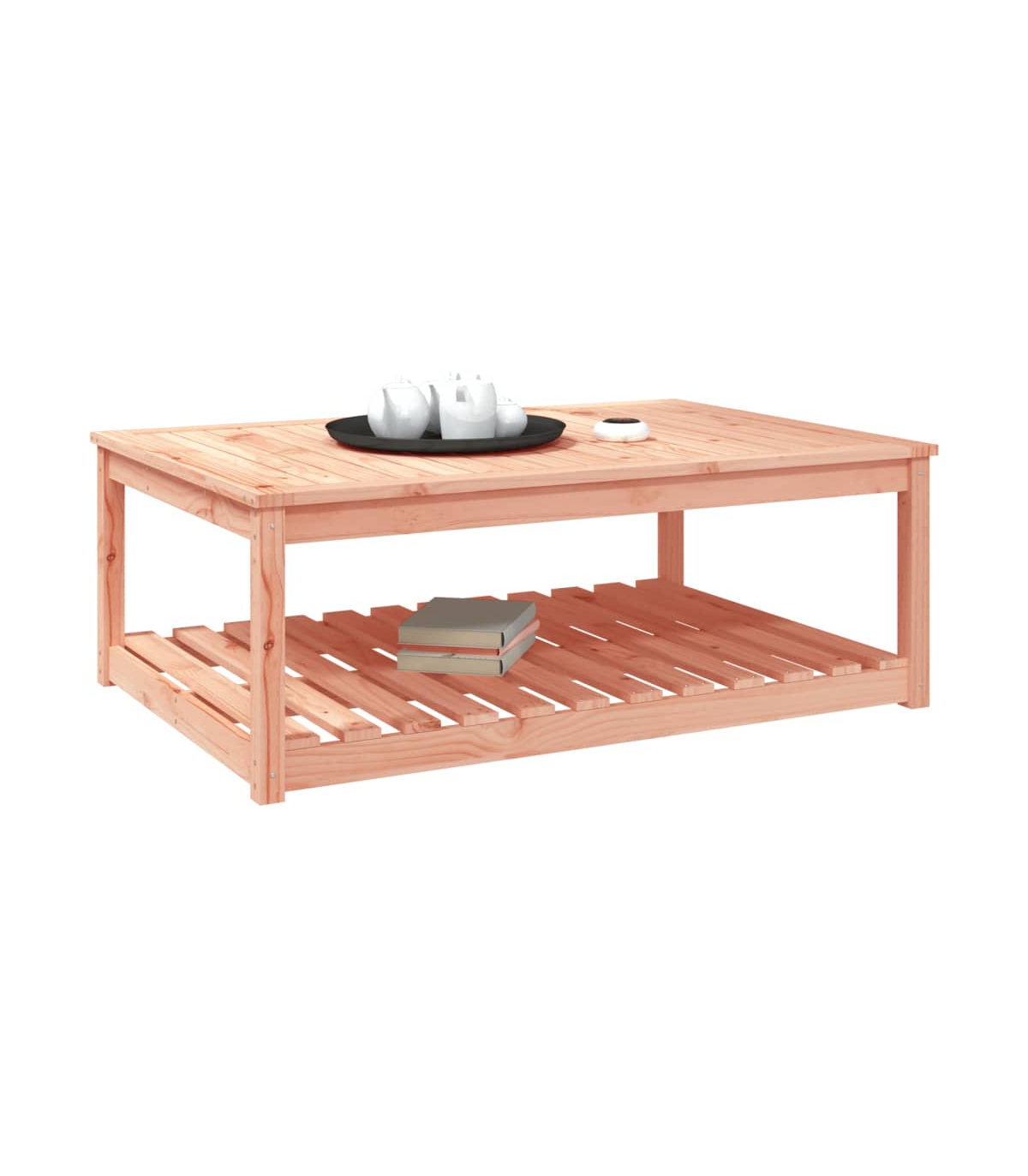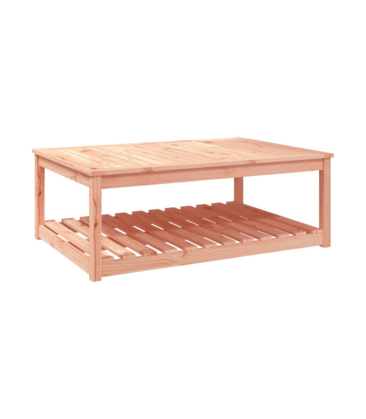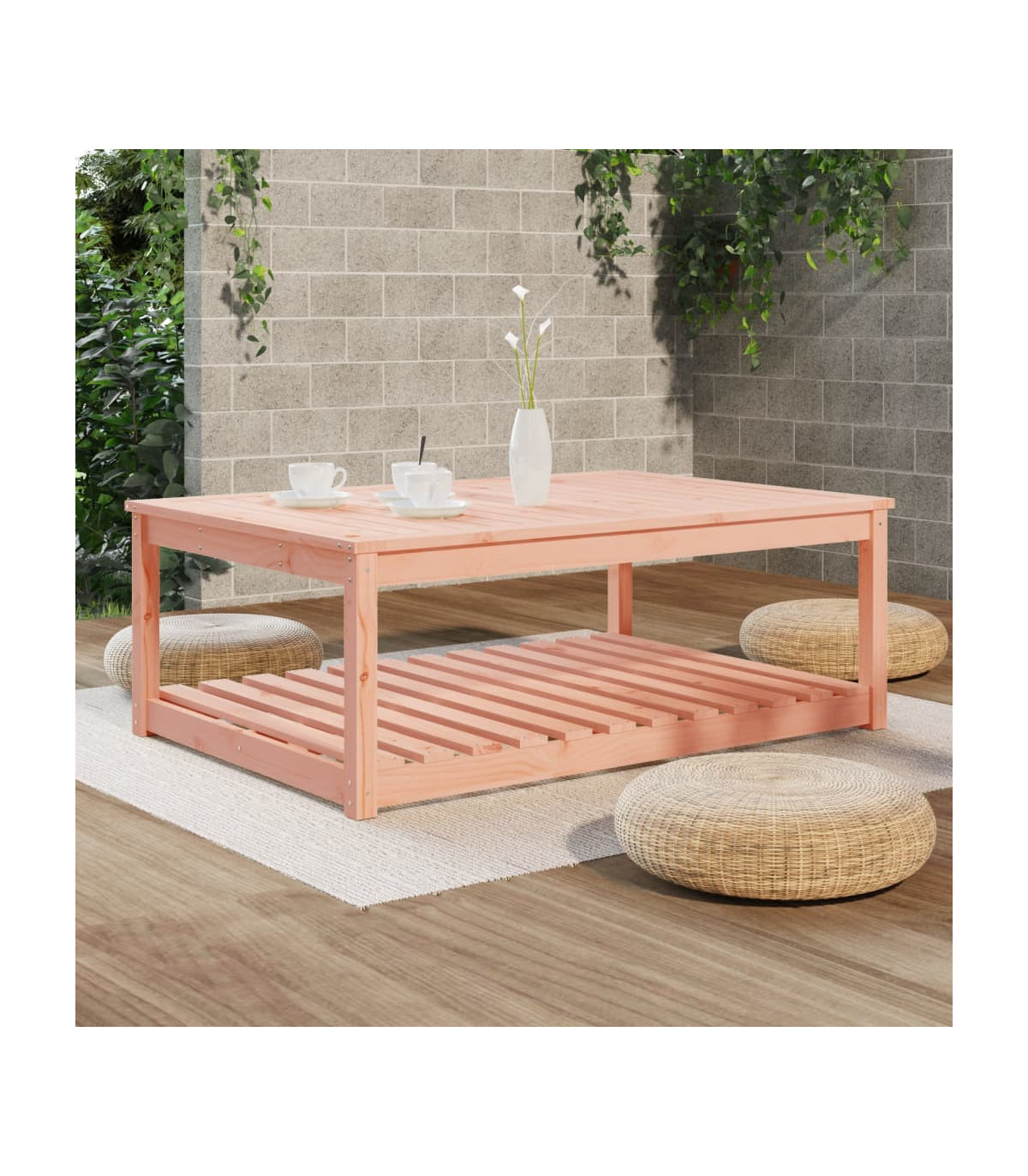 Enhance your outdoor living space with this elegant Solid Pine Wood Garden Table. Crafted from high-quality solid pine wood, it features a natural Douglas finish that adds a rustic charm to your garden, patio, or terrace. The table is designed with a stable tabletop that is perfect for holding drinks, snacks, and decorations, making it ideal for enjoying meals with family and friends. An open shelf beneath the table provides additional storage space for your daily essentials, keeping them well-organized and within easy reach. The sturdy wooden frame ensures durability and stability, making this table a long-lasting addition to your outdoor furniture collection. Assembly is made simple with the included manual, so you can quickly set up and start enjoying your new table. To maintain its beauty, we recommend protecting it with a waterproof cover.