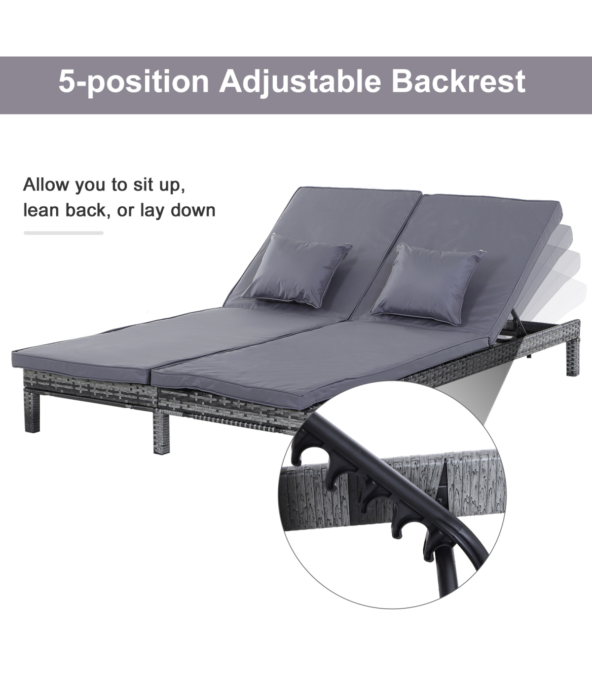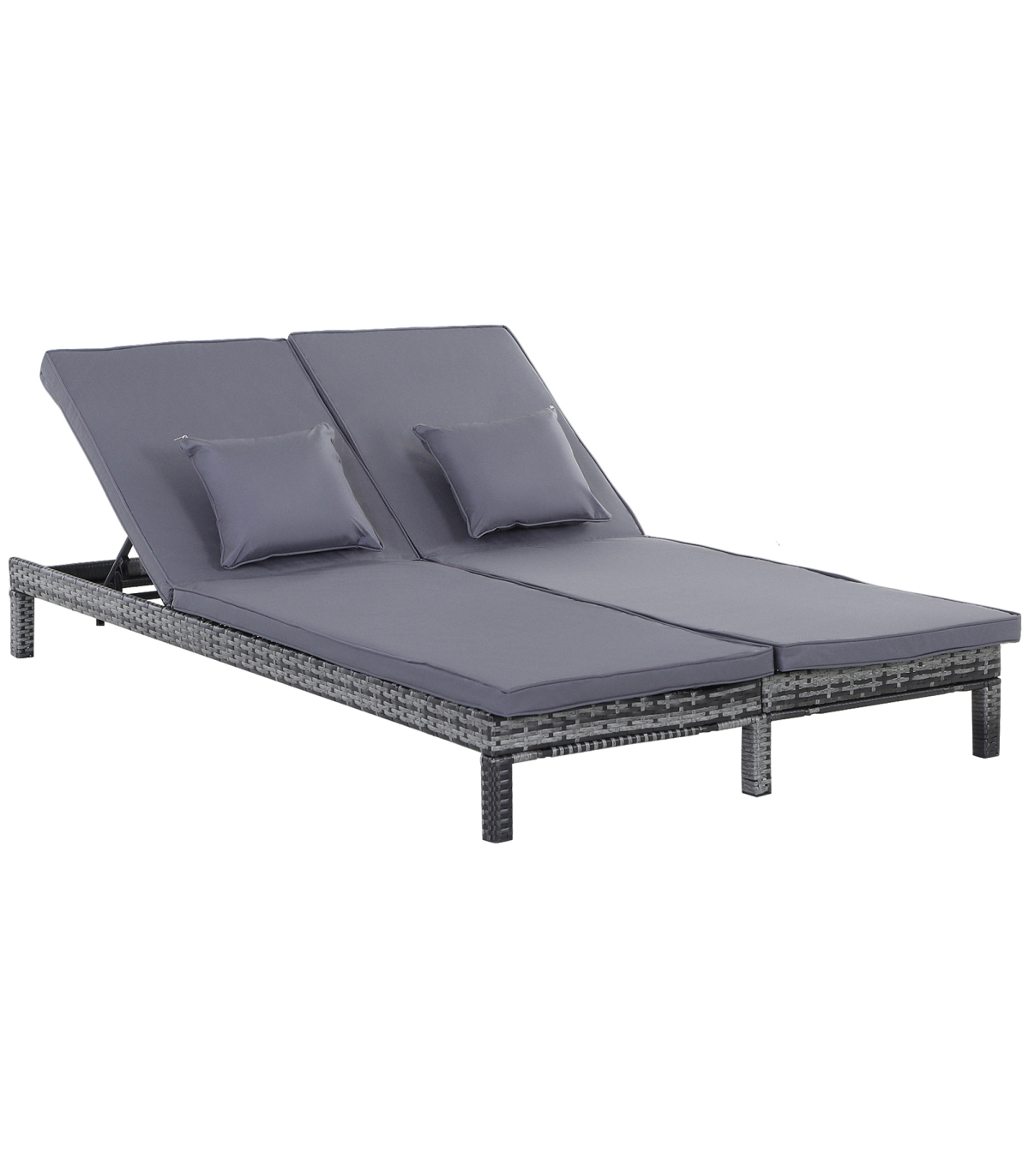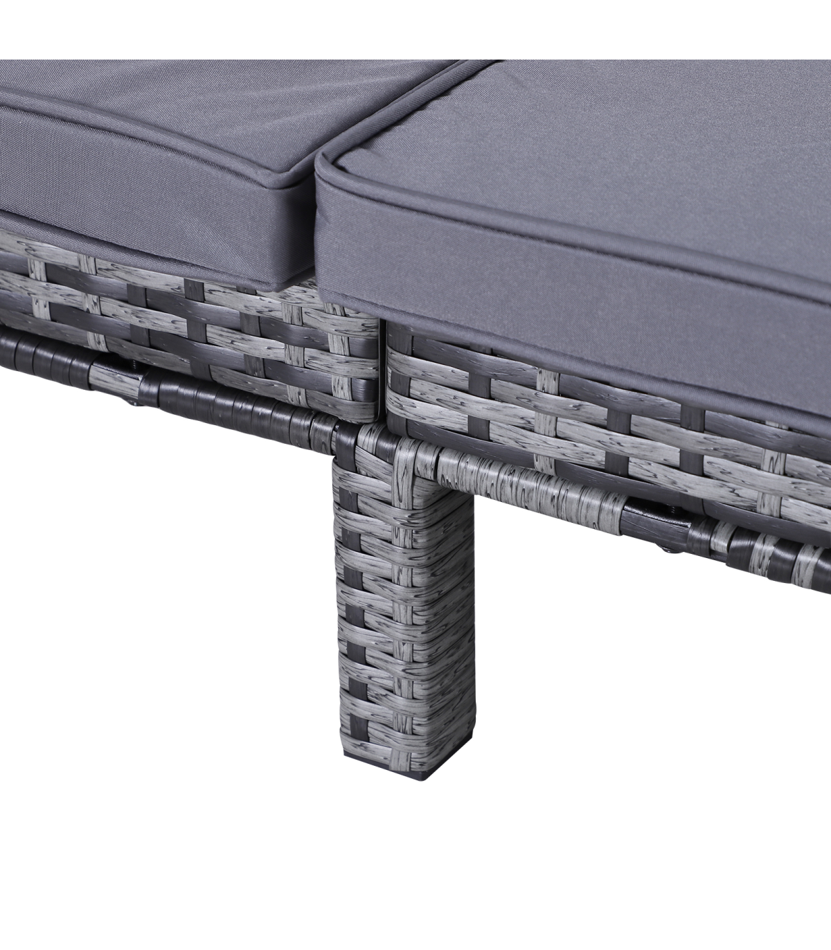 Soak up the sun when it comes out to shine with this outdoor day bed from Outsunny. Formed of two matching and stylish mixed grey sun loungers, each one is made with a powder coated metal frame for strength, with wicker rattan wrapped for durability. Adjustable to five different positions for optimal comfort, each rattan lounger is fitted with a padded cushion which covers the full length and width. The perfect set to enjoy the sun now as the hotter weather approaches this season.
