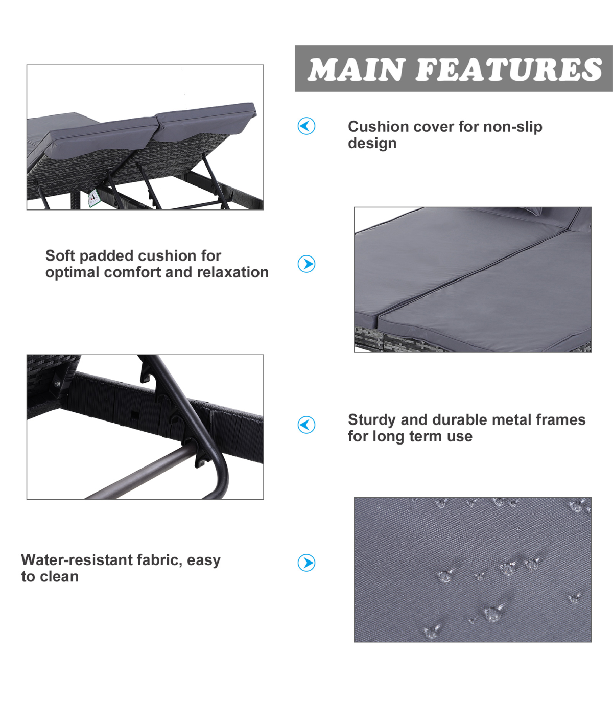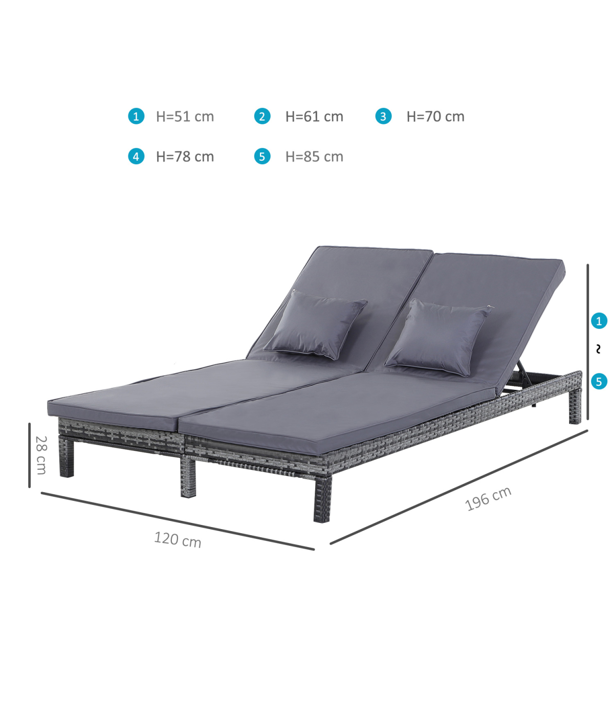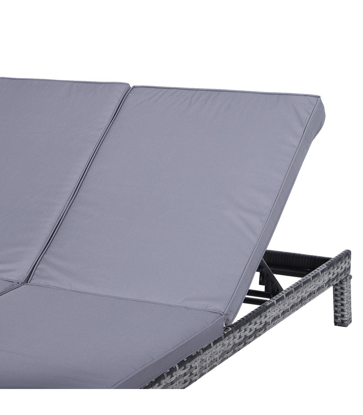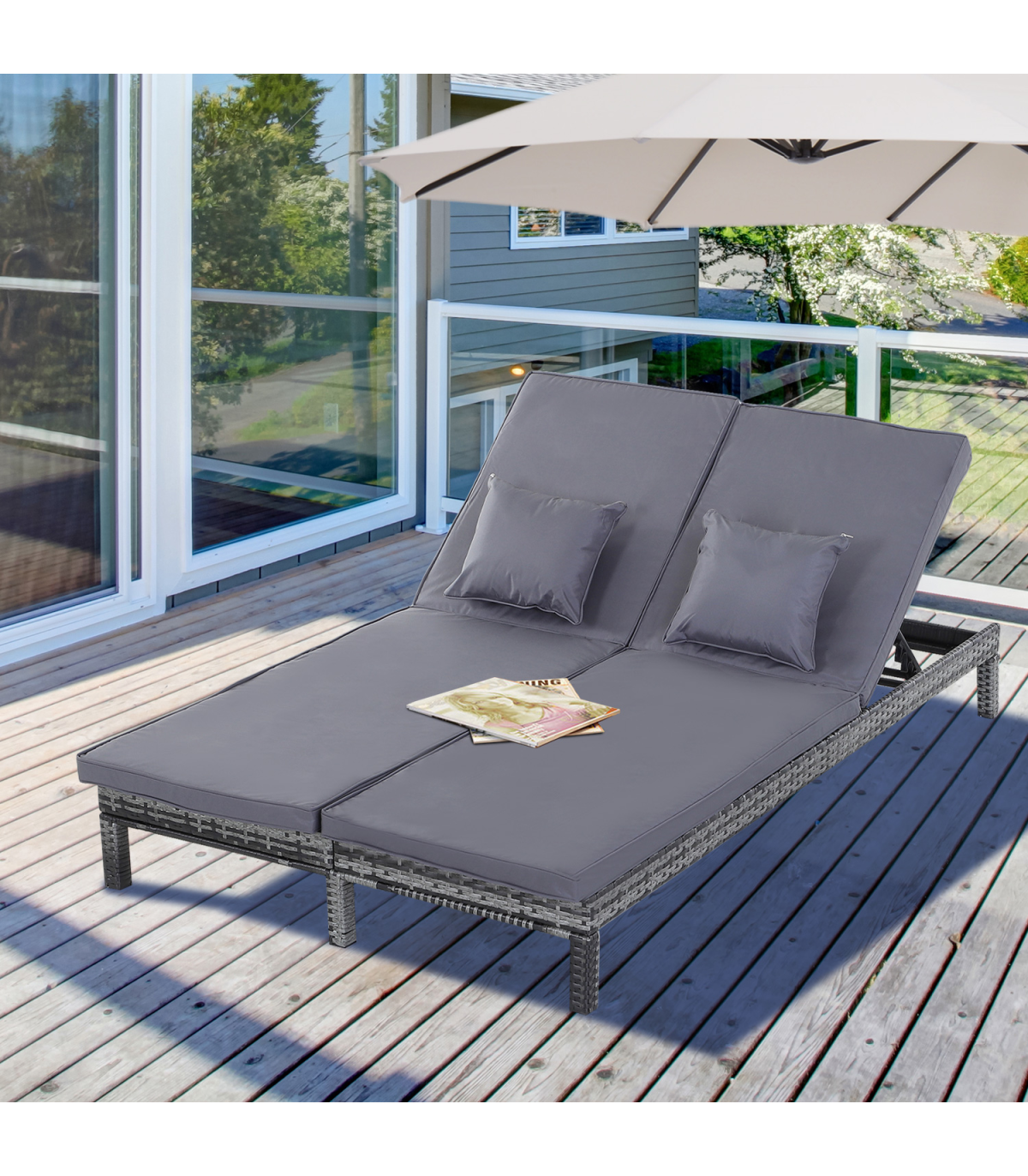 Soak up the sun when it comes out to shine with this outdoor day bed from Outsunny. Formed of two matching and stylish mixed grey sun loungers, each one is made with a powder coated metal frame for strength, with wicker rattan wrapped for durability. Adjustable to five different positions for optimal comfort, each rattan lounger is fitted with a padded cushion which covers the full length and width. The perfect set to enjoy the sun now as the hotter weather approaches this season.