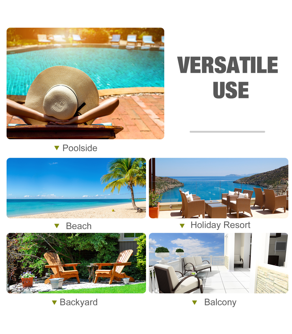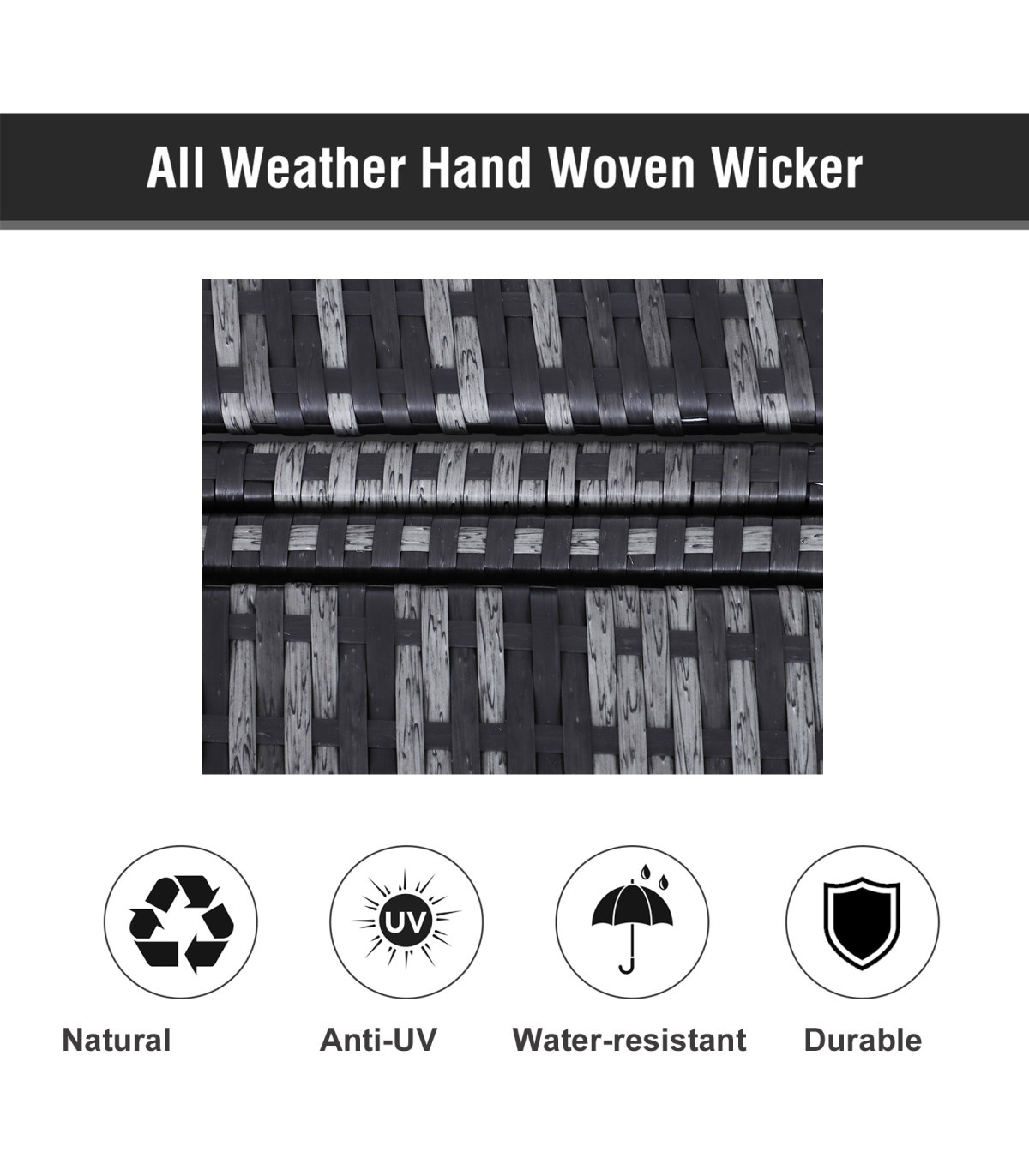 - Metal frame for strength, with wicker rattan wrapped around to ensure durability and protection outdoors all-year round
