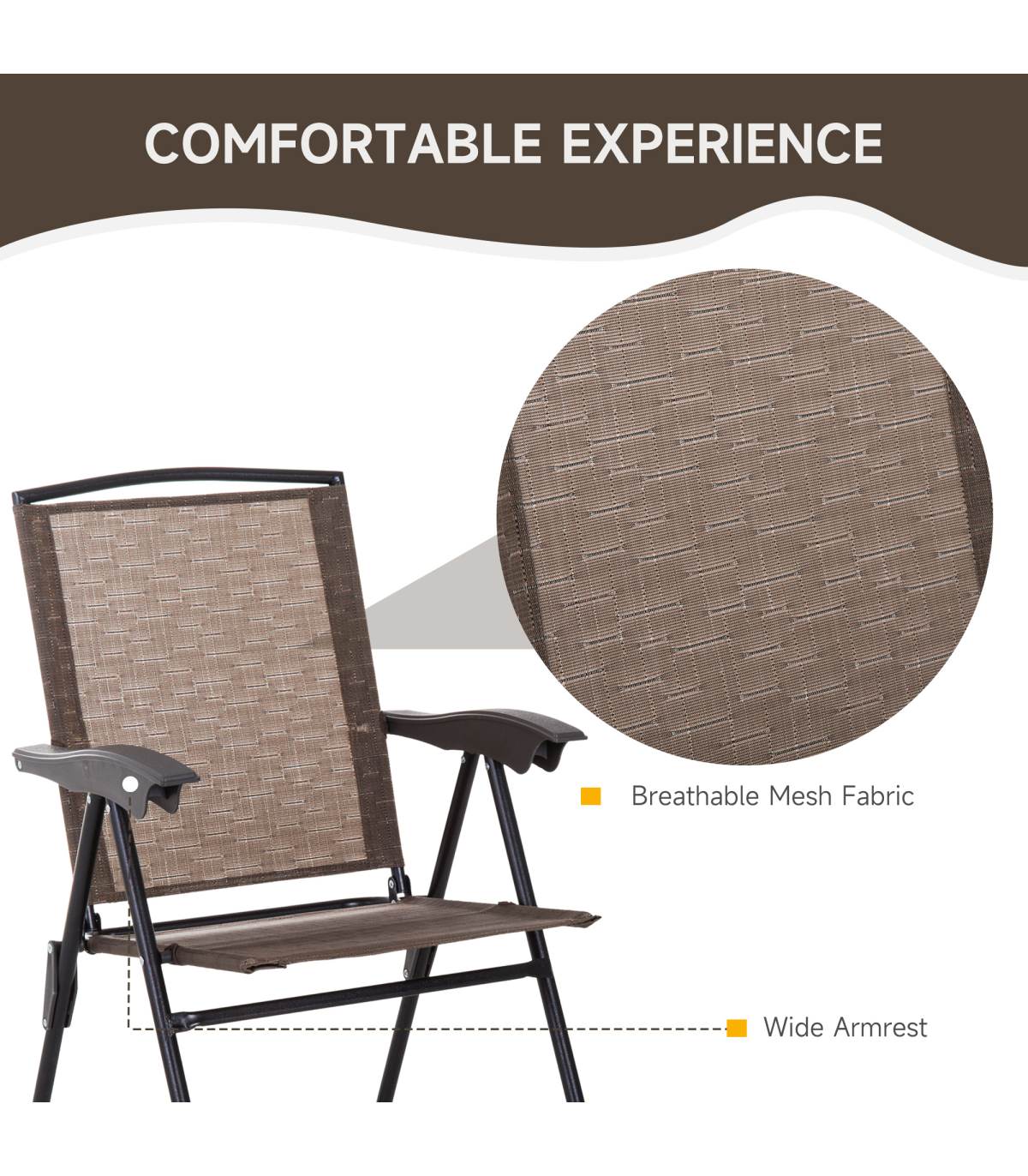 Enhance your outdoor living space with our 3PC Brown Mesh Patio Set, designed for both durability and comfort. This set includes two folding chairs and a tempered glass table, perfect for any garden, patio, or balcony. The chairs feature extra-large seats and adjustable backrests, allowing you to find the perfect angle for relaxation. Constructed with a powder-coated steel frame and breathable mesh fabric, this set is built to last and provides fast drying after rain. The table is equipped with a 5mm tempered glass top, making it easy to clean and ideal for holding your drinks and meals. With its foldable design, the chairs can be easily stored away, saving space when not in use. Whether you're enjoying a quiet morning coffee or entertaining guests, this patio set is sure to enhance your outdoor living experience.