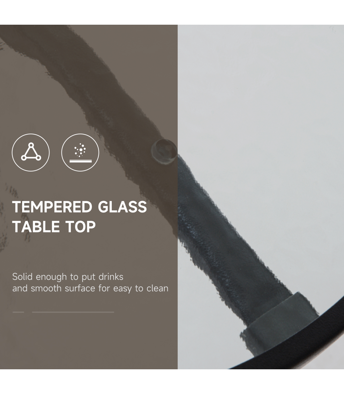 - Tempered Glass Table Top: Features 5mm tempered glass for easy cleaning, perfect for drinks and meals.