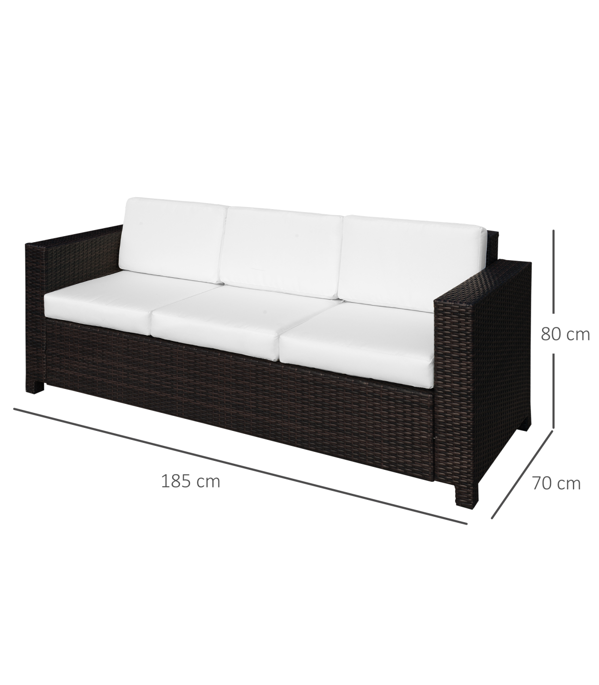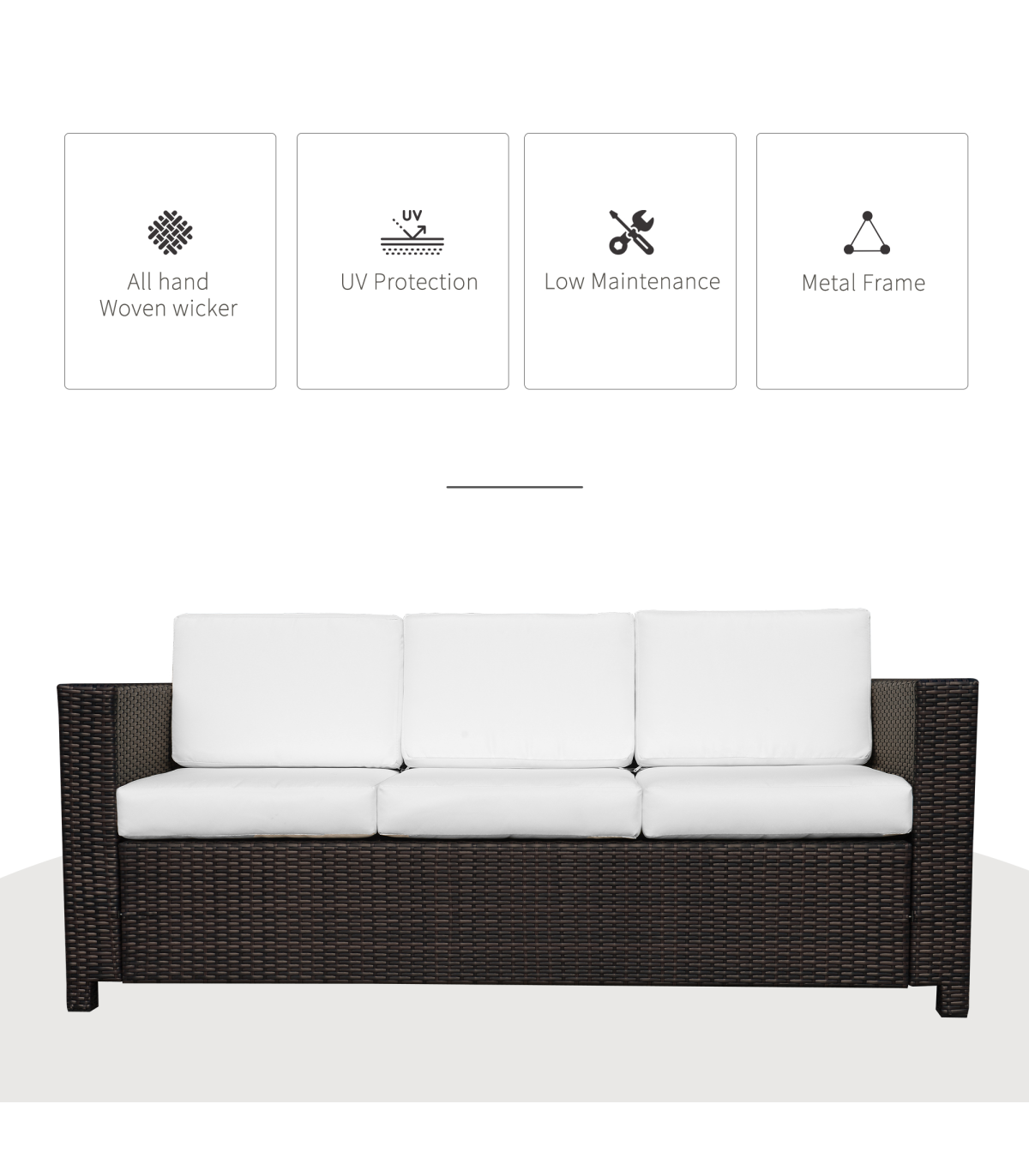 If you love to lounge outdoors, this three-seater outdoor sofa from Outsunny is the piece for you. Using a combination of a power coated and galvanised frame for the core, with plastic wicker, this piece has been made to last for years, with extra thick cushions on the seats and back. High on the back, with high armrests and longline seats for support, this sofa is finished with four feet to elevate and protect the main frame, as well as keeping it level and balanced on the floor.