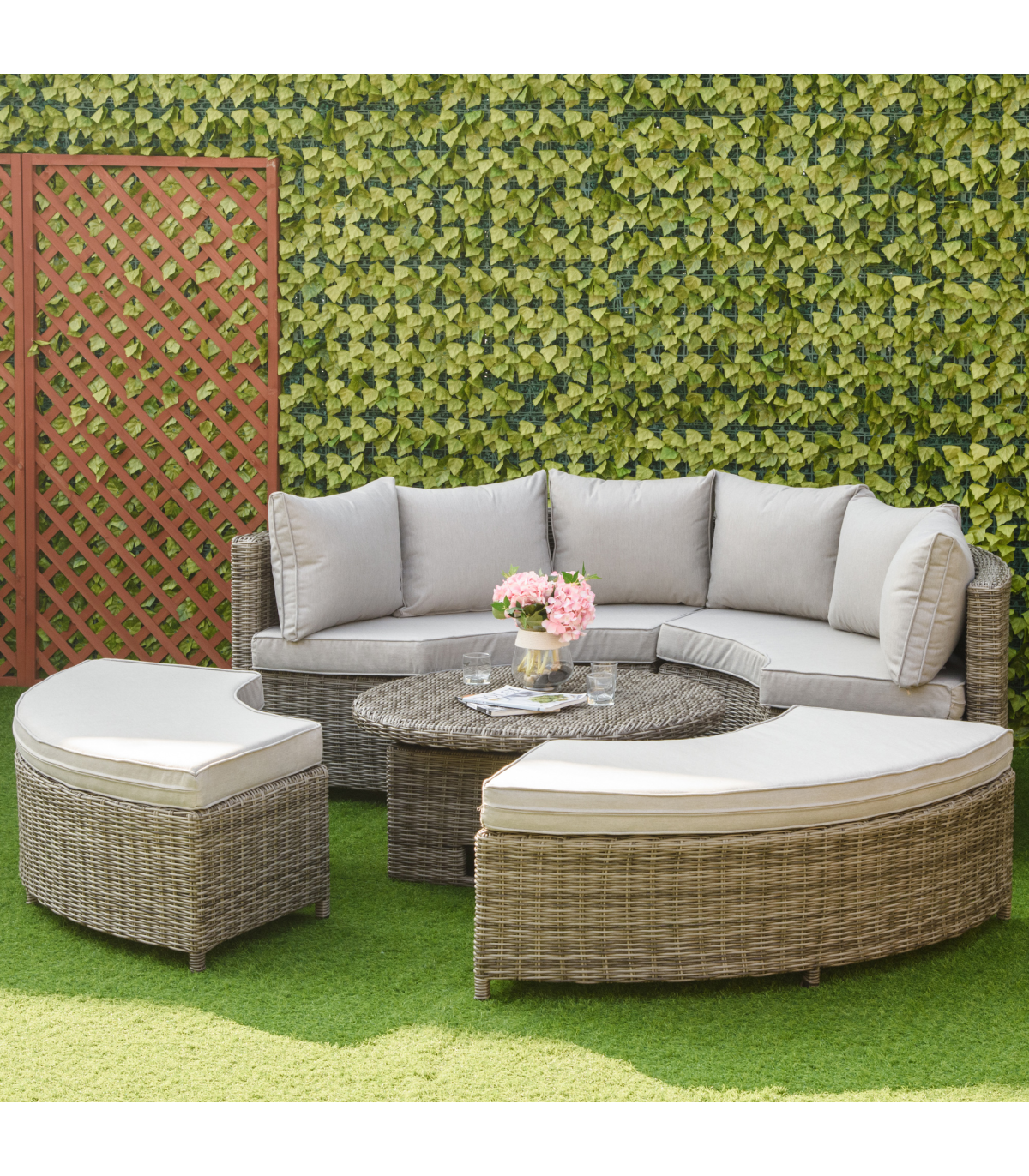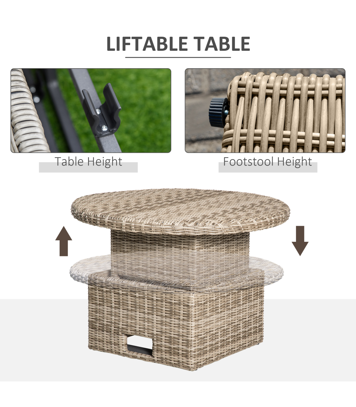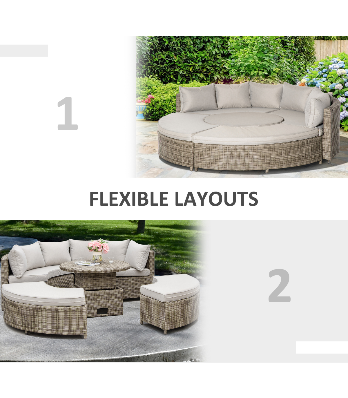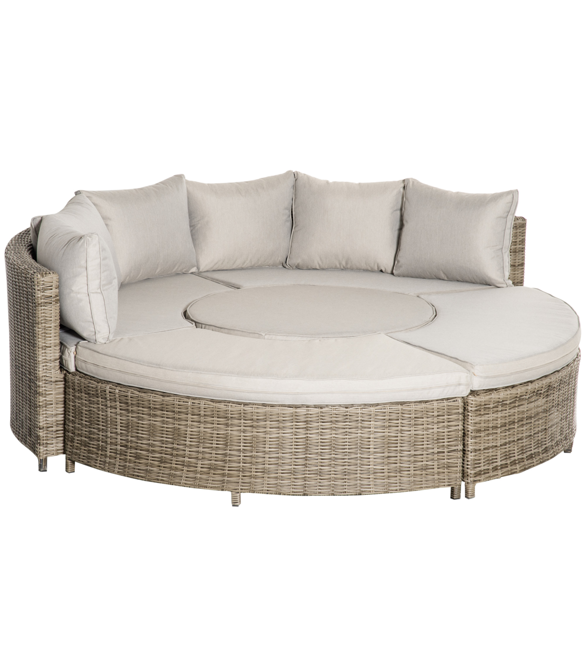 Transform from sleeping to lounging with just one set - this garden sofa set from Outsunny. Thanks to the height-adjustable coffee table, you can pull all pieces of the outdoor furniture together to become level and make it a large bed. The cushions of the conservatory furniture keep you comfortable whether you are sitting or snoozing. Each piece uses aluminum for stylishly and firmly garden-ready. The garden furniture sets made to bring everyone together or give you some well-deserved time out.