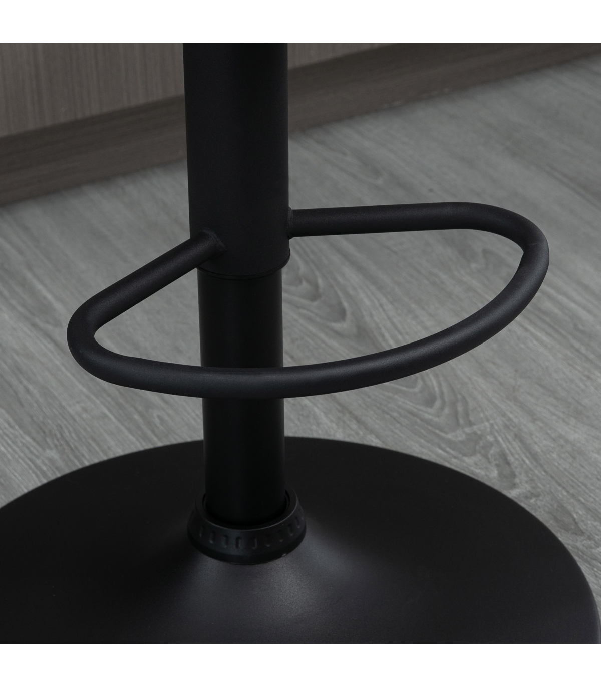 - Steel base with wide round base and bottom bar for resting feet