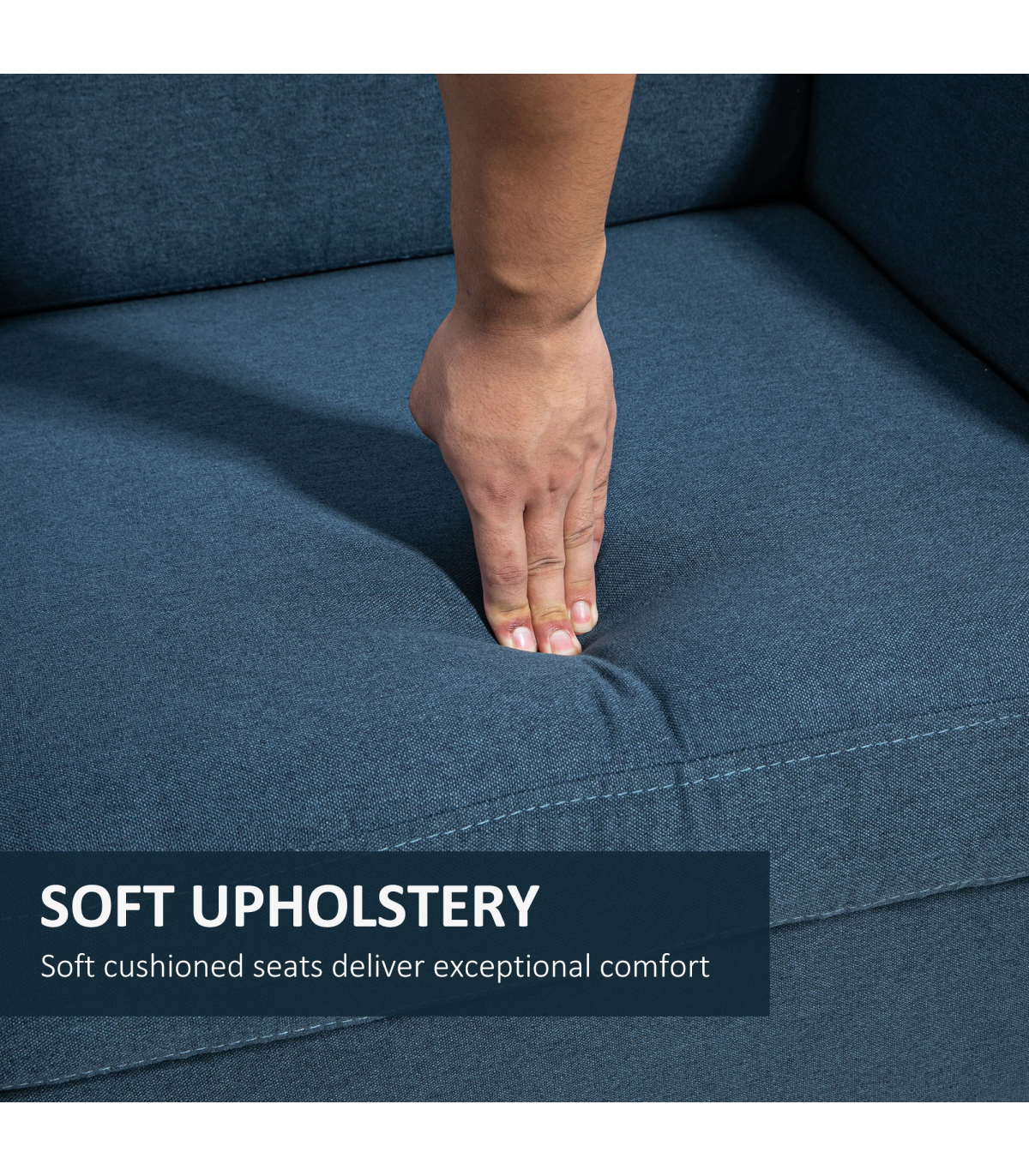Sink into something comfortable, without sacrificing on your precious home space - look to this HOMCOM two seater sofa. The strong wooden frame is made into a two person size: relax with company or grab room to yourself. Filled with sponge, this sofa is comfortable - the linen-look upholstery is smooth. Comes with padded back and seats cushions for extra comfort, with anti-slip foot pads to gently protect your floor.