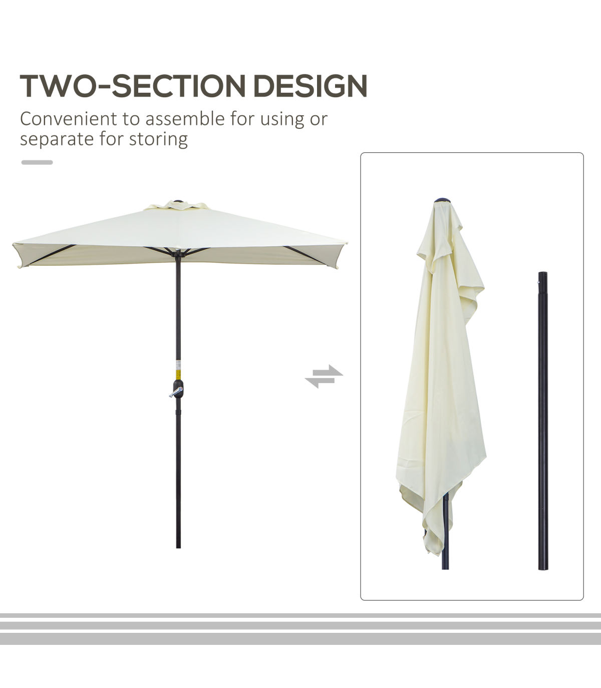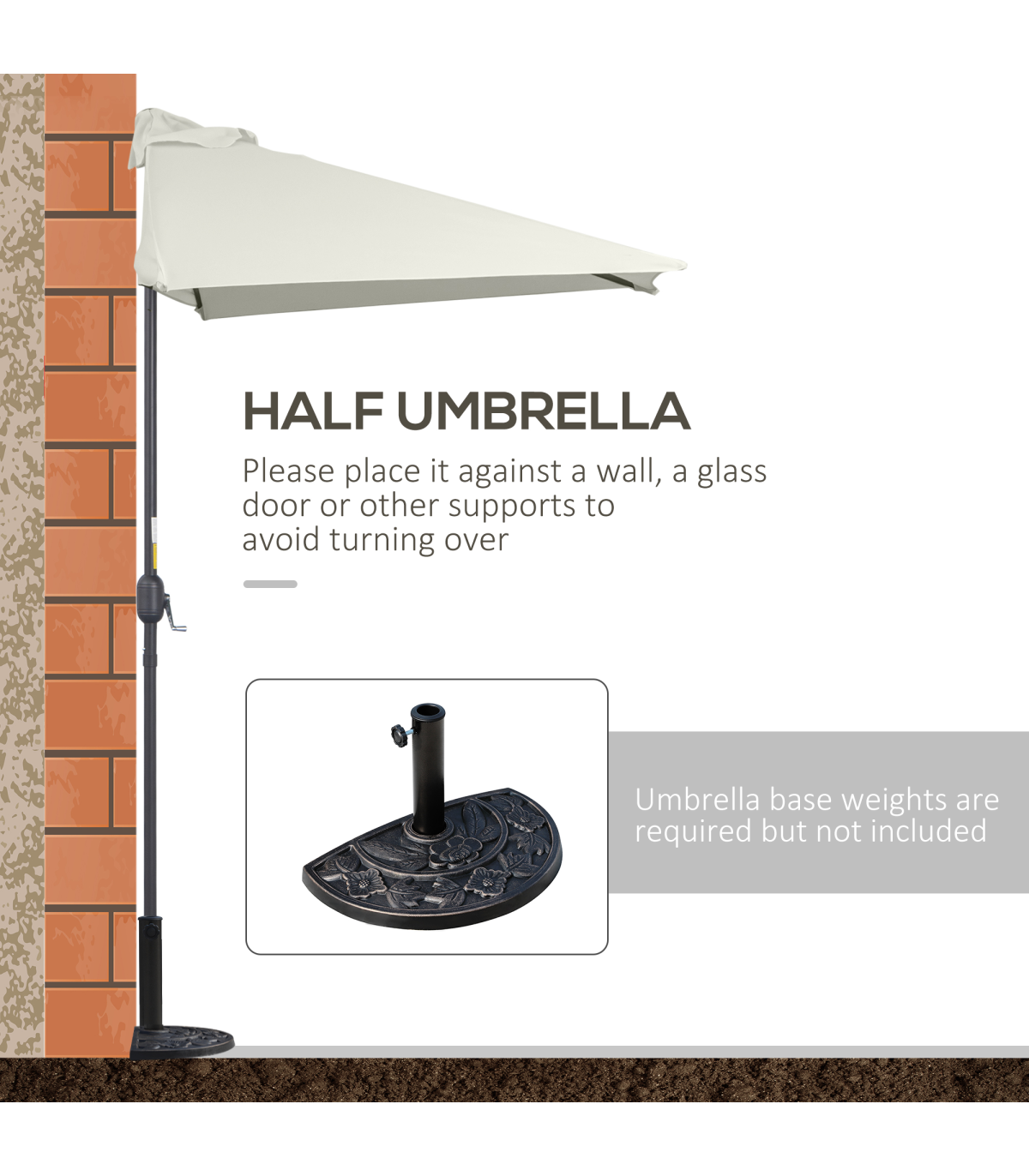 - UV RESISTANT: Anti-UV material used in the construction of the half garden parasol help prevent molding and fading from typical outdoor weather elements.