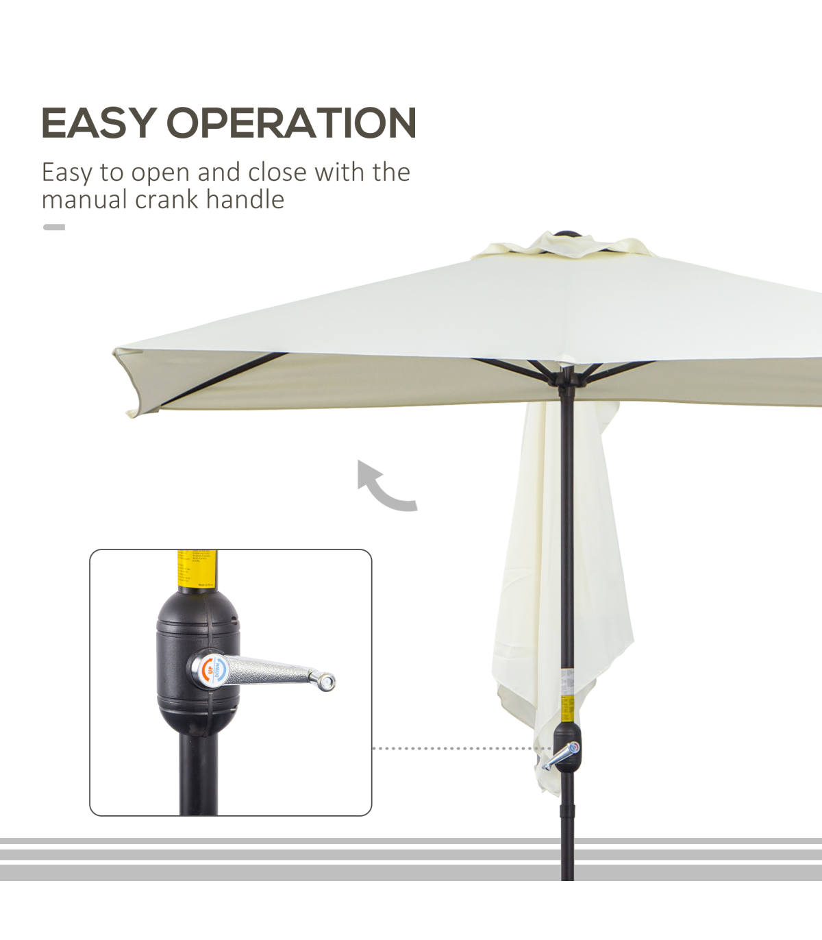 - CRANK MECHANISM: Open and close the balcony parasol in seconds with the easy-to-turn handle located on the side of metal pole.