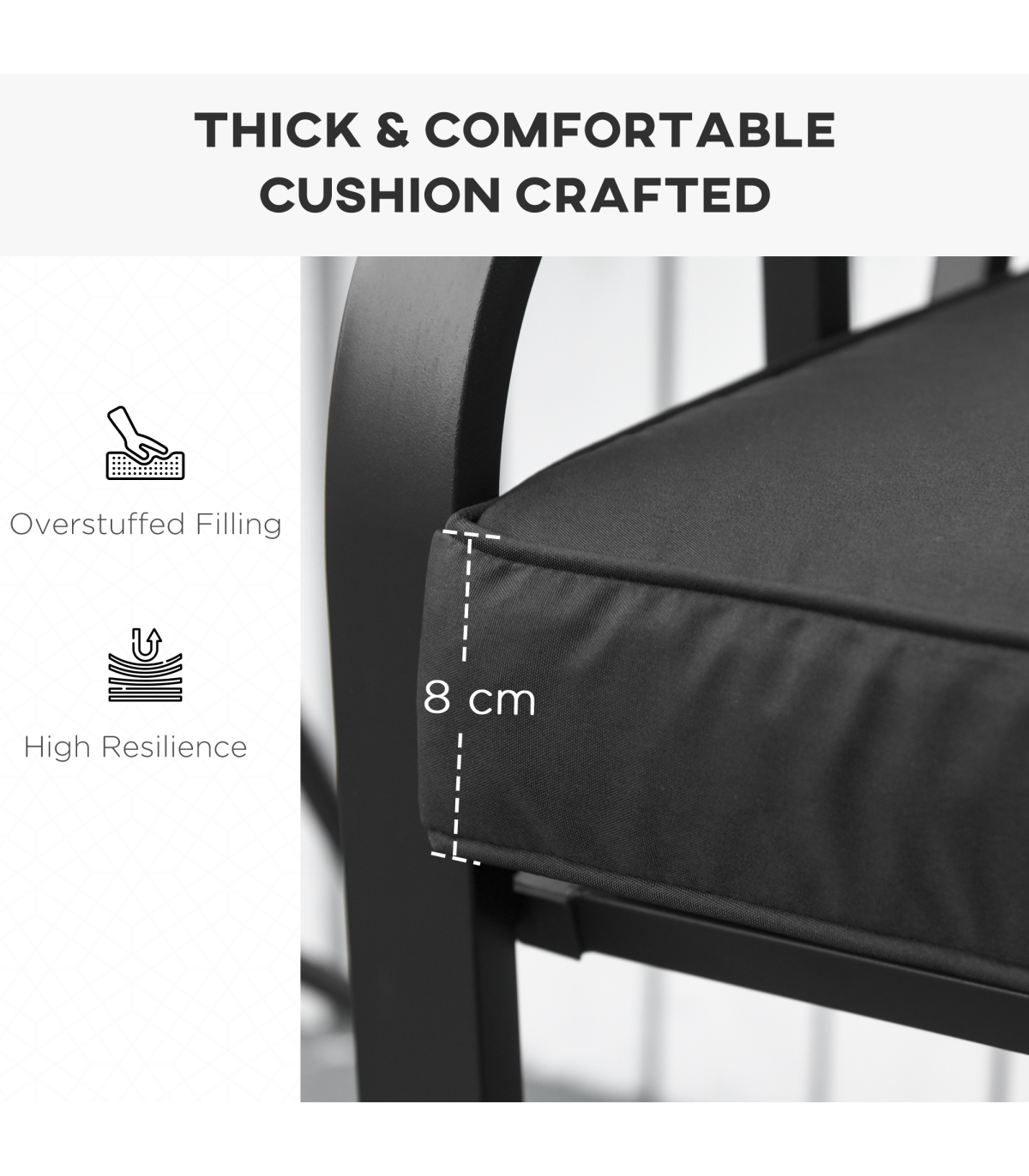 Make hours of uncomfortable sitting outdoors a thing of the past: go for these outdoor seat cushions from Outsunny. Made from polyester to ensure our garden seat cushion is tough and resistant to water and light stains, the cover is made to a 120cm x 50cm size, making it a perfect fit for two-seater benches. And patio bench cushions are filled with thick sponge filling for comfort and finished with two tie fastenings on the top corners to attach safely.