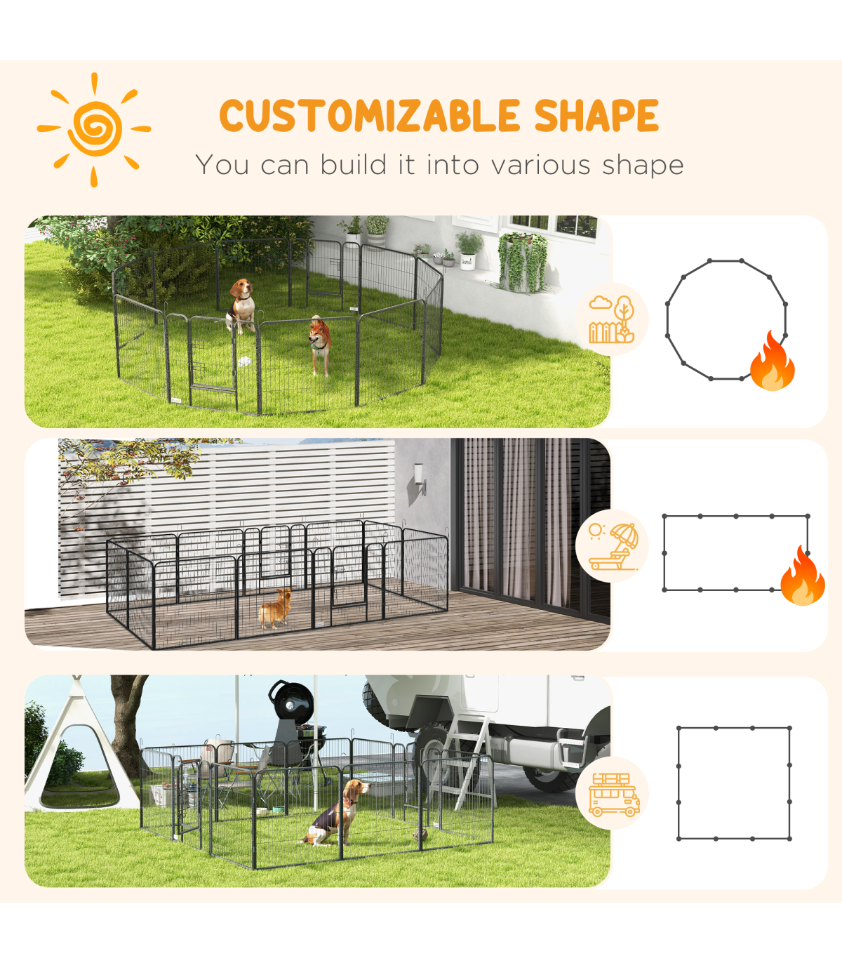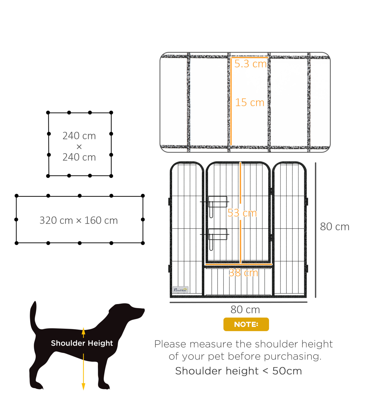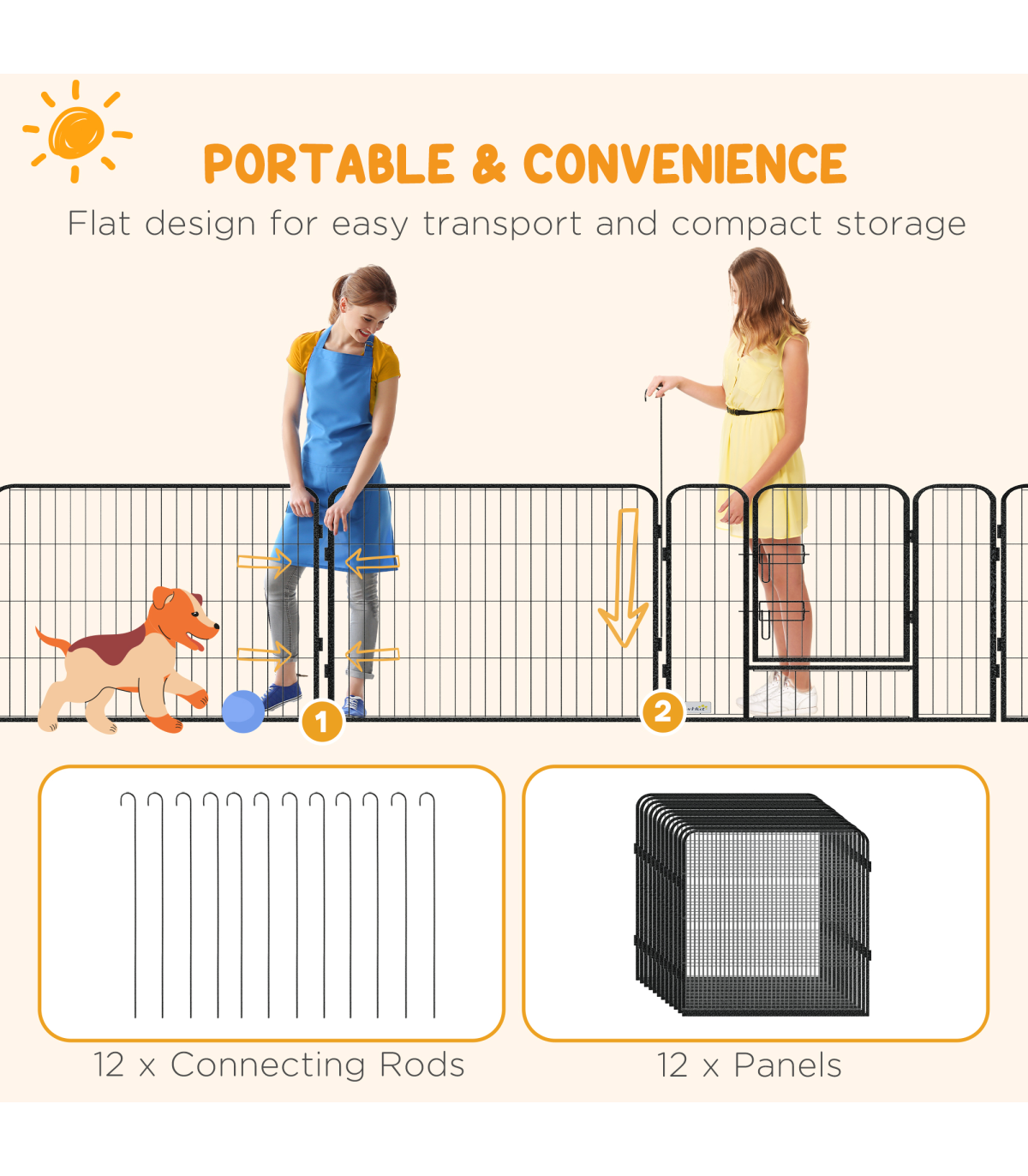 With this PawHut pet pen, pets have a safe space to be themselves, whilst giving you peace of mind. With 12 panels, it's flexible and spacious, providing lots of room to roam, play and relax – pets won't feel boxed in. Features ground stakes that go into the ground for stability, you'll set this playpen into different shapes to fit your layout, whether it's inside or outside. For pets, it's freedom and security, and for you, it's knowing they're safe and sound, with lots of space to enjoy.