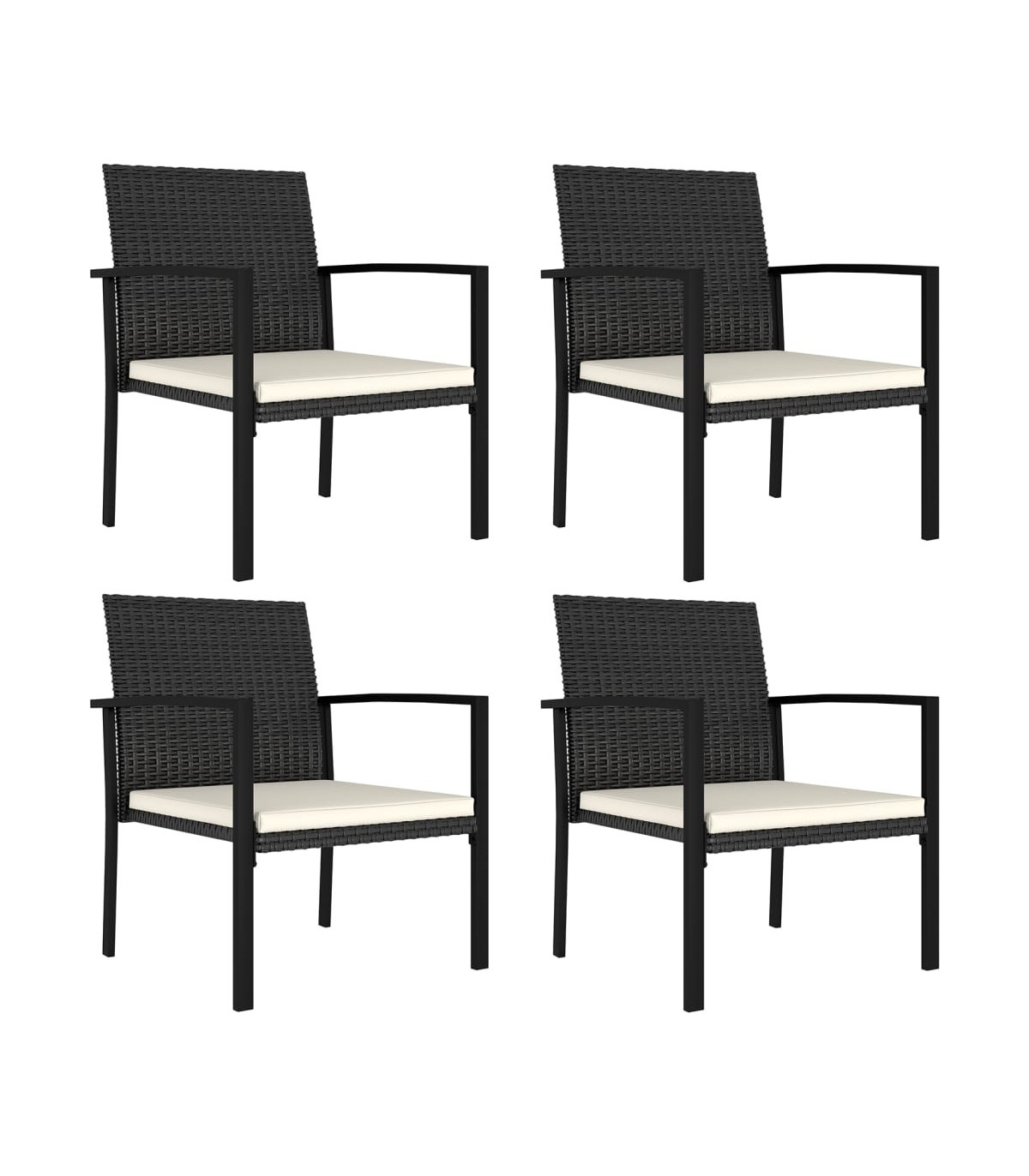 Add a touch of modern style with this garden dining chair set. It is designed to complete an outdoor dining set or stand out on its own. This patio chair set makes an eye-catching statement in any setting. Sturdy steel frame wrapped with weather-resistant PE rattan, the garden armchairs are stable, durable and suitable for outdoor use. The included seat cushions also provide additional seating comfort. Thanks to the lightweight construction, the outdoor chairs are easy to move around. Note: In order to extend the life of your outdoor furniture, we recommend you to clean it regularly and do not leave it outdoors without protection unnecessarily.