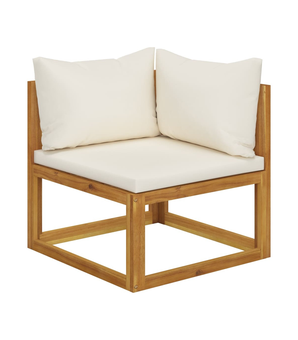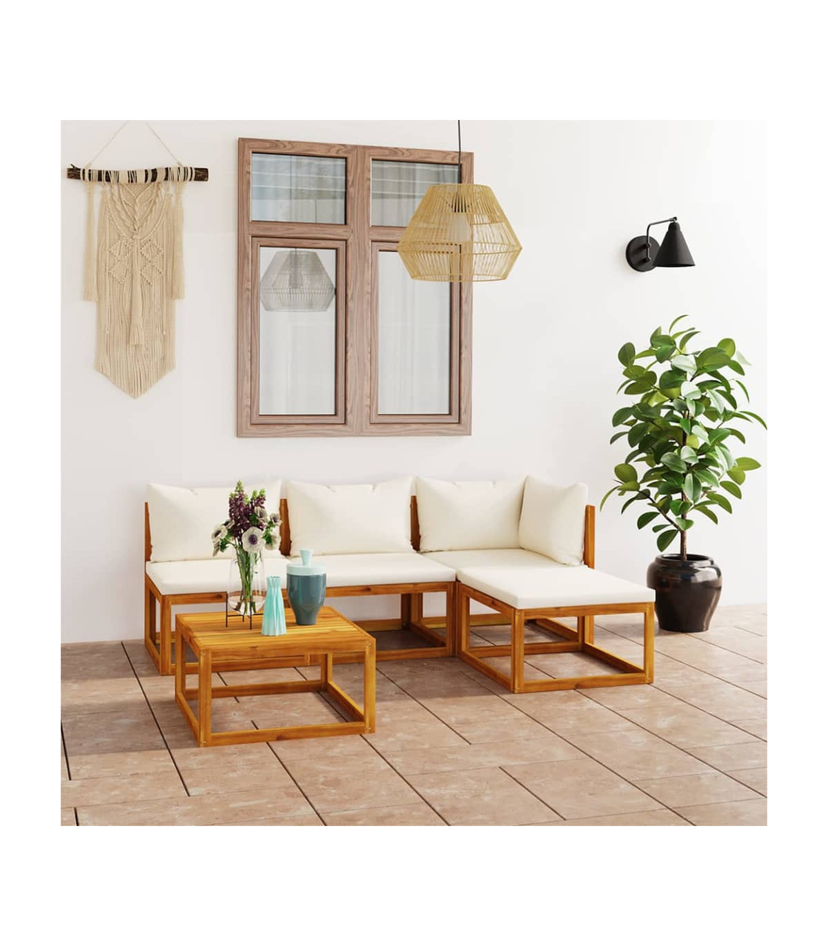 This compact and highly comfortable wooden garden lounge set will definitely be the focal point of your terrace, garden or patio. Made from solid acacia wood, this set is not only beautiful but also durable. The backrest and armrest add extra seating comfort, while the removable seat and back cushions provide additional coziness. The set includes a practical coffee table with a unique slatted design for placing meals, drinks, and decorative items. Its modular design allows for customization and arrangement according to your needs. To ensure longevity, we recommend protecting the set with a waterproof cover. Each product comes with an assembly manual for easy setup.
