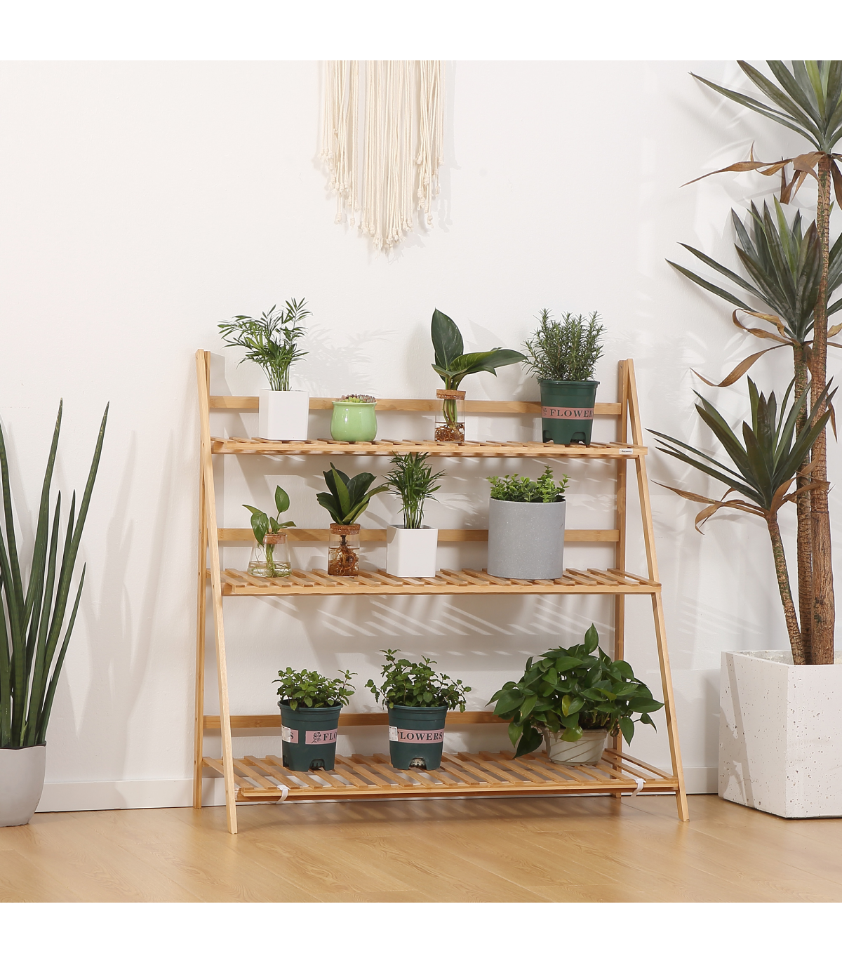 This 3-Tier Folding Bamboo Plant Stand Display Shelf Rack is perfect for both indoor and outdoor use. Made of bamboo with a natural wood finish, this plant stand is not only sturdy but also stylish. The three-tier design provides ample space for plants, flowers, herbs, and more, allowing you to create a beautiful display in your home or garden.