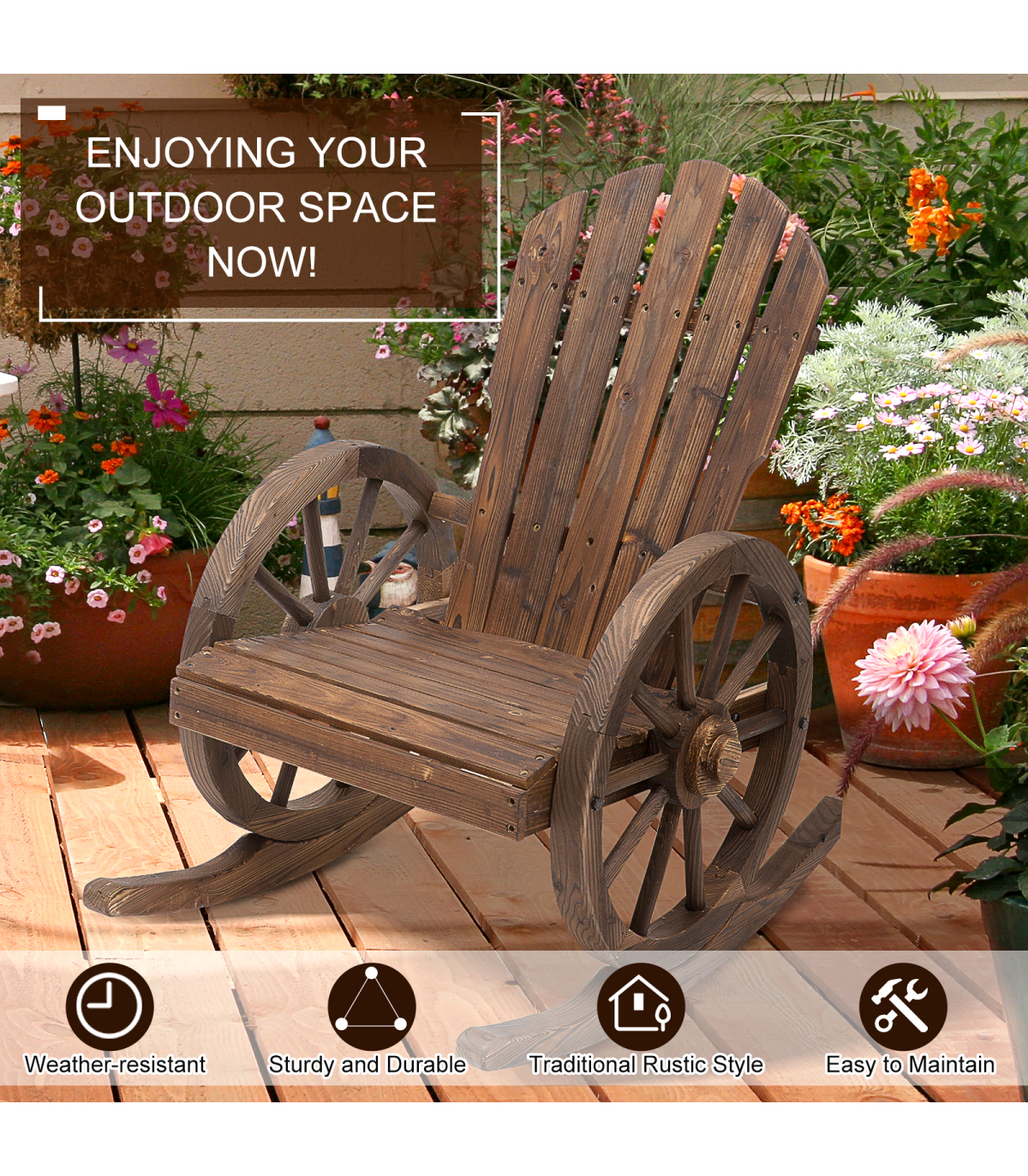 - FIR WOOD BODY: Strong and durable for reliable outdoor use. Burnt brown finish adds rustic charm that improves with age.