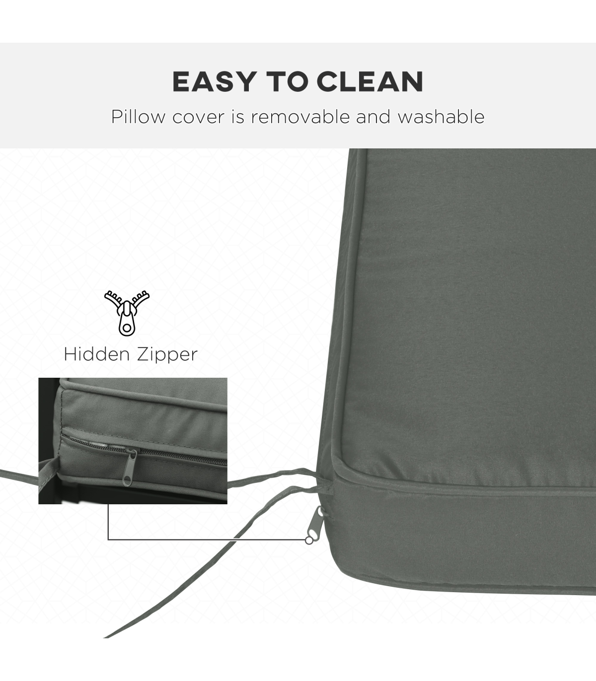 Make hours of uncomfortable sitting outdoors a thing of the past with this Garden Bench Cushion from Outsunny. The polyester cover is tough and resistant to water and light stains, making it perfect for both indoor and outdoor use. The cushion measures 120cm x 50cm, ideal for two-seater benches, and is filled with thick sponge filling for maximum comfort. The two tie fastenings on the top corners ensure a secure attachment to the bench.