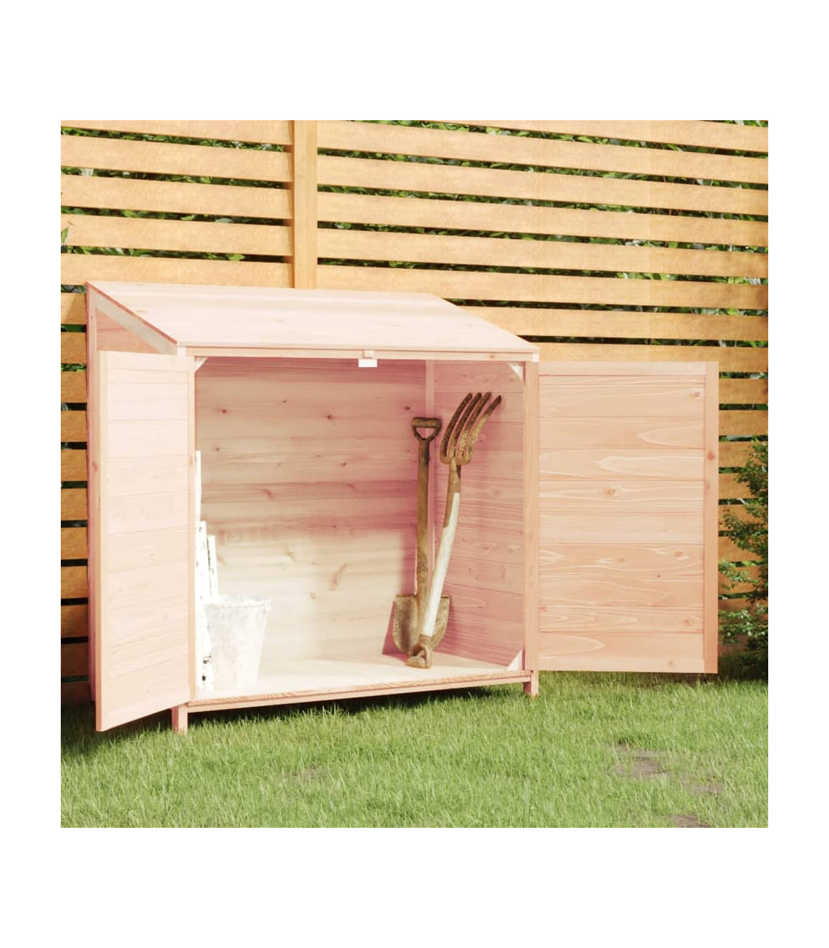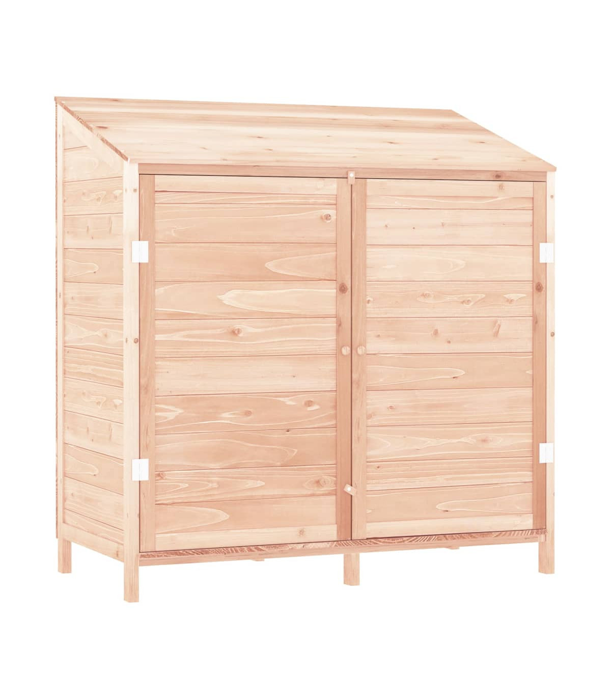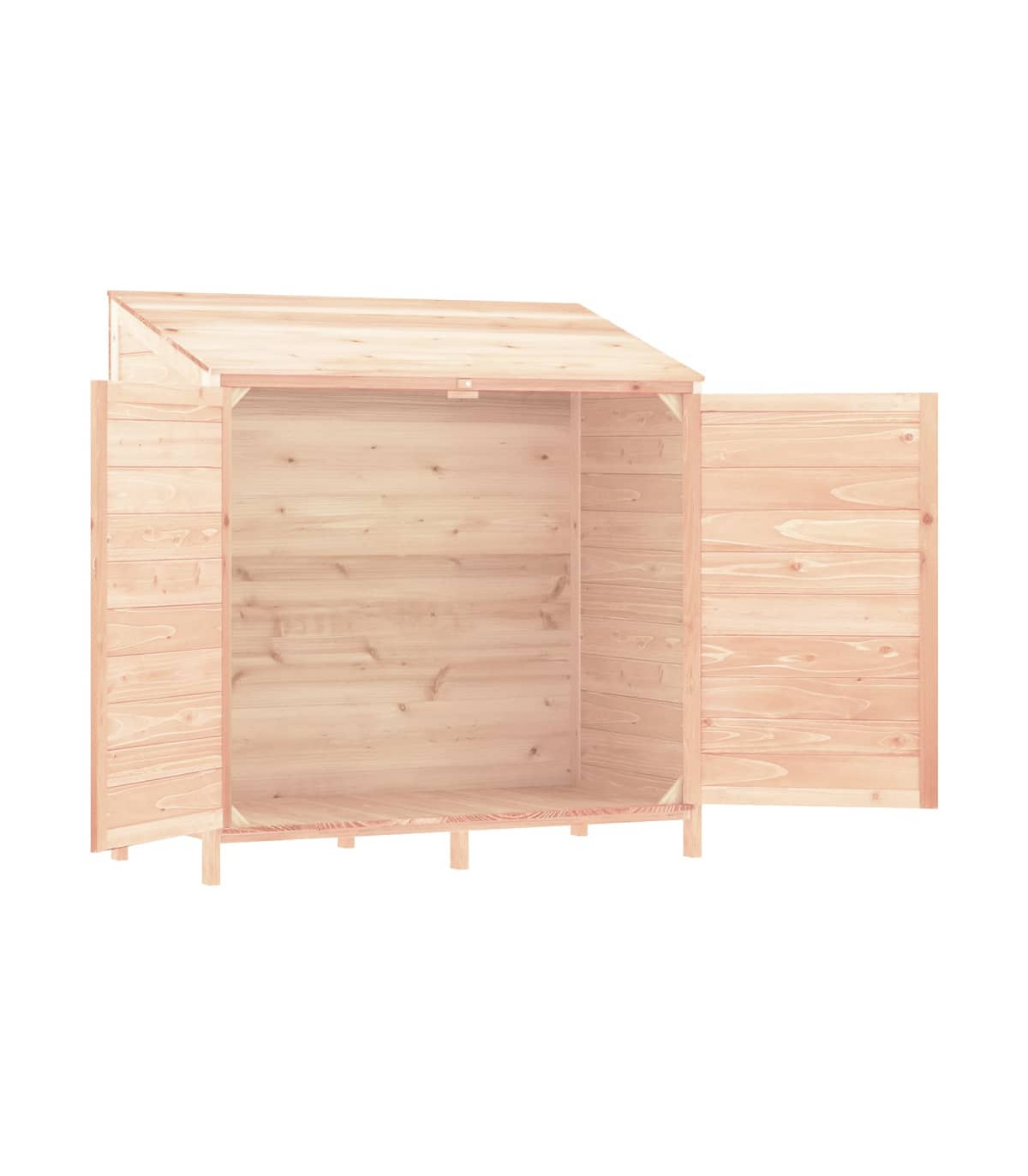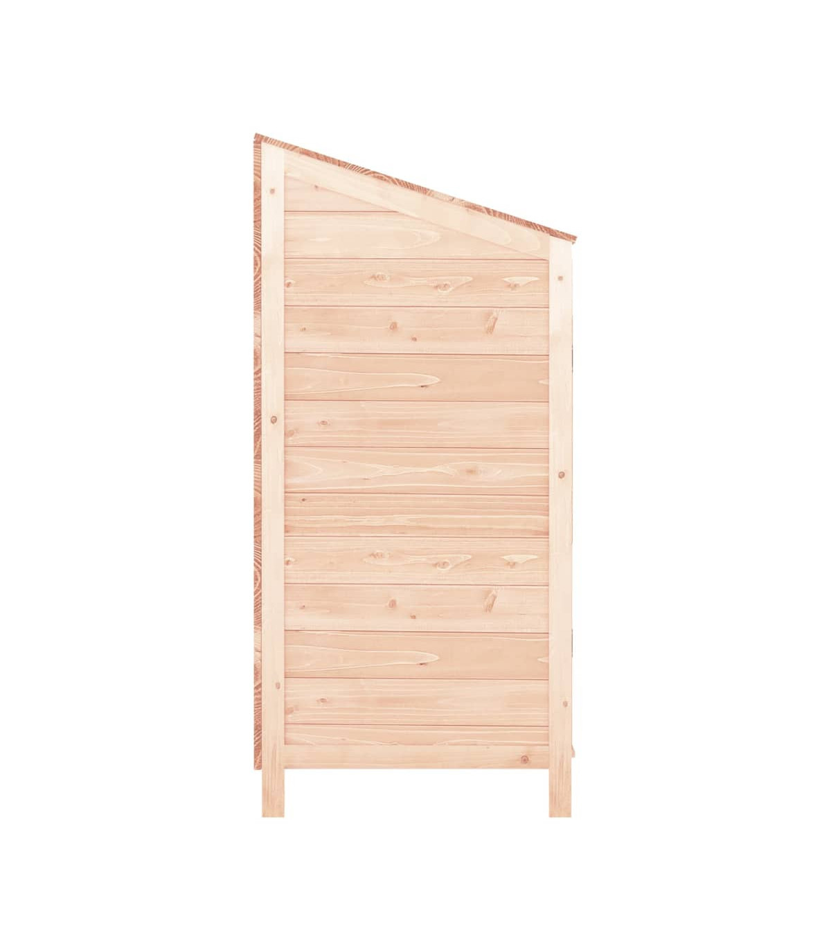 This wooden garden shed makes a great addition to any backyard, lawn, and other outdoor space. Made from solid fir wood, this shed is not only beautiful but also durable. Fir wood is known for not drying out or warping when exposed to moisture, making it perfect for outdoor use. The shed offers ample storage space for various garden tools, lawn care equipment, household items, and other garden accessories. The sturdy wooden frame ensures stability and protection from dirt, dust, strong wind, and harsh weather. Please note that in order to prevent overturning, this product must be used with the wall attachment device provided.