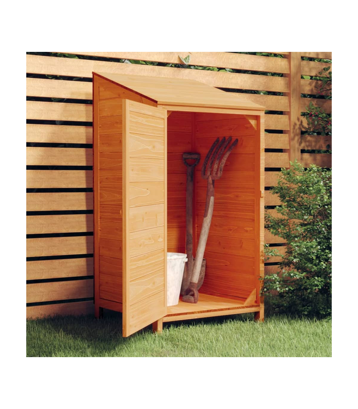 This wooden garden shed makes a great addition to any backyard, lawn, and other outdoor space. Made from solid fir wood, this shed is not only beautiful but also durable. Fir wood is known for not drying out or warping when exposed to moisture, making it perfect for outdoor use.