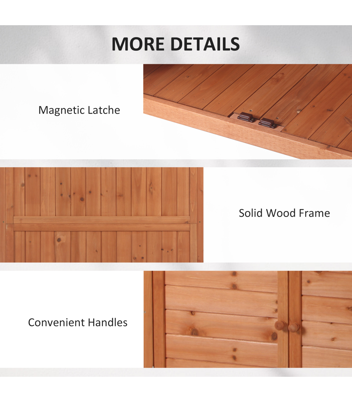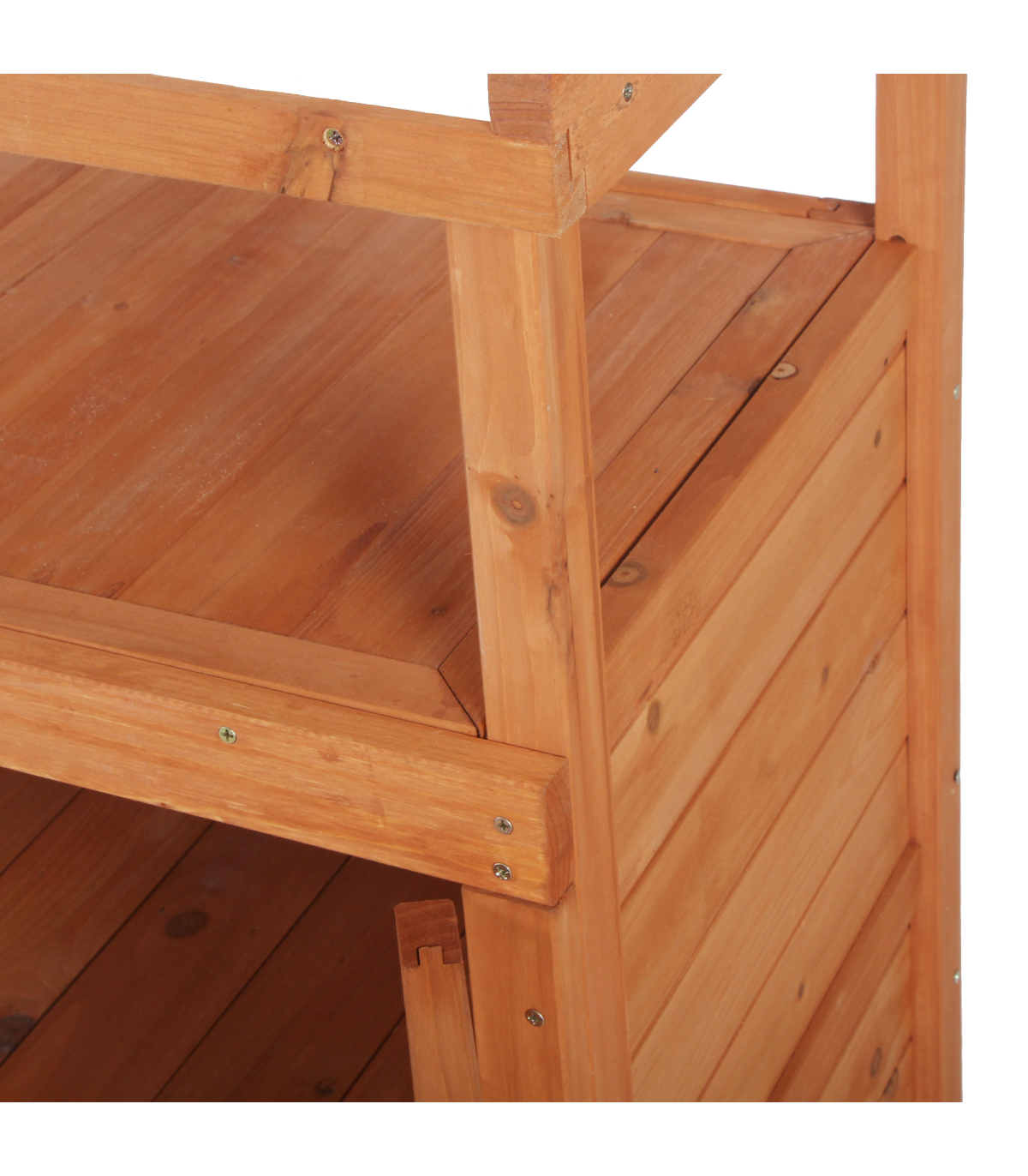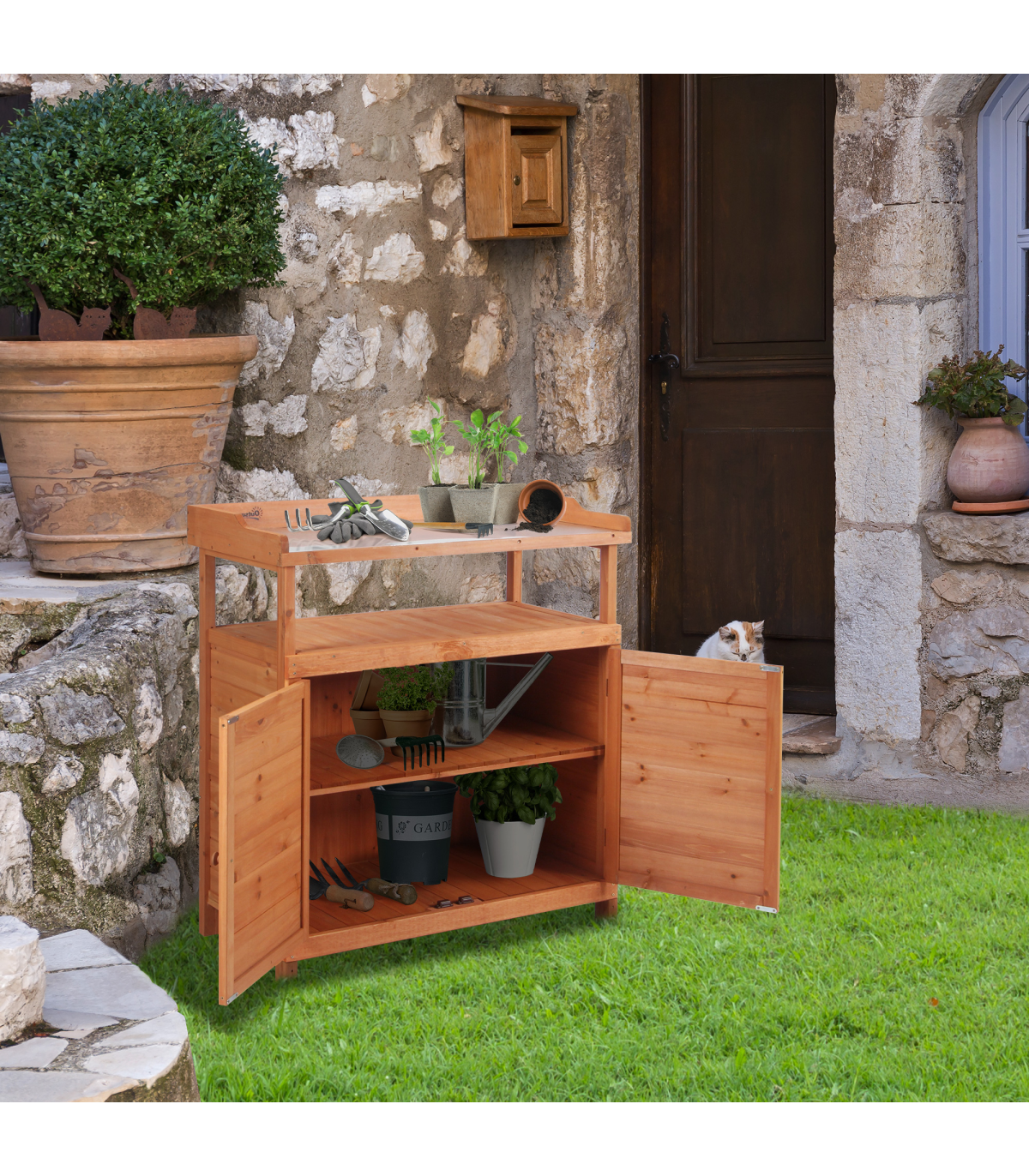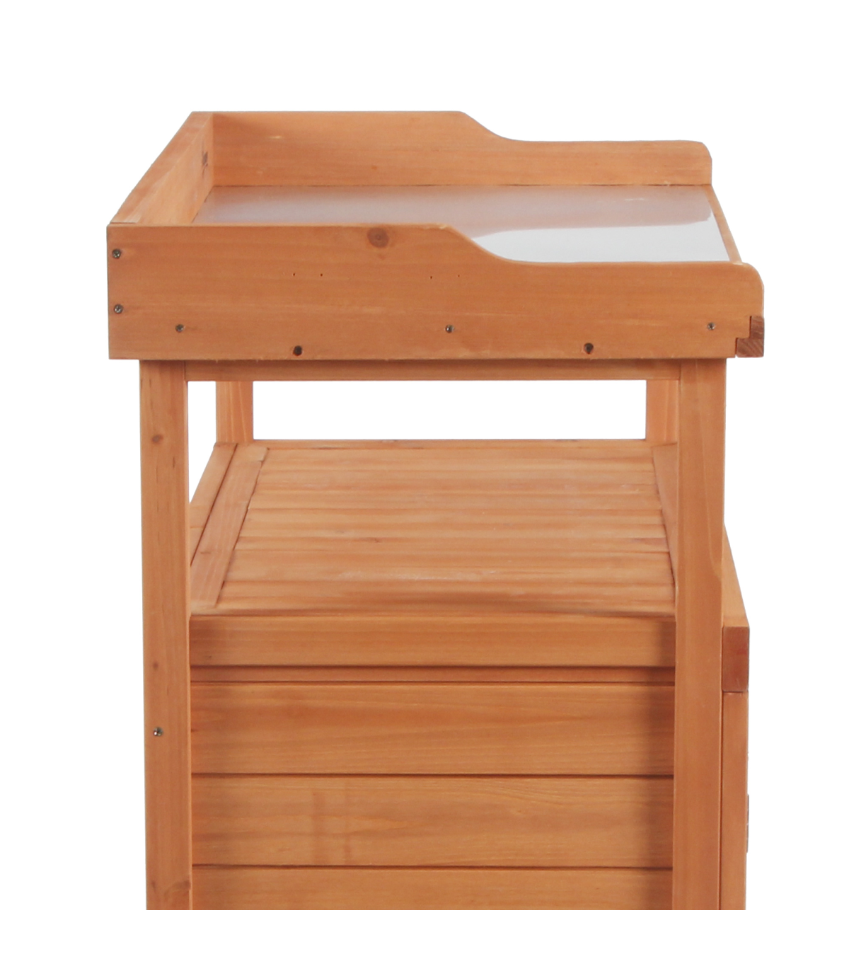 This potting bench from Outsunny has a simple appearance yet flexible functionality to bring an awesome addition to your garden or backyard. The outdoor tool shed has a workstation table, ideal for storing various tools and accessories and as a garden workbench. The metal tabletop is very easy to clean, you could feel free to do the work at it. The outdoor storage cabinet is made of fir wood which is durable and sturdy, offers long-term reliable use.