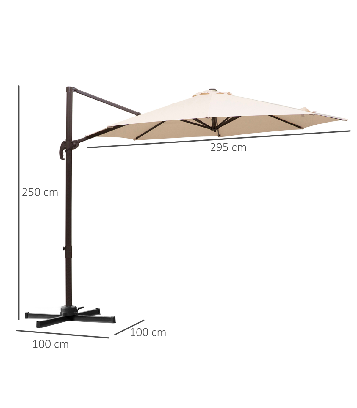 Ensure you keep yourself protected enjoying the sun with this large parasol umbrella from Outsunny. Made from powder-coated aluminium, the strong and durable central pole is resistant to rusting, peeling and corrosion to provide you years of use outdoors. Connected to the frame via eight steel ribs for extra strength, the polyester canopy is easy to clean and will not fade, as well as protecting you from harmful UV rays. Using a crank mechanism for easy opening and closing, the canopy is able to rotate a full 360 degrees via the foot pedal to suit your shade needs. A piece which every garden needs.