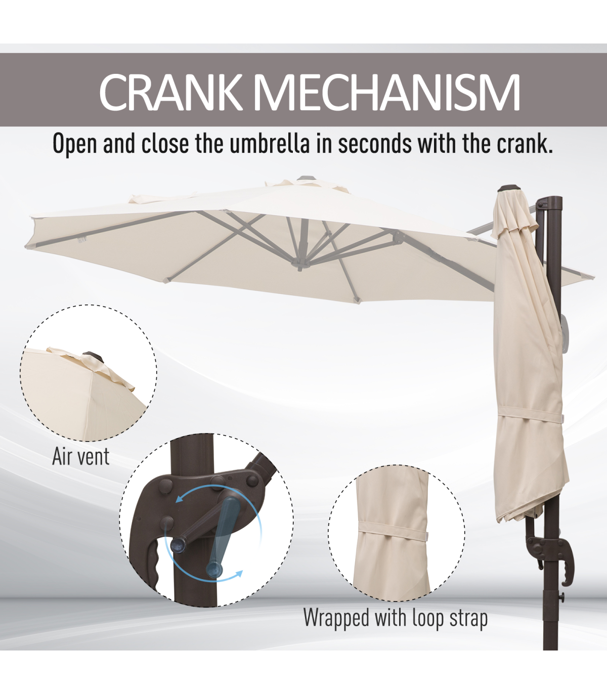 - Easy to open and close with side crank handle