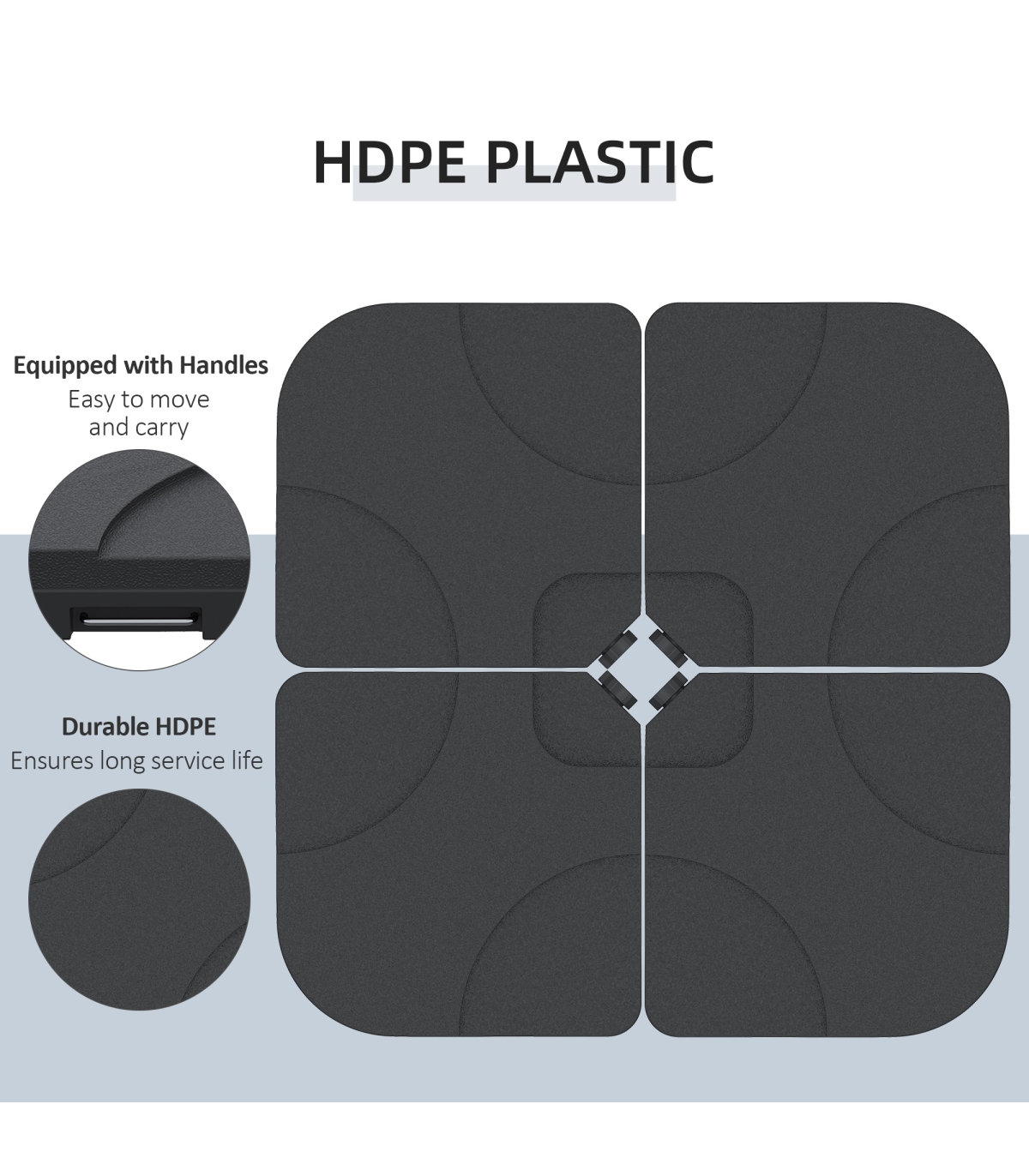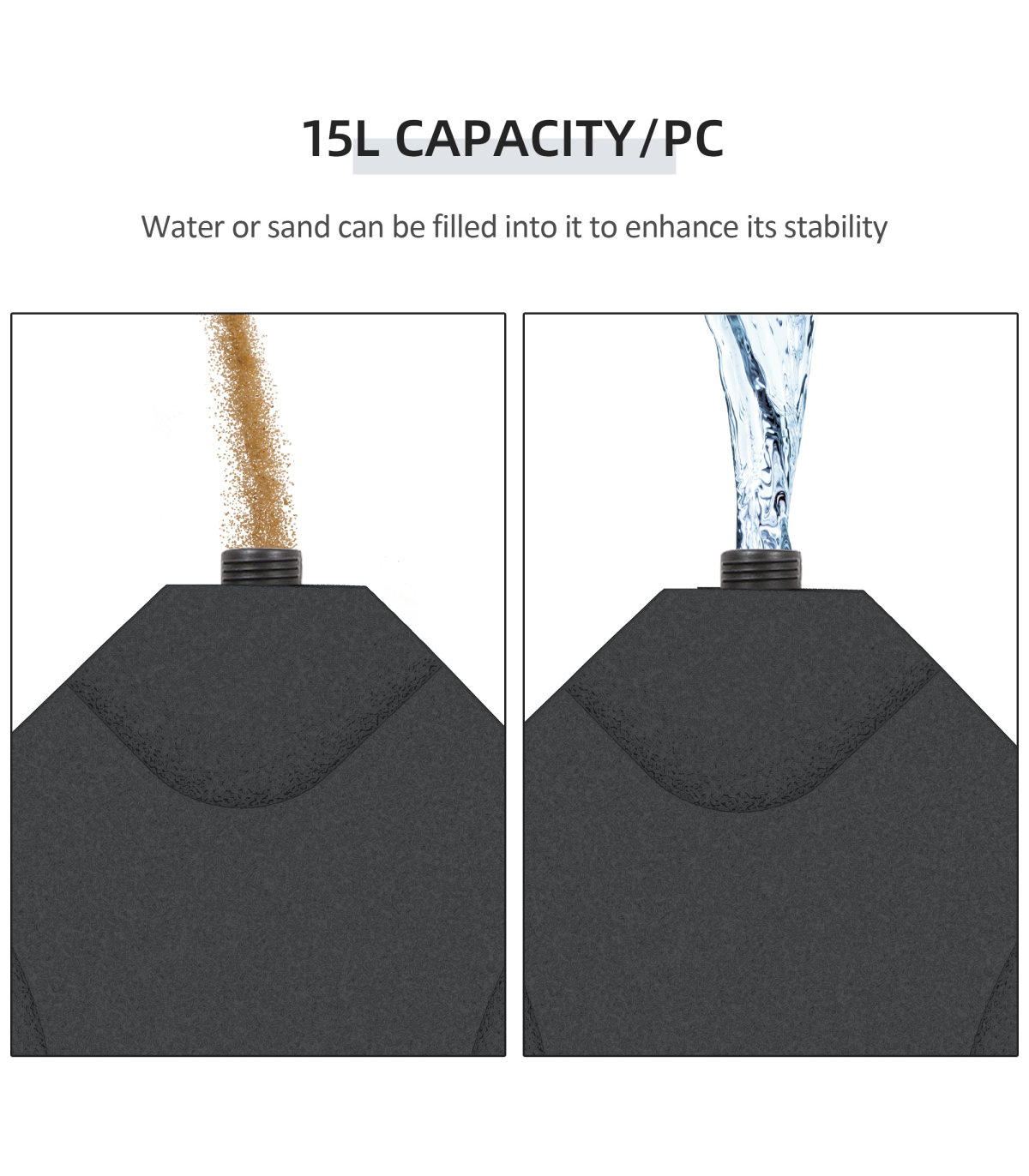 - Can fill with sand or water, 4 pcs with 60L capacity in total