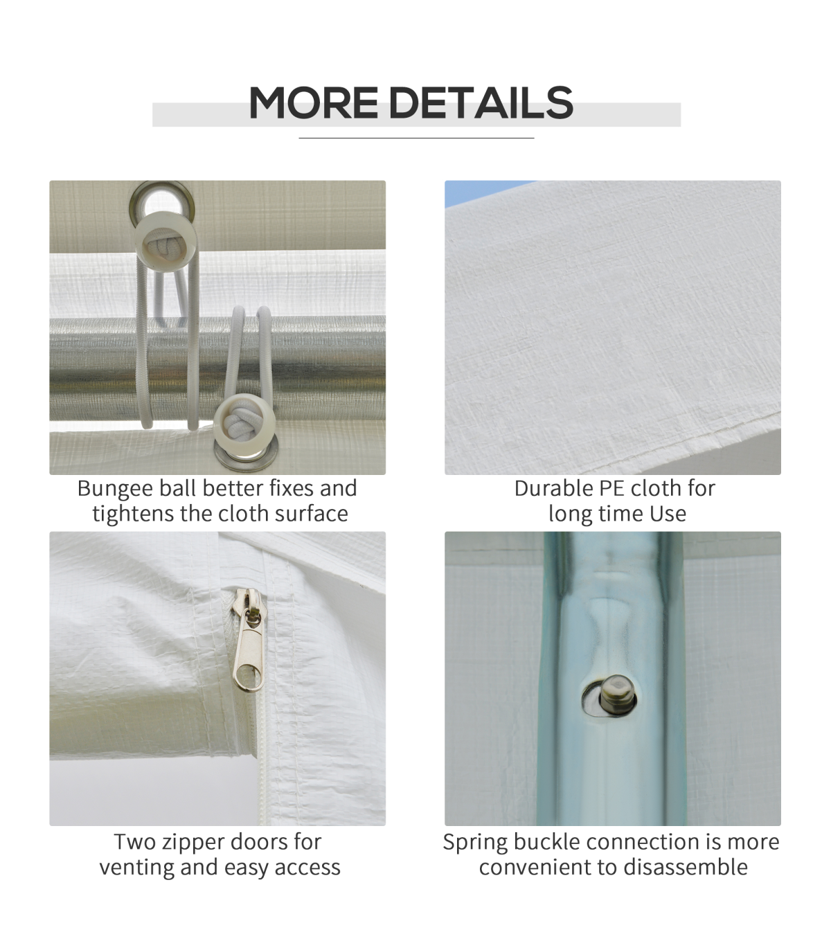 - Galvanized steel frame is tough and solid to keep structure upright