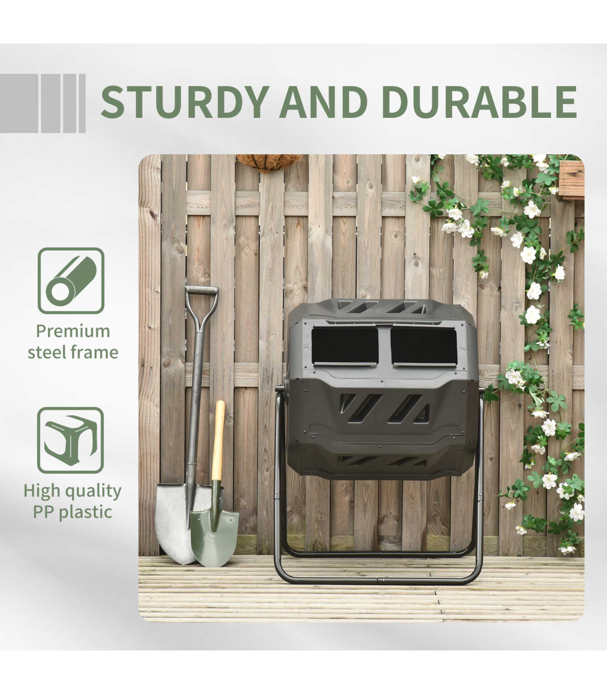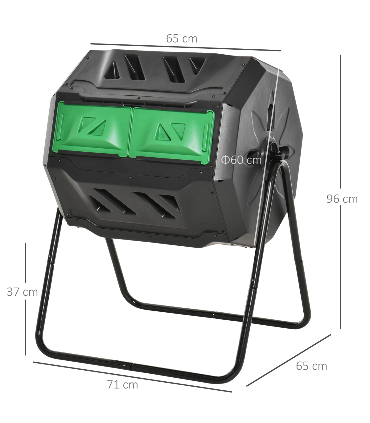 Tumbling Compost Bin Dual Chamber 360 Rotating Composter 160L"