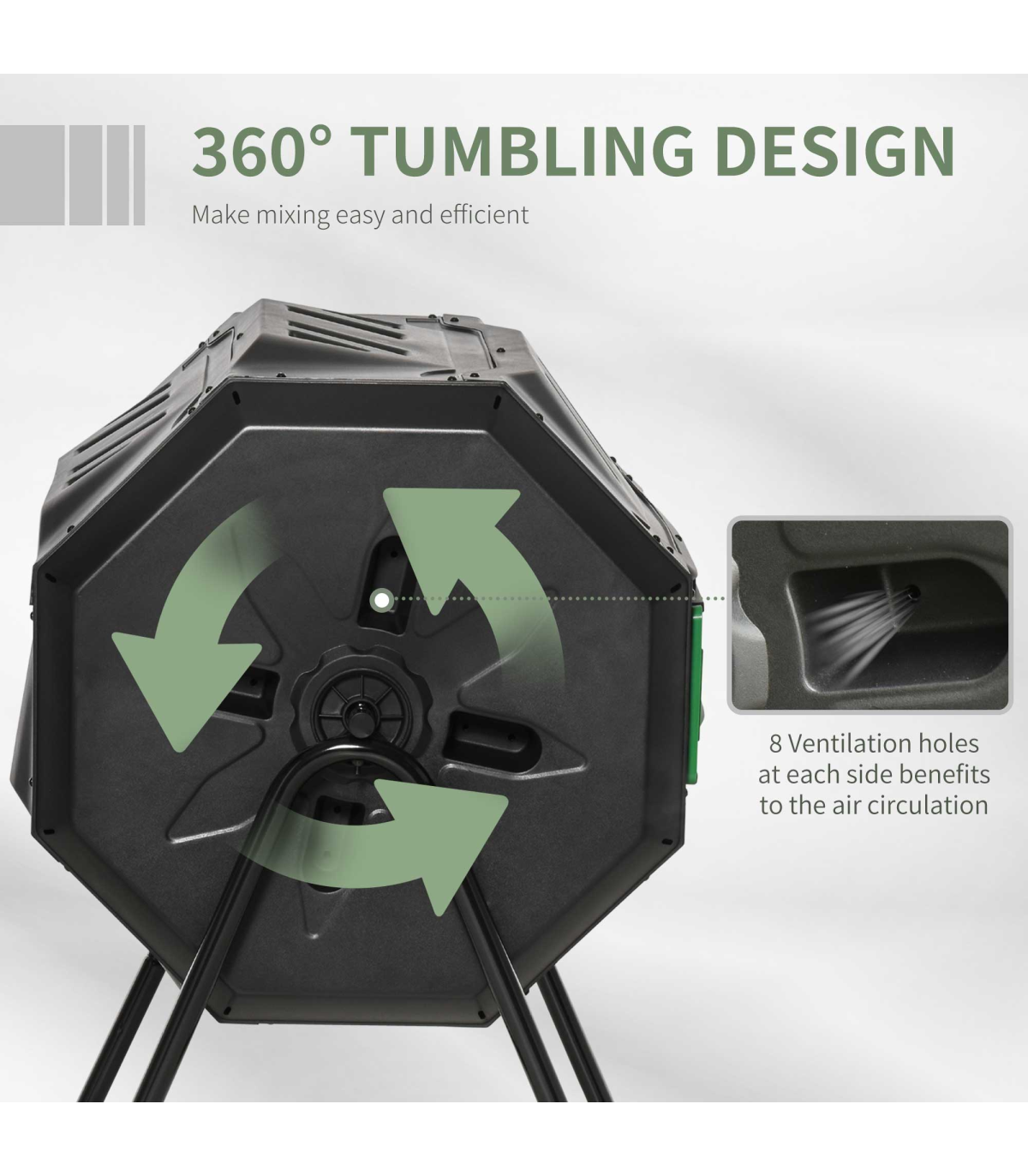 - 360° tumbling design allows for hands-free operation, avoiding the need for digging and mixing compost by hand