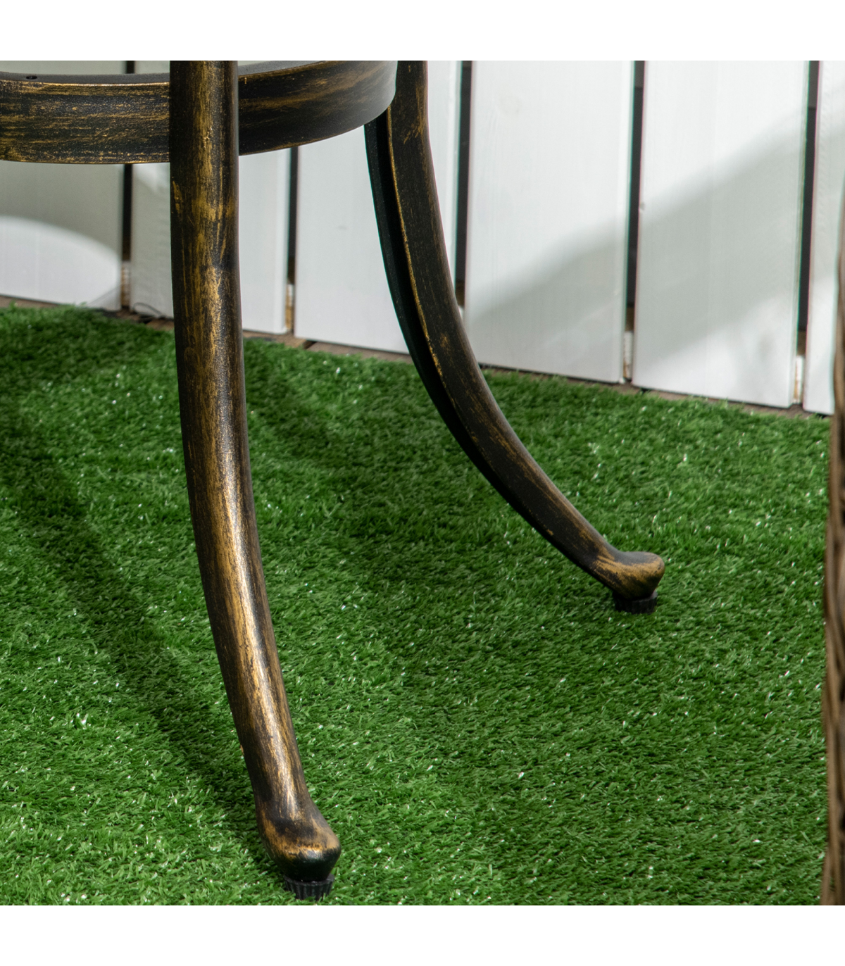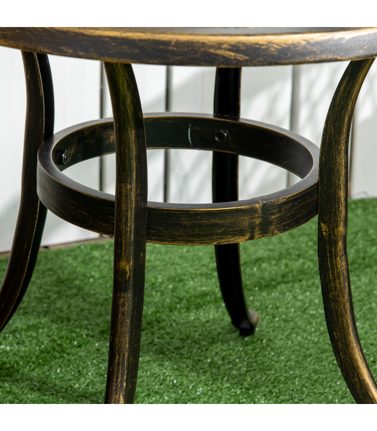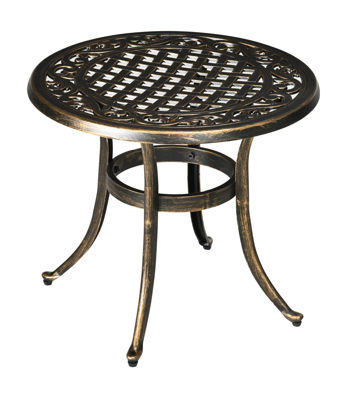 Bring a touch of chic glam into your garden this season: look to this Outsunny outdoor side table. Cast aluminium for a strong and durable structure. Bronze coloured finish is beautiful, with a pretty cut-out design on the top. Comes with four outward-curved legs for stability.