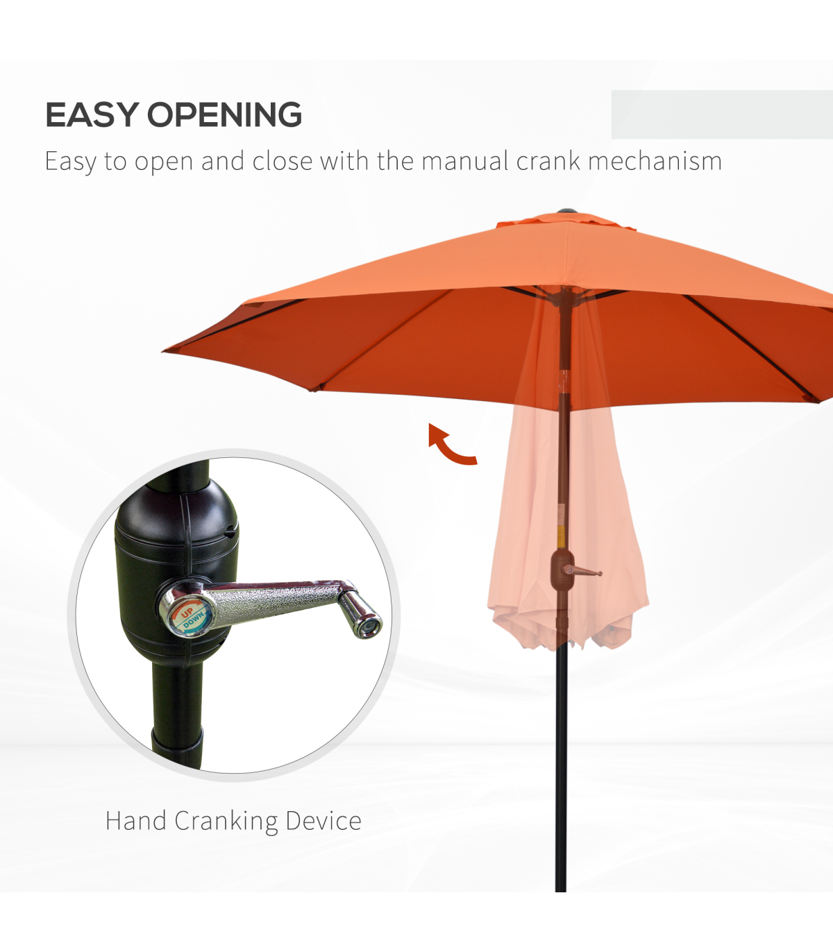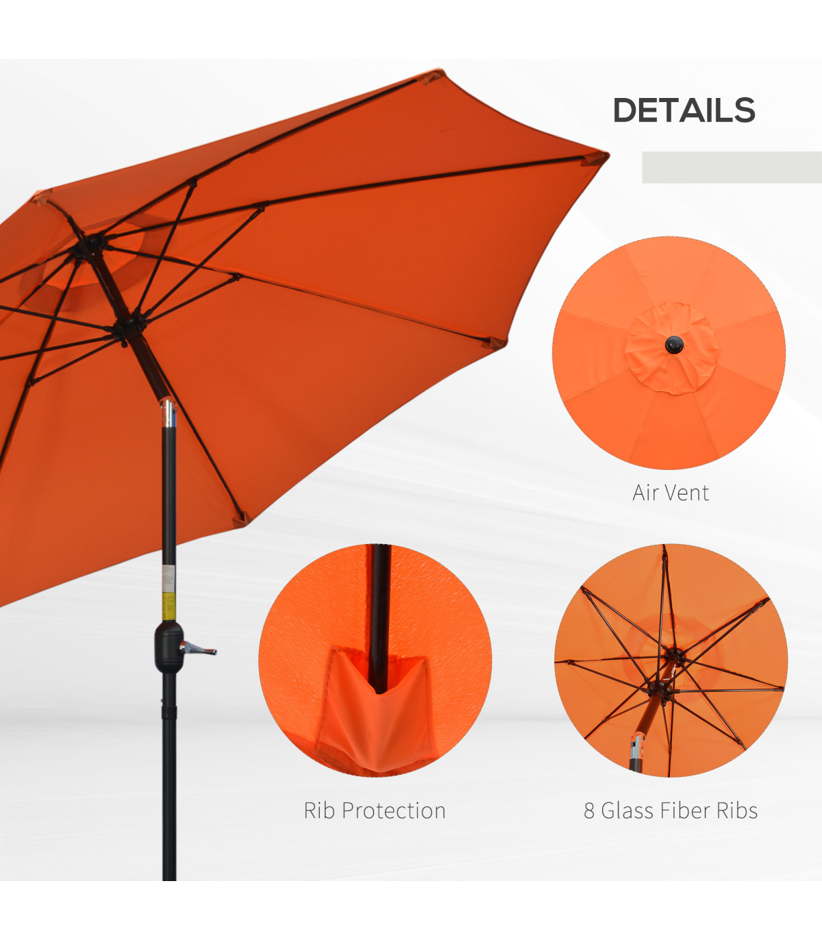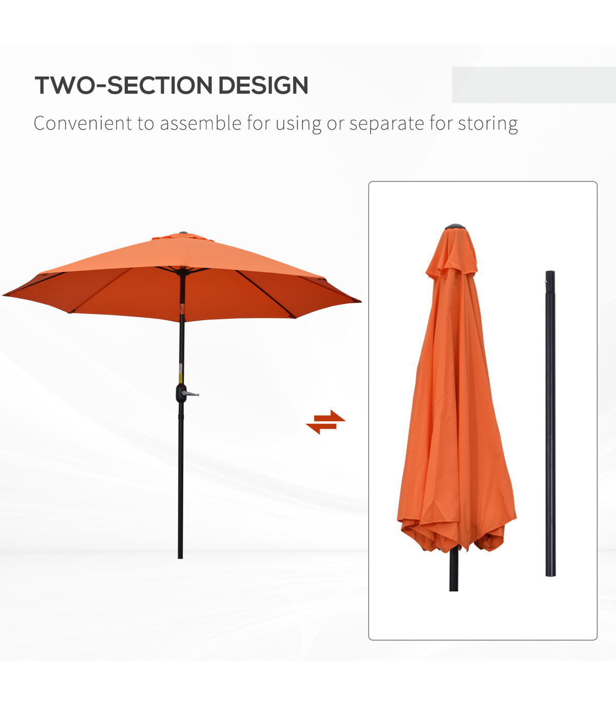 Outsunny 2.6M Patio Umbrella Outdoor Sunshade Canopy w/ Tilt and Crank Orange