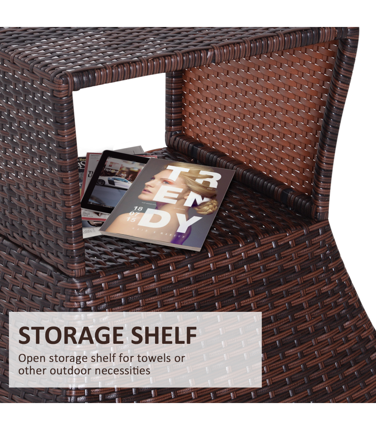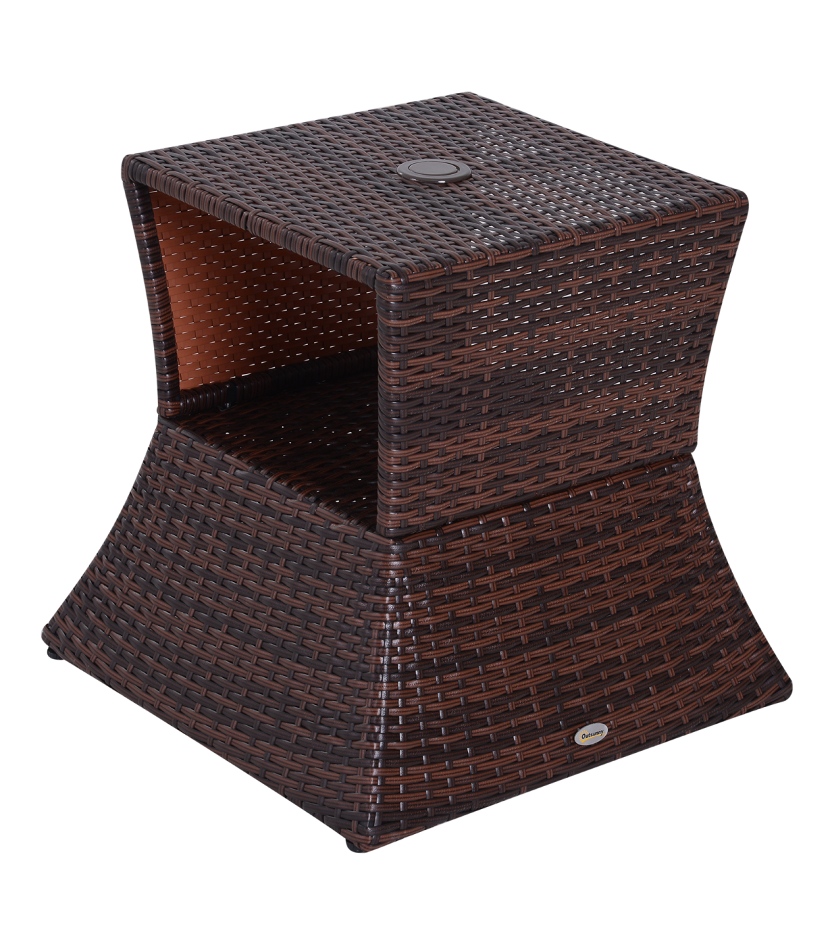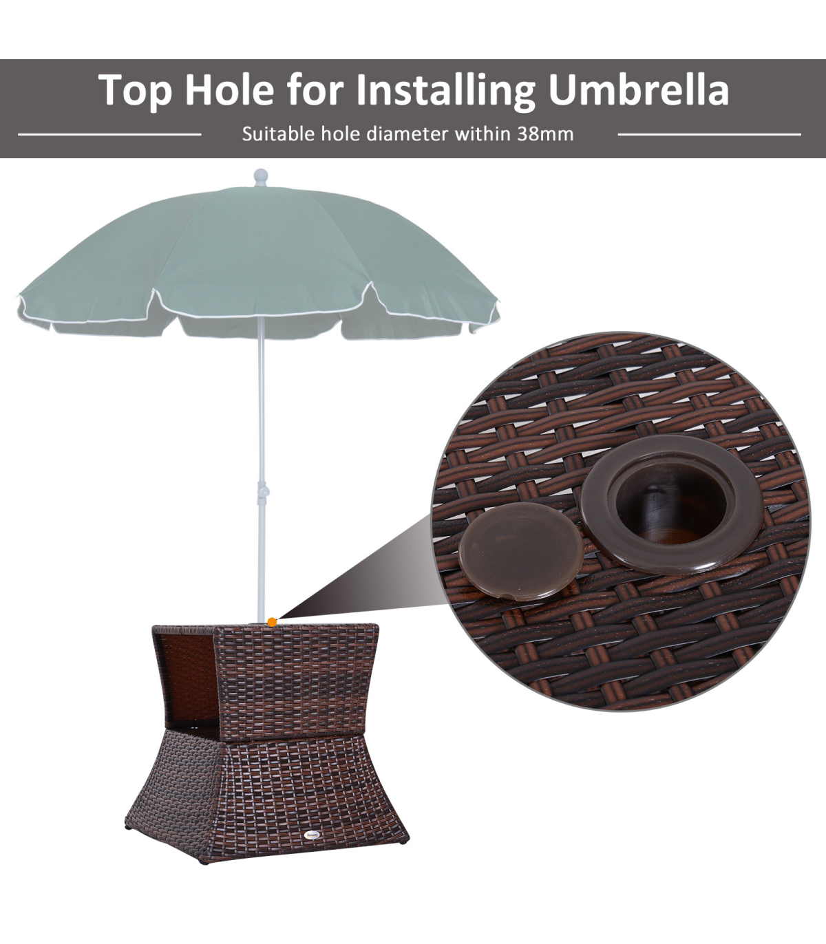 Outsunny Rattan Wicker Tea Coffee Table w/ Umbrella Hole Storage Space Brown