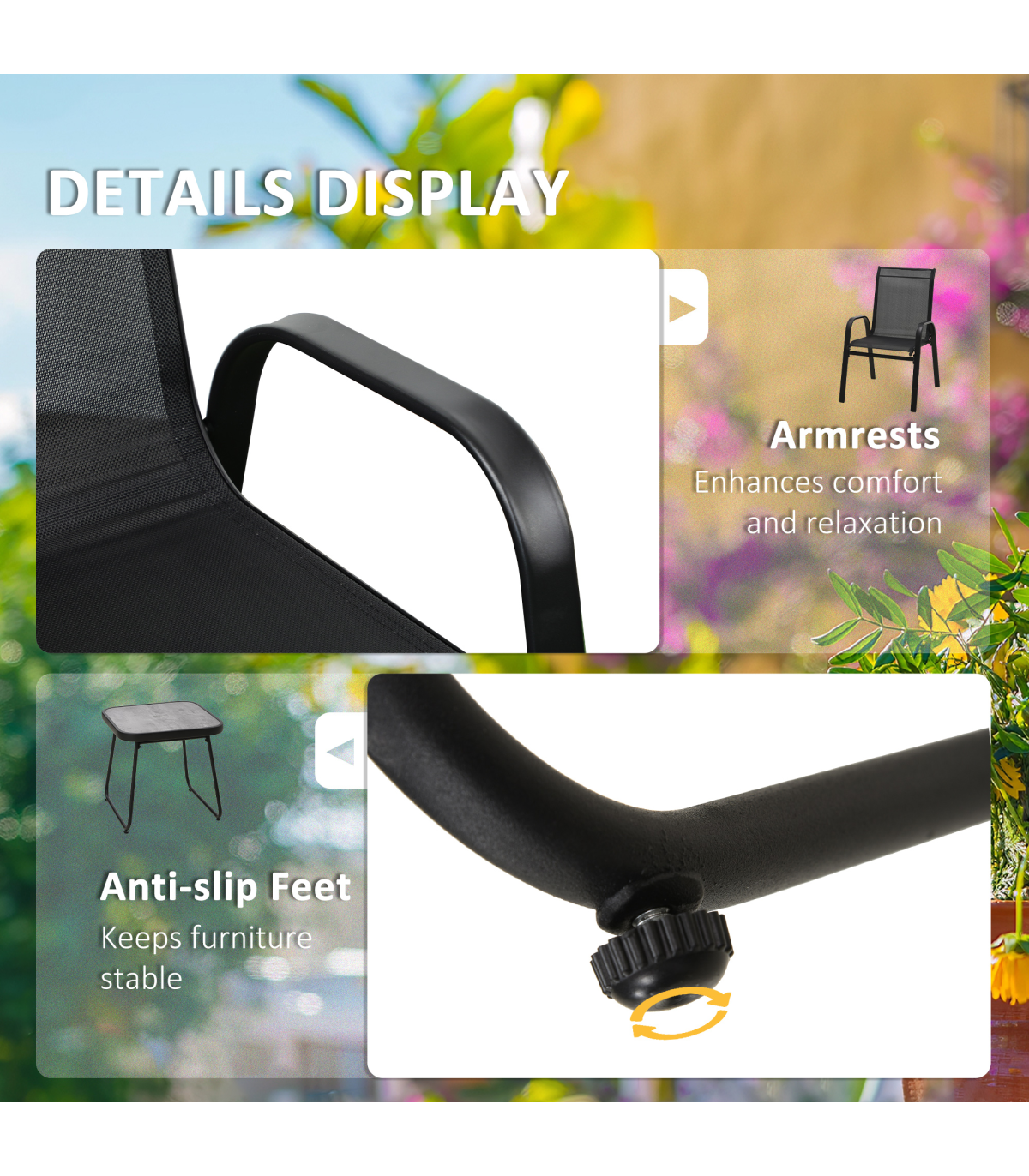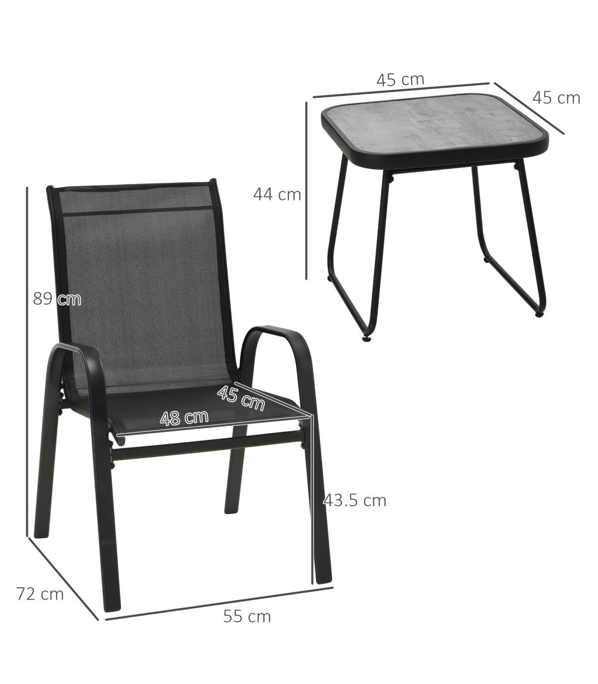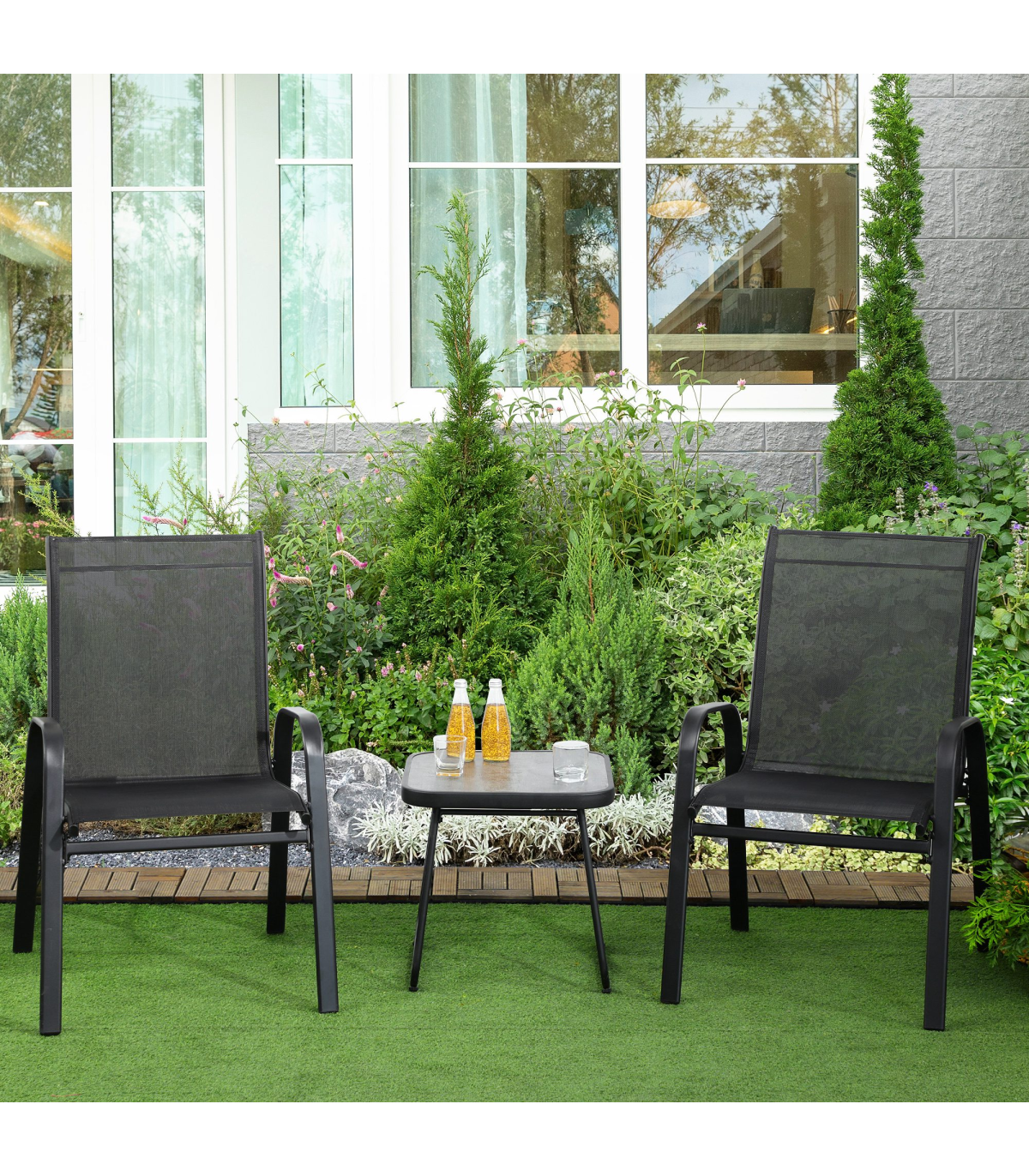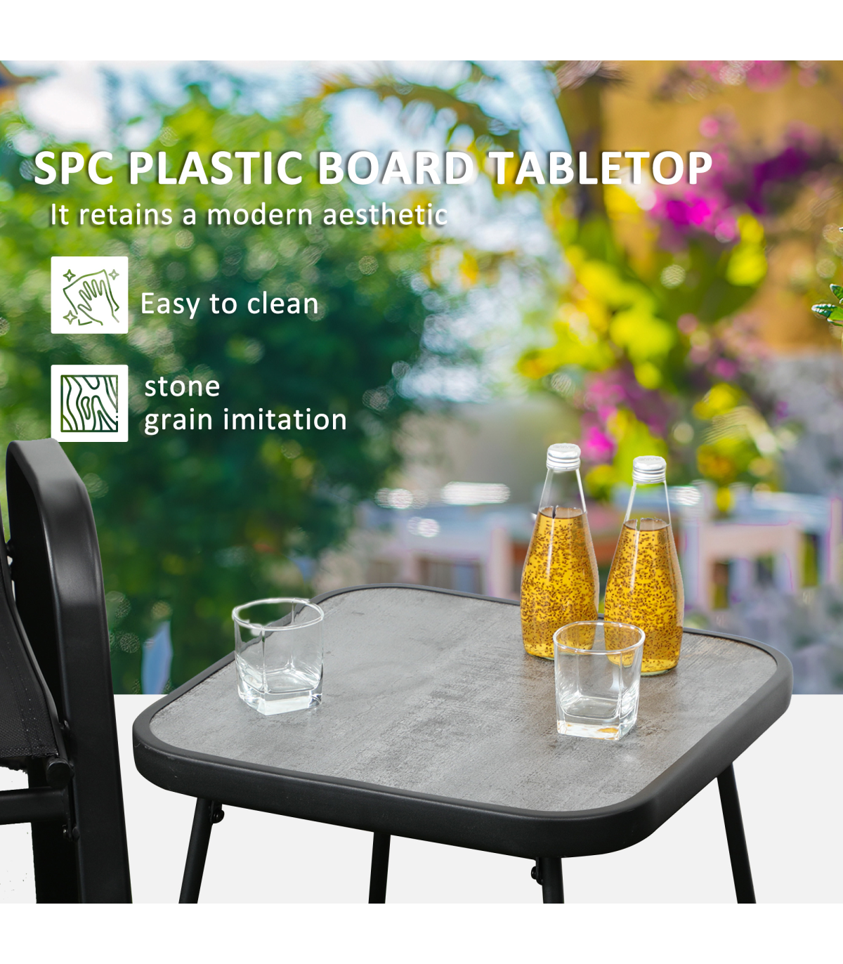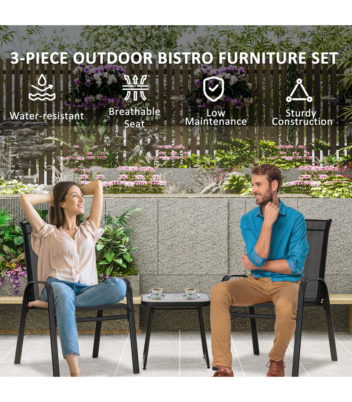 Outsunny 3PCs Bistro Set w/ Breathable Mesh Fabric & PSC Board Top Table, Black