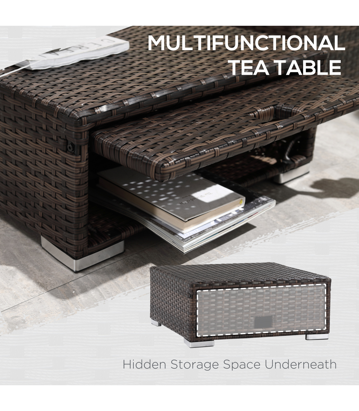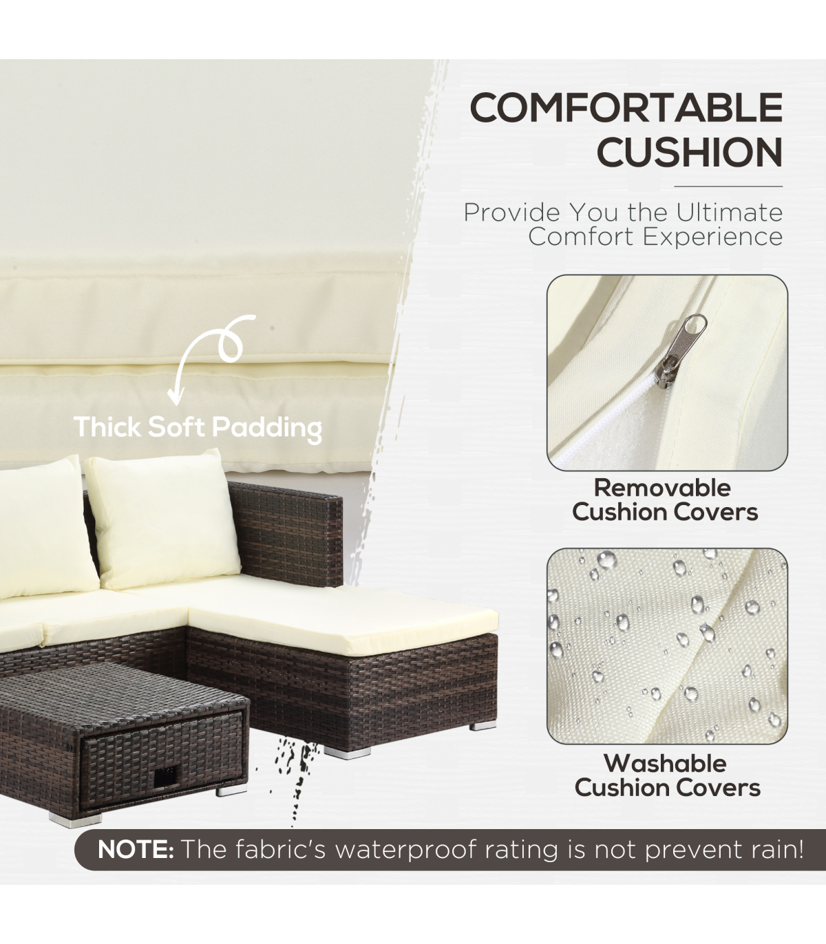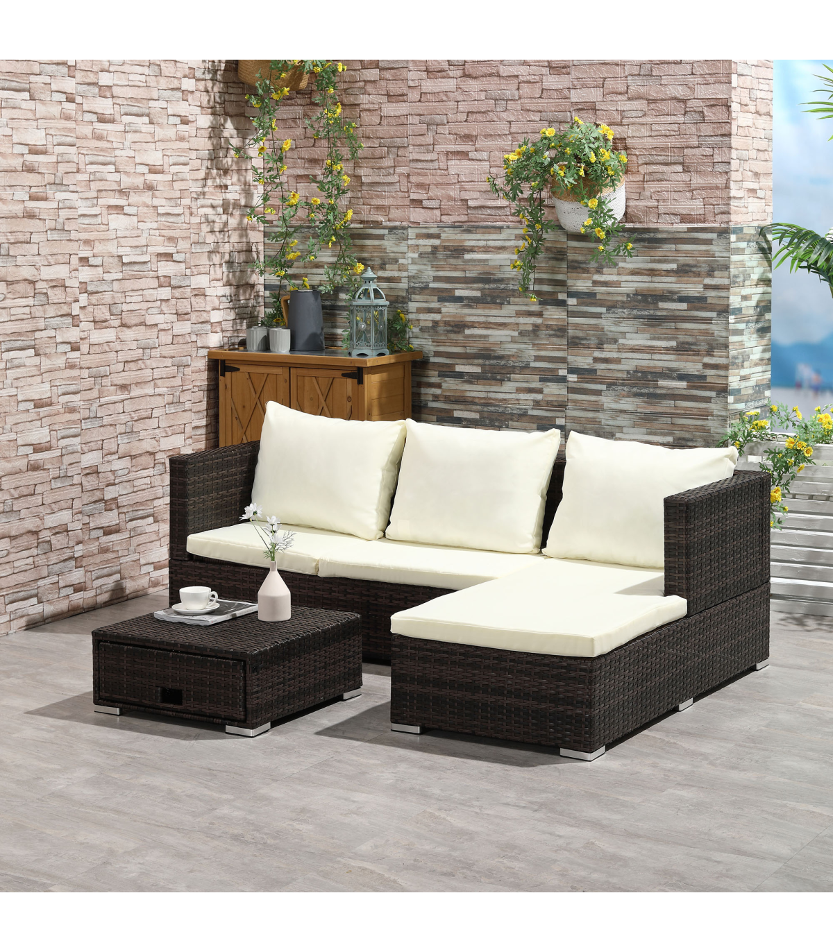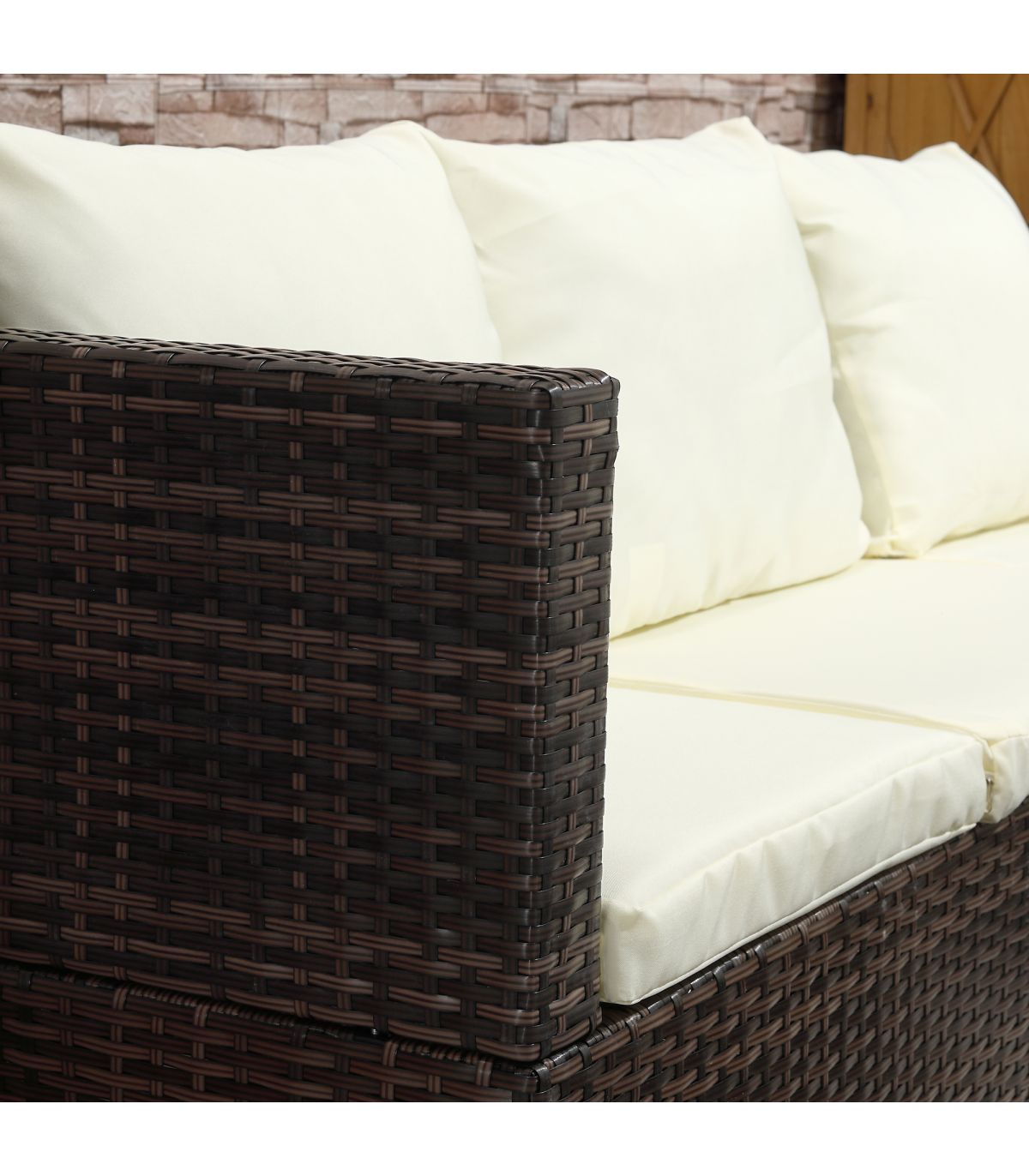 THREE PIECE SET: The rattan corner sofa includes a two-seater corner sofa, a two-seater sofa with a reclining back and a storage coffee table. Seats up to four people with plenty of room for them to relax. The rattan garden furniture is perfect for bringing family and friends together this Summer and beyond.METAL WRAPPED IN RATTAN: The garden corner sofa has powder coated, rust-resistant steel ensures a strong and stable base, with the PE wicker making it sturdy, durable, easy to clean and resistant to UV and light water damage.RECLINING SEAT: Located among the garden rattan furniture sets, it leans back to five different positions, letting you choose an angle which is most comfortable for you. STORAGE TABLE: Underneath space of the outdoor corner sofa is concealed by a side lift-up door, a discreet way to keep your garden dining area neat and tidy.THICK CUSHIONS: Placed on the seats and backs and on the footstool of the conservatory furniture so you can sit comfortably all day long. Machine washable covers are resistant to light water and stains. DIMENSIONS: Sofa: 62H x 130W x 64Dcm. Seat: 121W x 56Dcm. Adjustable seat back: 31-62cm. Table: 24.5H x 58W x 58Dcm.MAXIMUM LOAD: Sofa: 160kg per seat. Table: 50kg. ASSEMBLY REQUIRED.