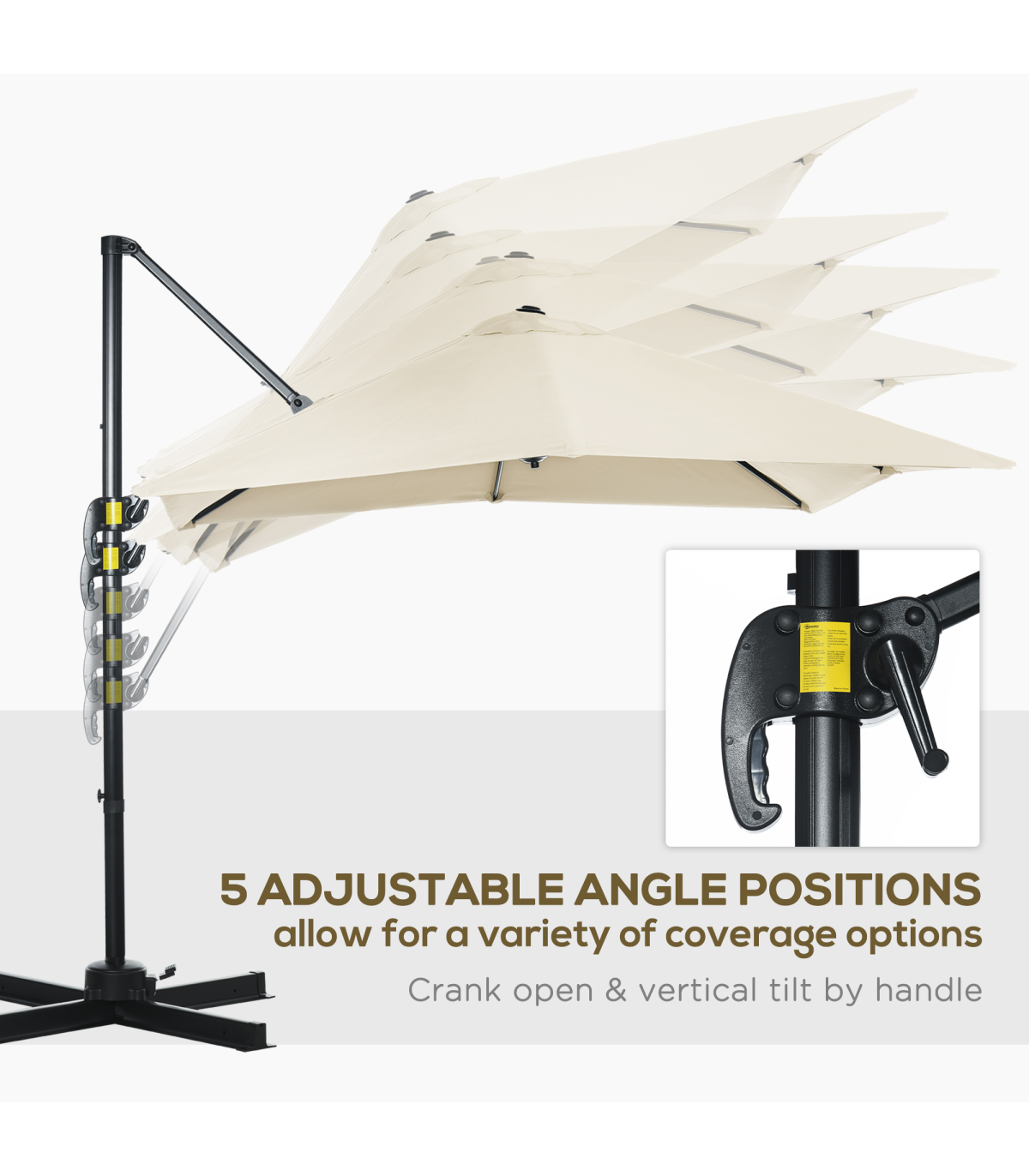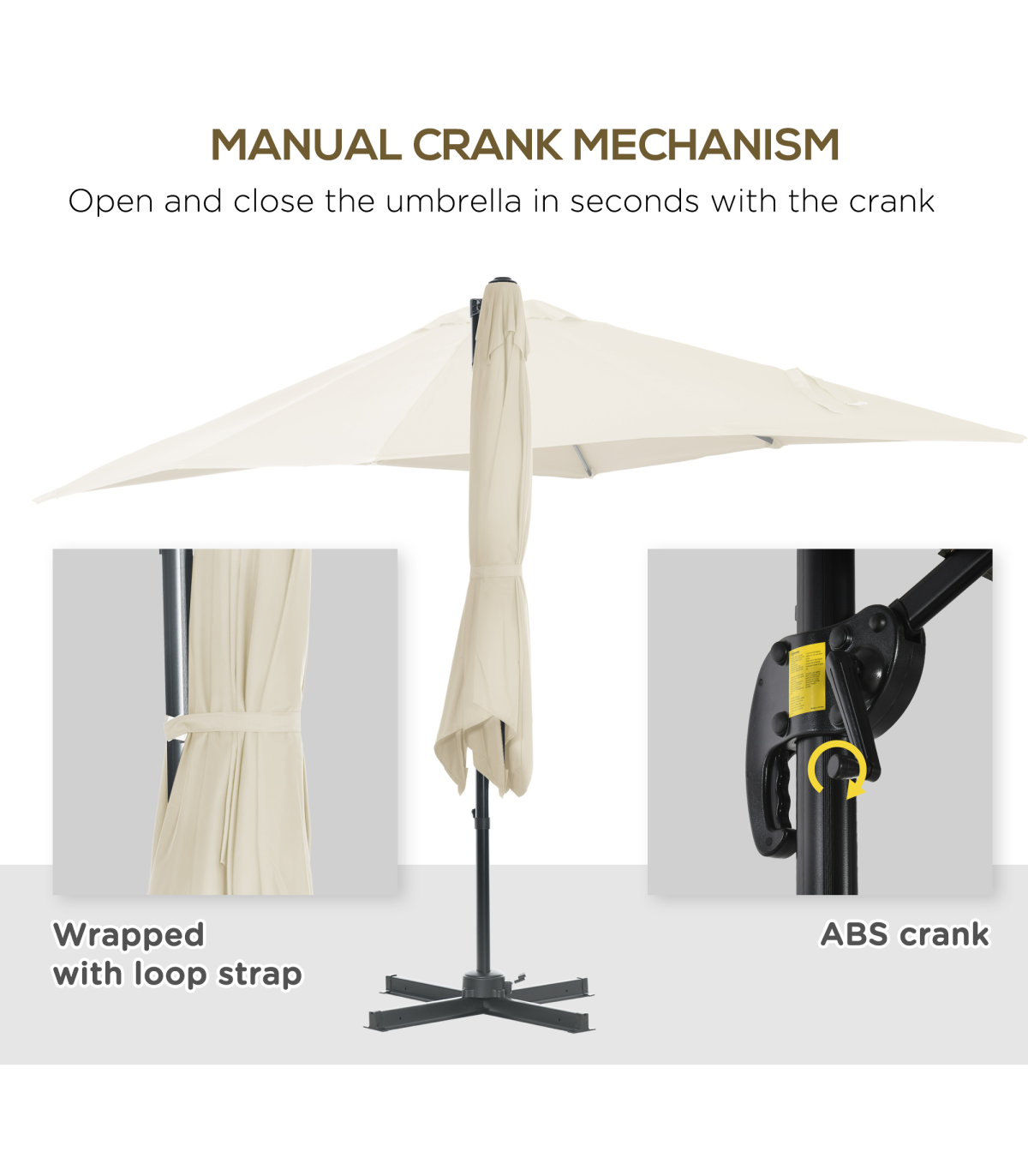 Square Cantilever Roma Parasol 360 Rotation w/ Hand Crank, Cream White