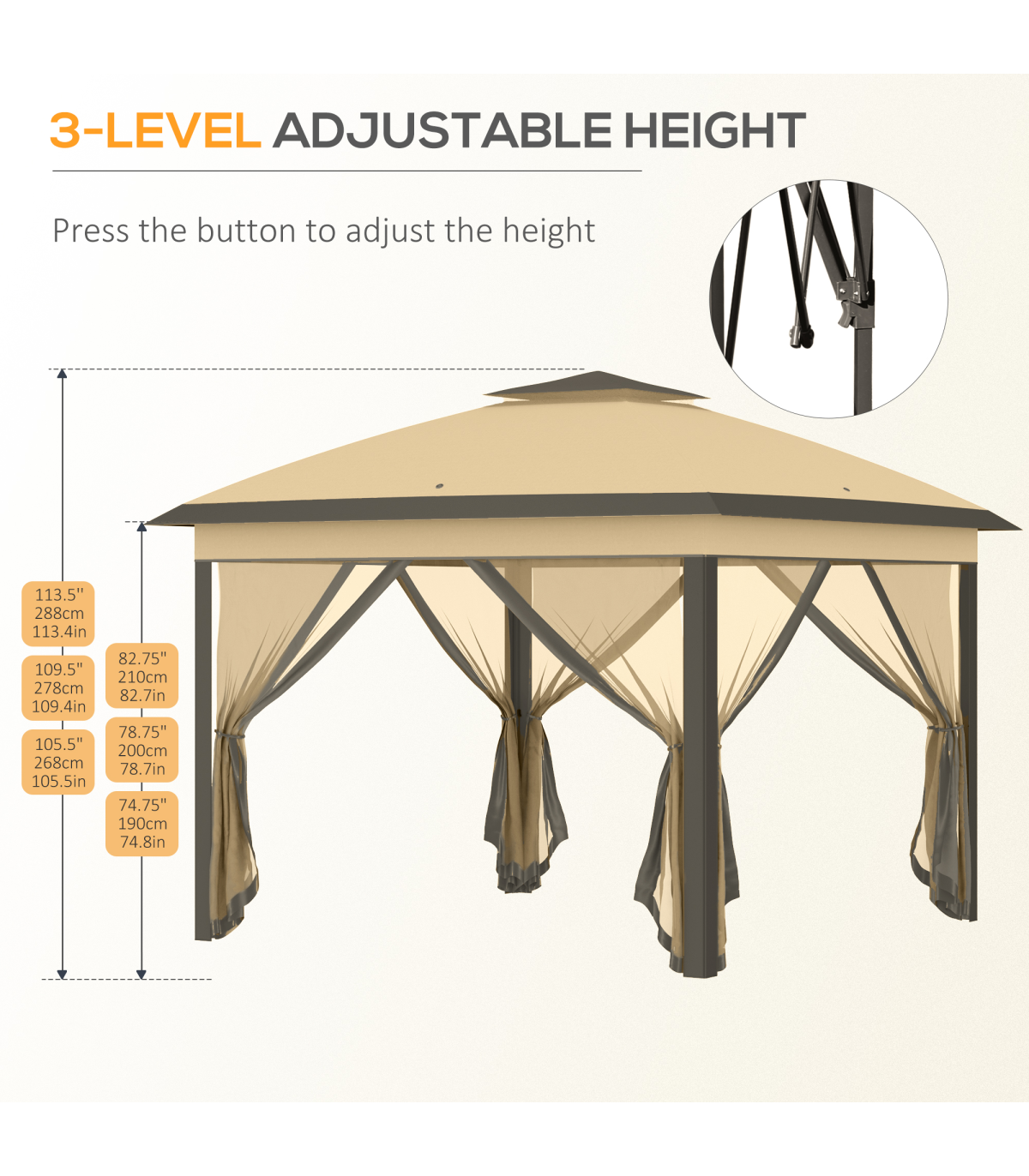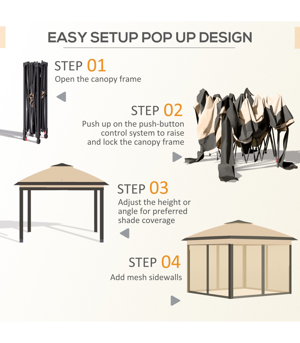 Pop Up Gazebo Height Adjustable Canopy Tent w/ Carrying Bag, Beige