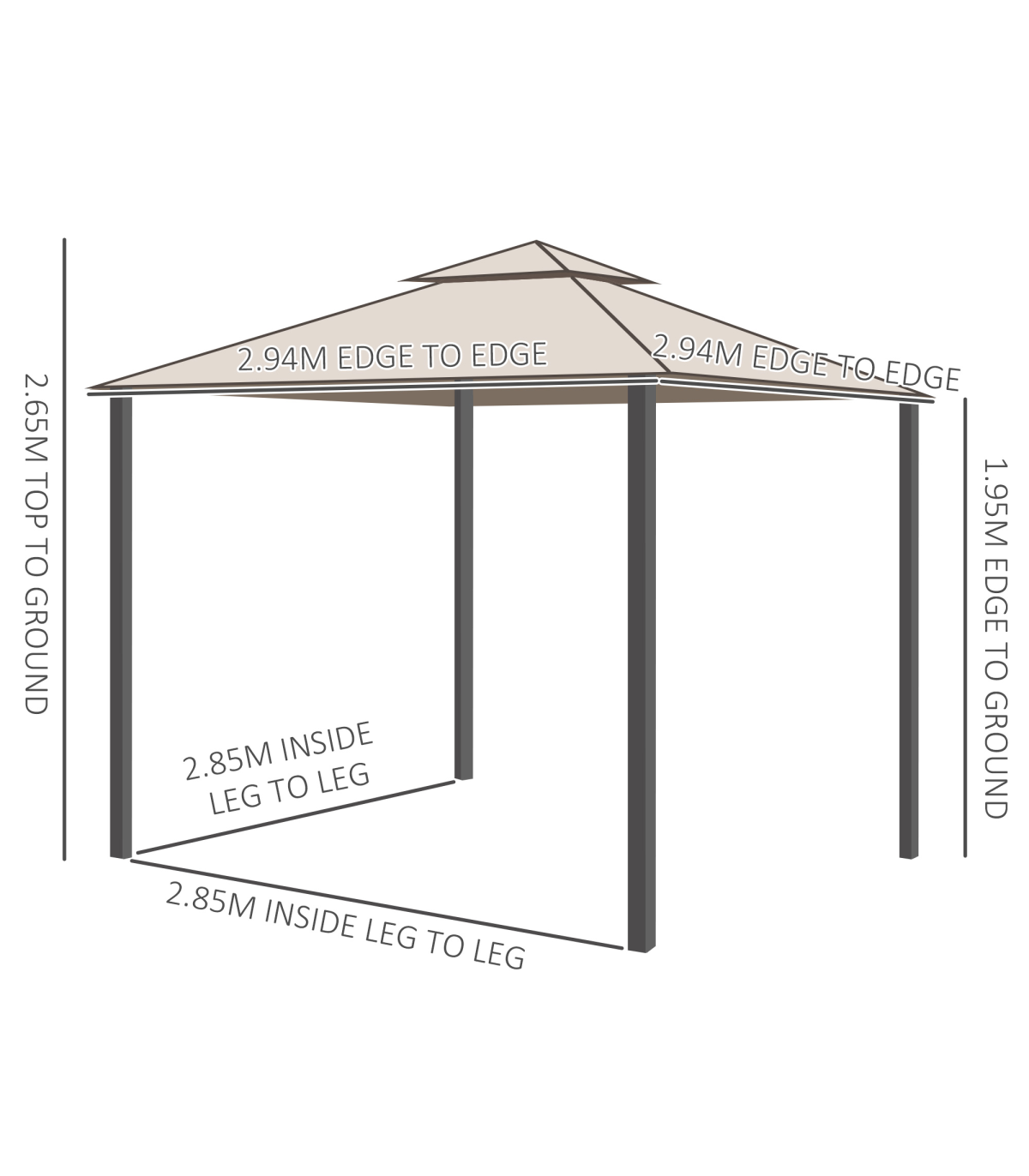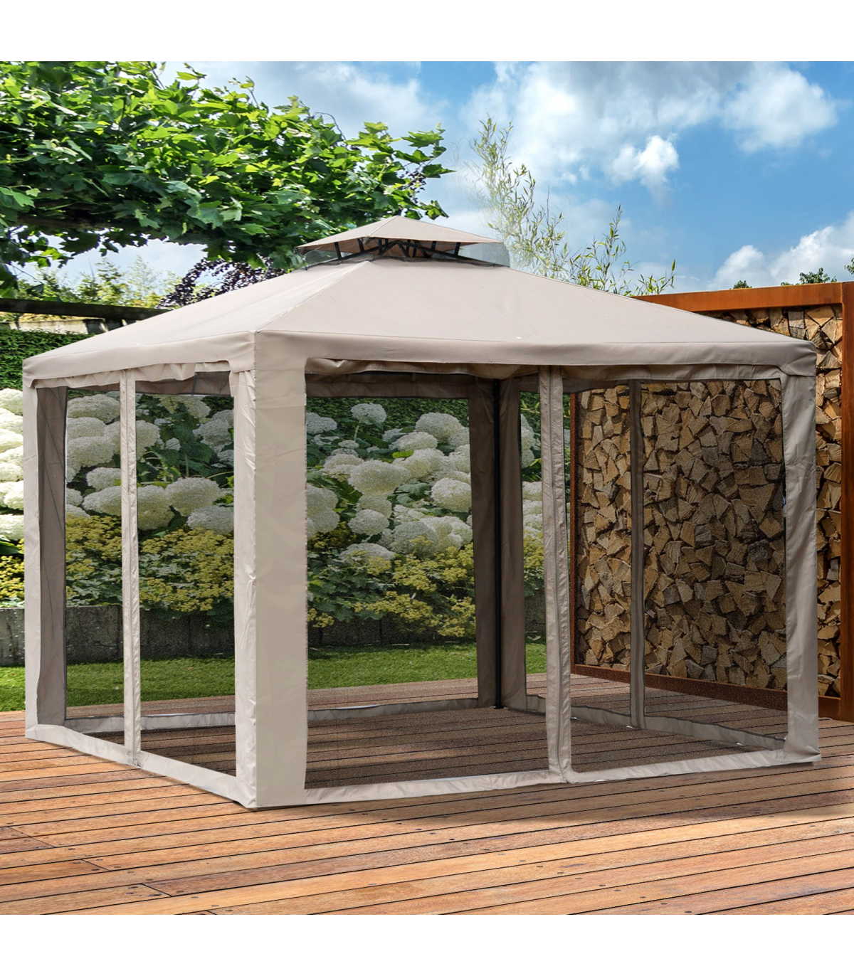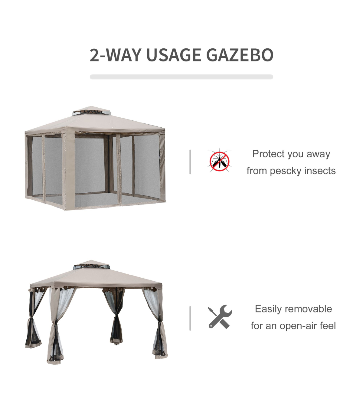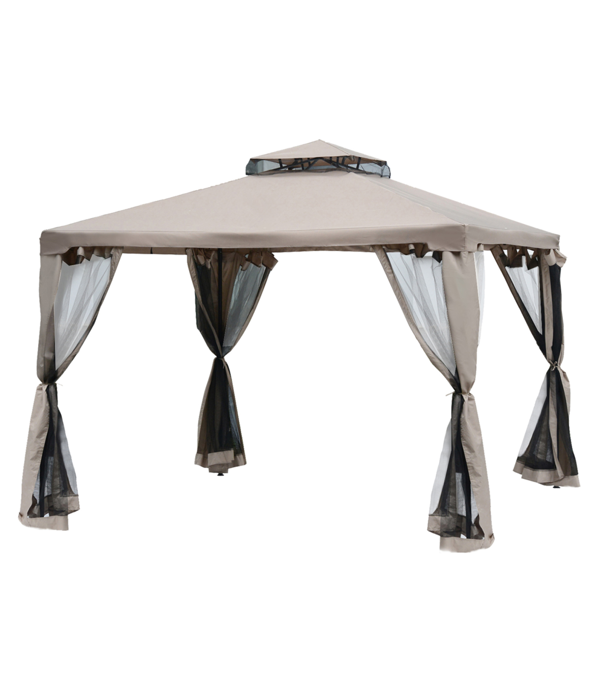 Outsunny Outdoor Gazebo, 2-tier Roof W/Netting, 295L x 295W x 263Hcm-Taupe