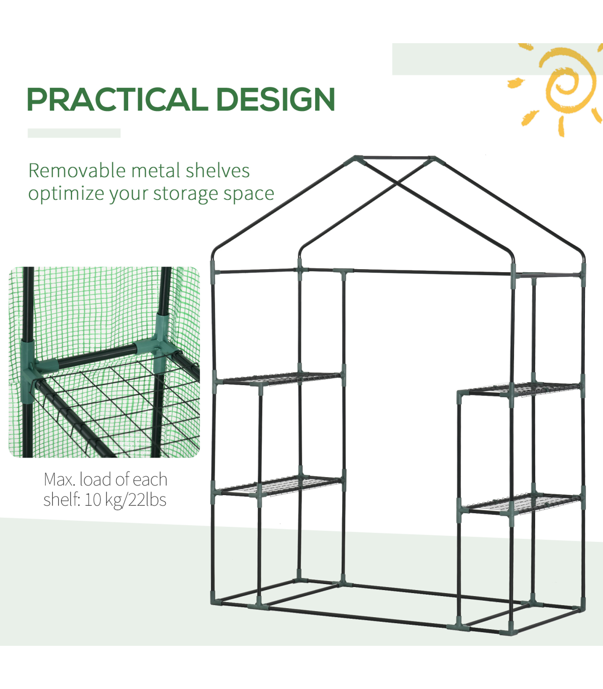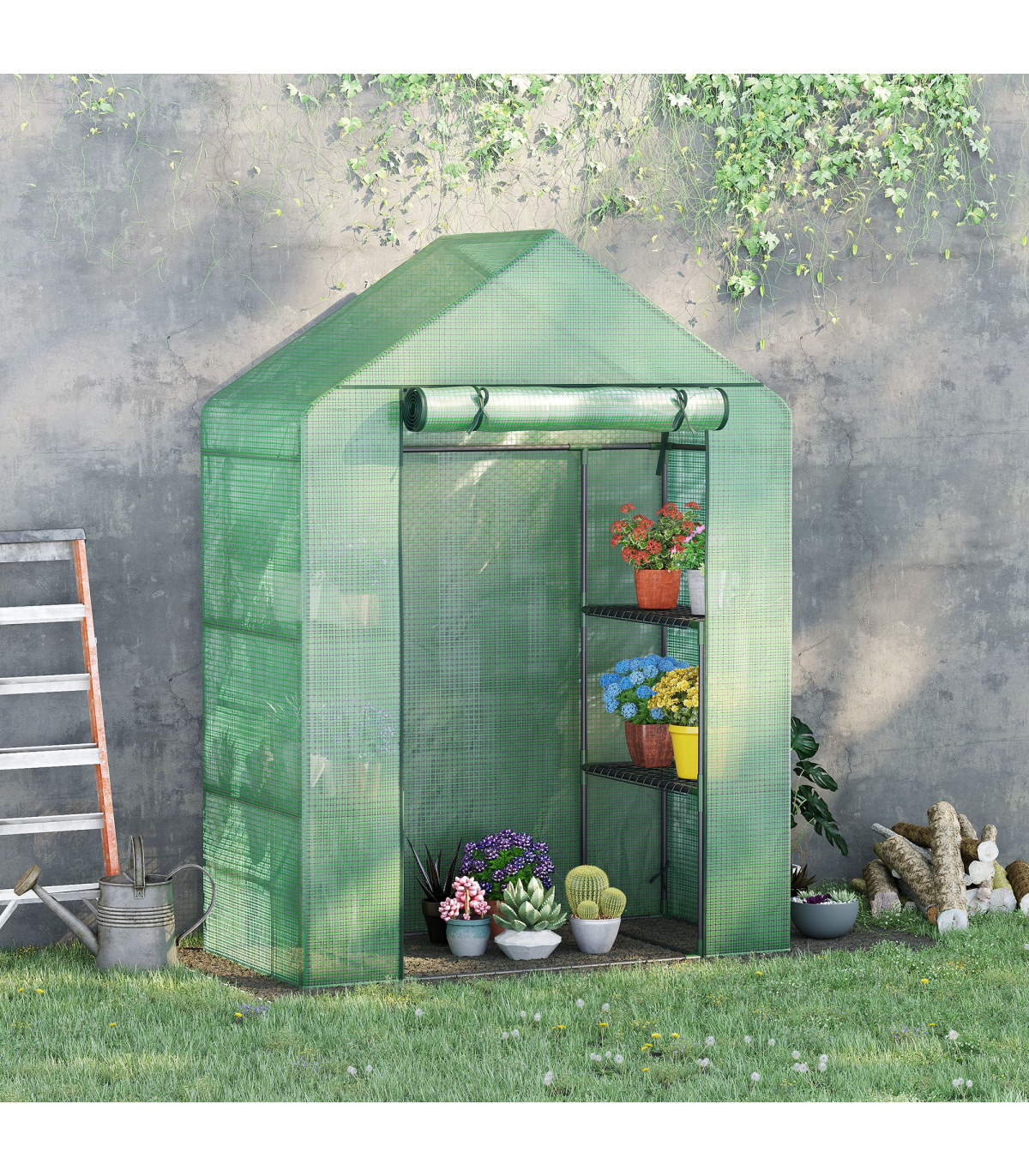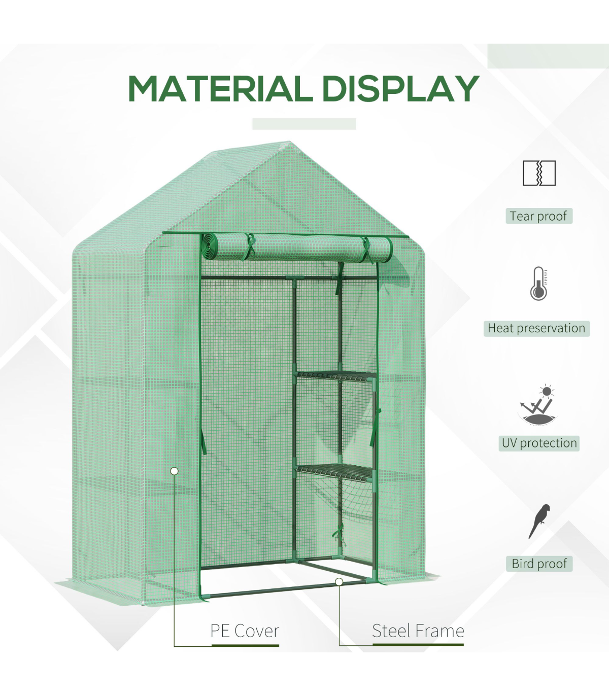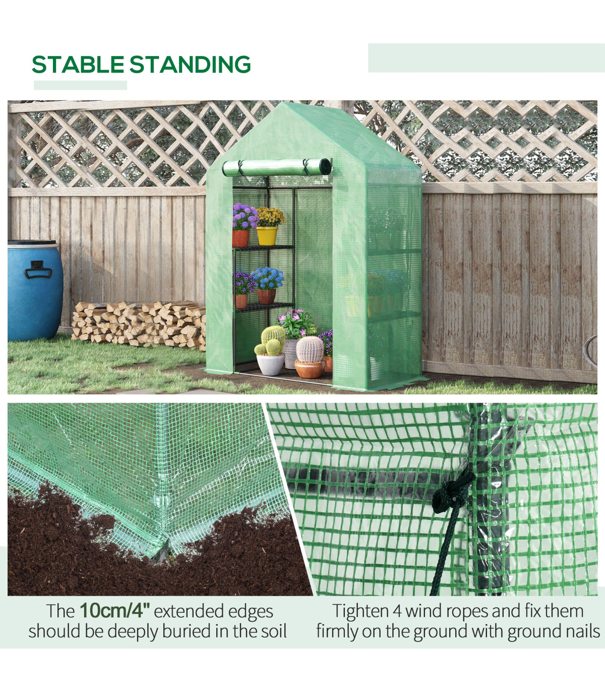 WalkIn Greenhouse 2 Tier Shelf, Roll-Up Door, PE Cover, 141x72x191cm, Green
