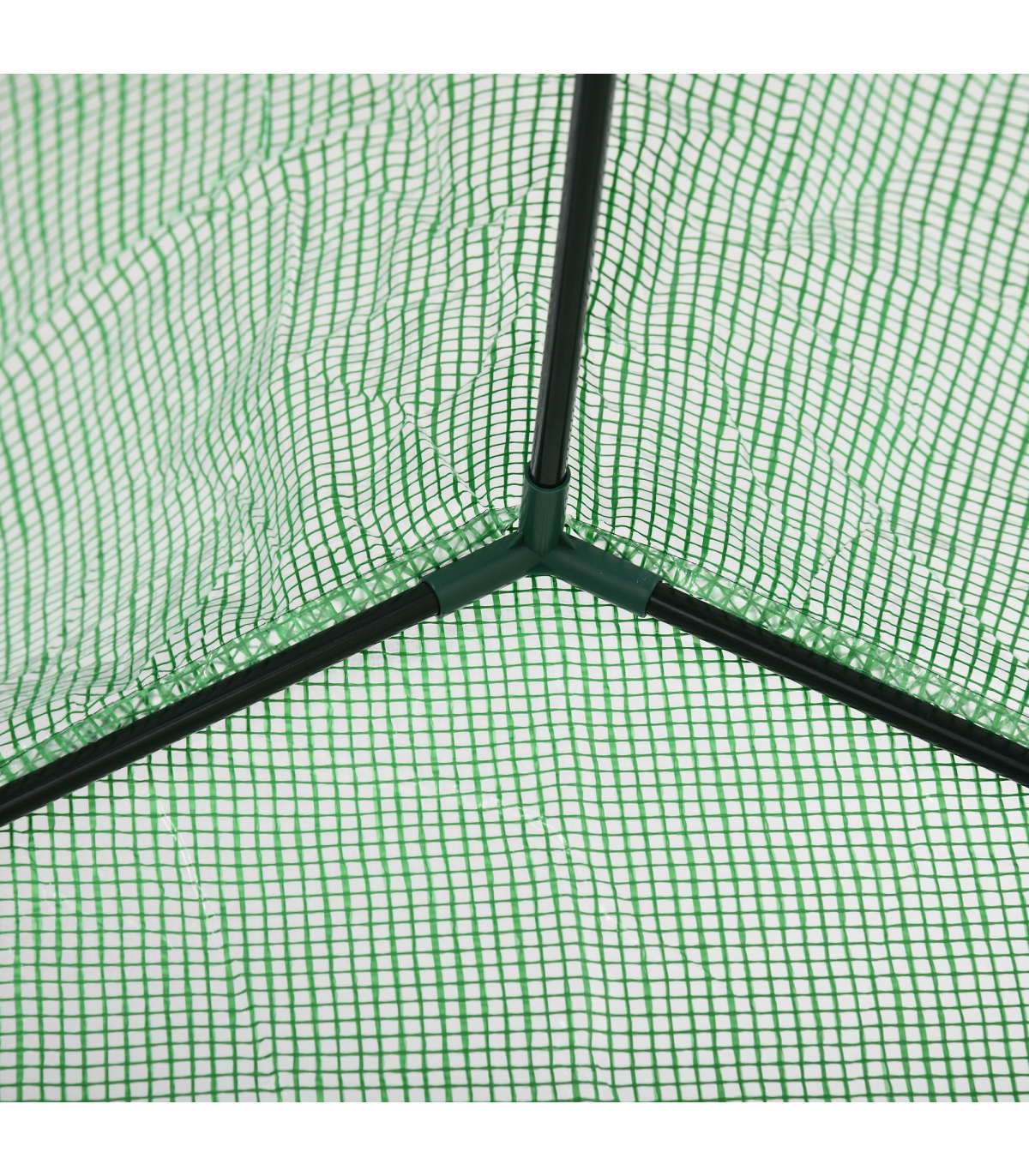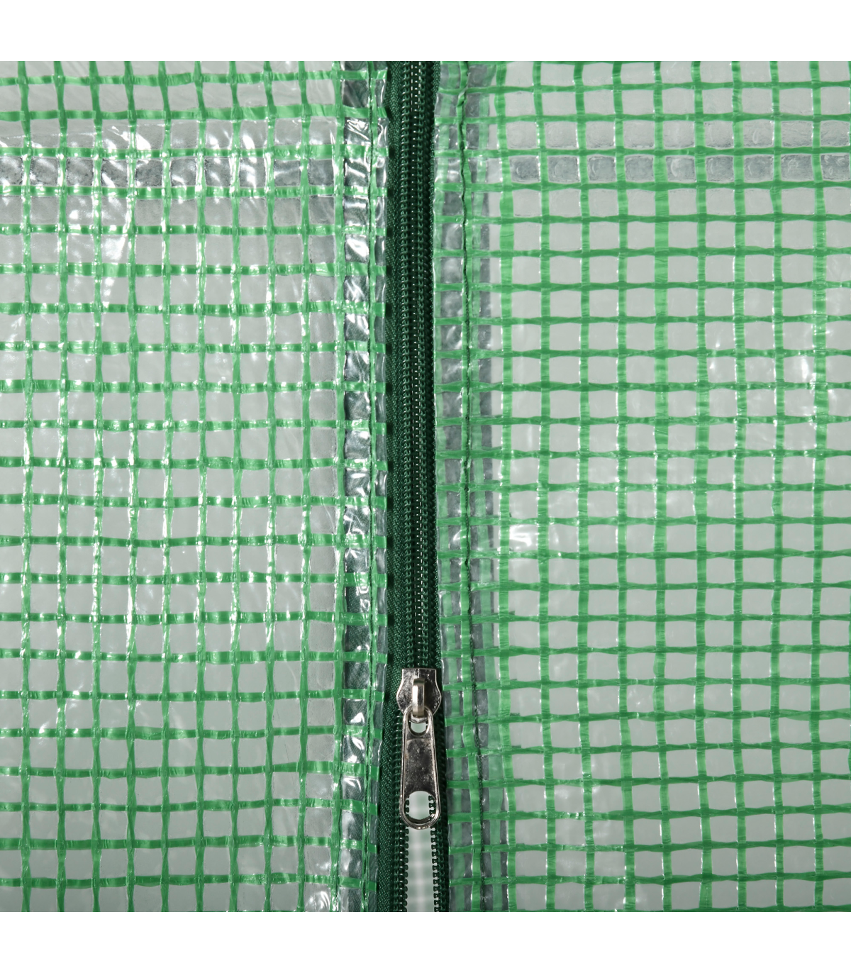 Plastic cover is durable, protects inside from mild wind, light rain and cold 10cm extended cover to bury in the soil for extra stability Solid steel frame for a sturdy structure which stands steadily upright Two shelves on each side for plant display and storage Zipped roll-up door for easy access in and out Four guy ropes and four ground stakes included in package Assembly required