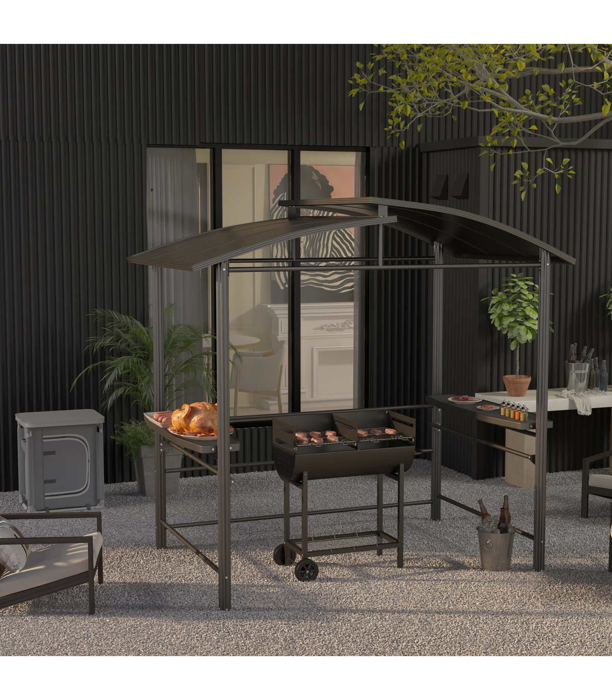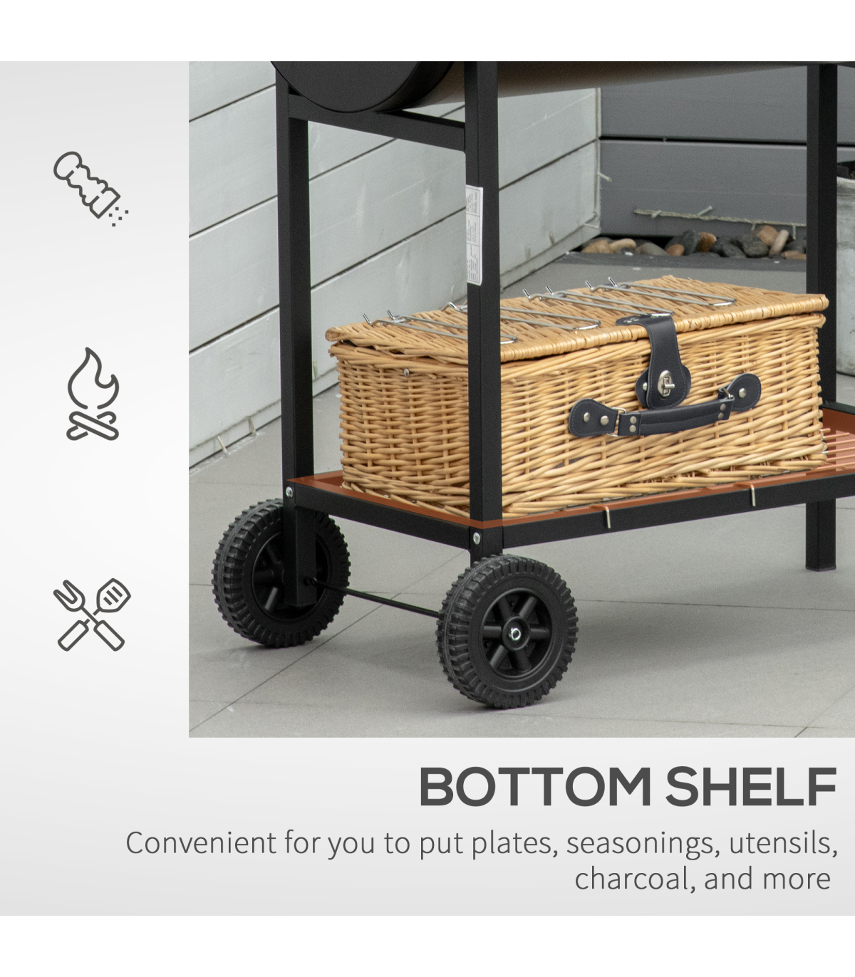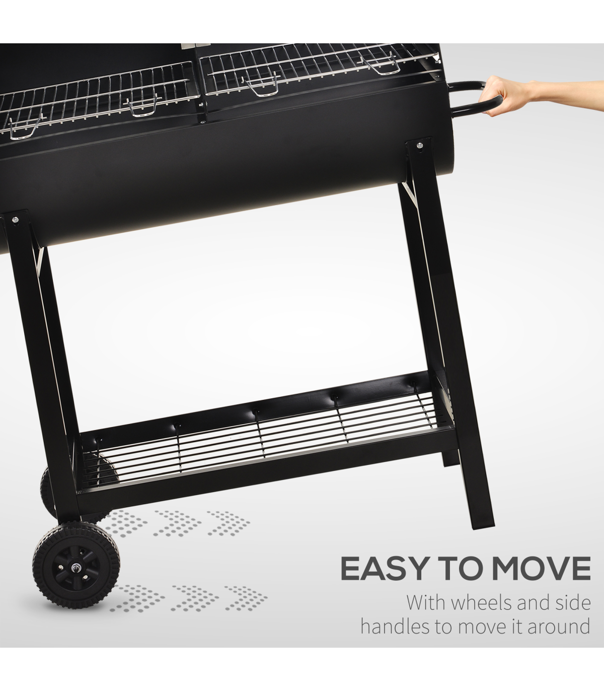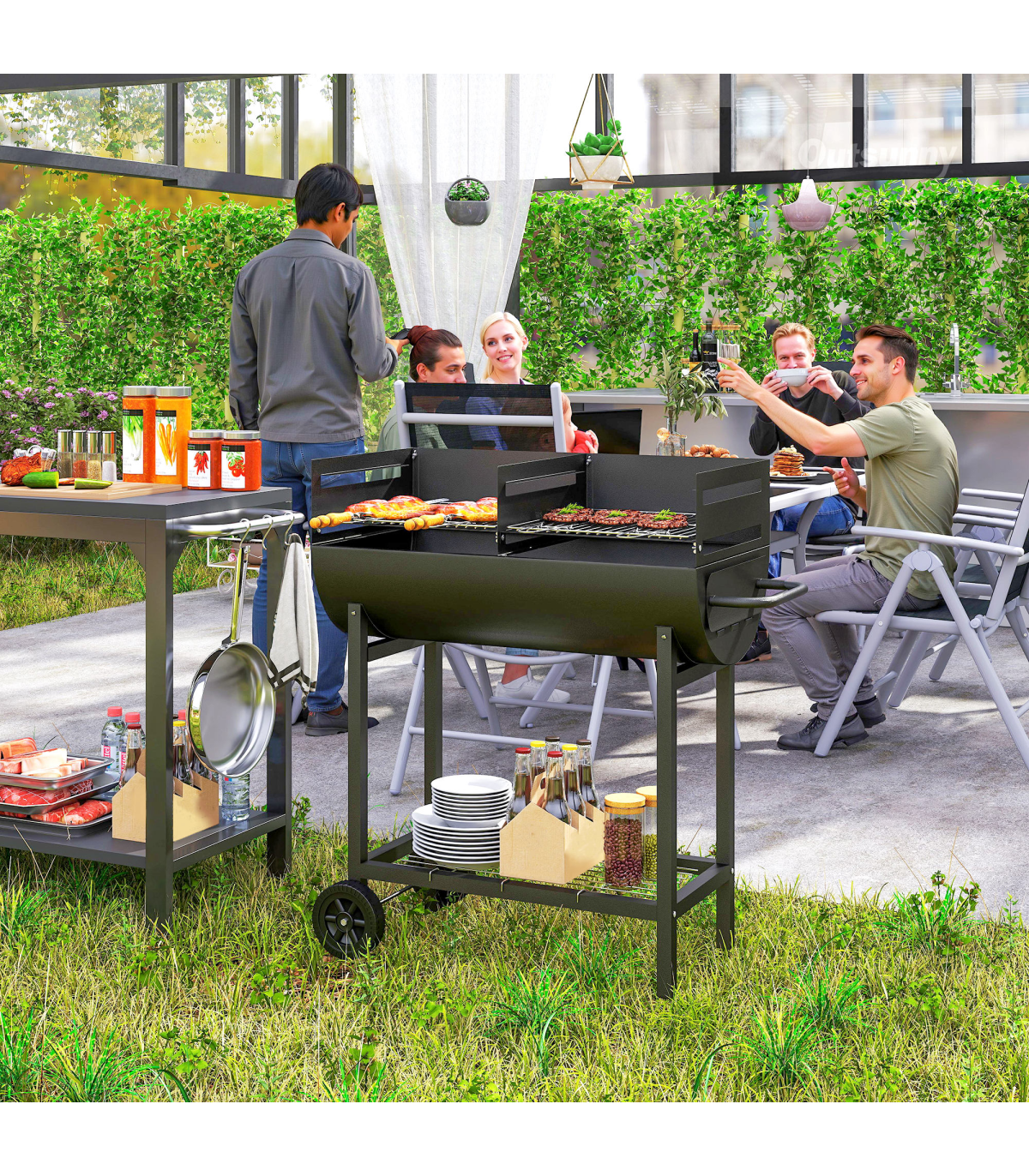 Features two separate grilling areas, allowing you to cook food quicker Two plastic wheels to move around easily without damaging body Adjustable height (82/86/94.5cm) to set to a safe cooking level Mesh bottom shelf for easy and convenient storage Food grade materials are used for the grill racks Maximum load 10kg, assembly required