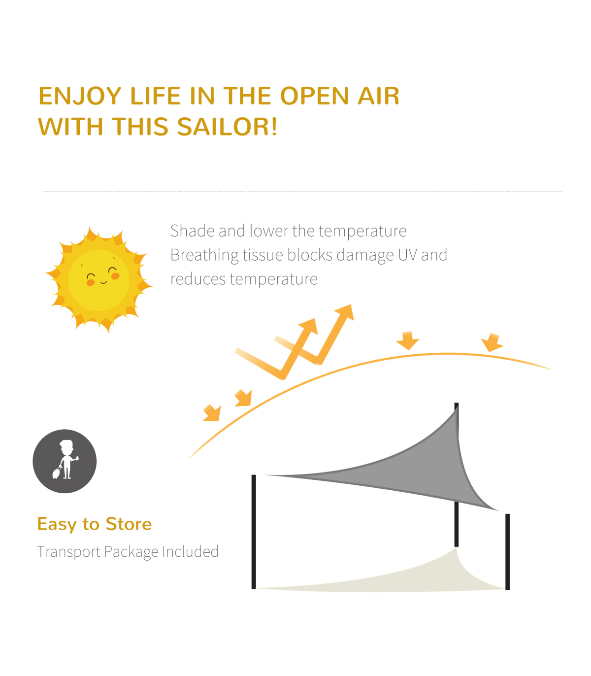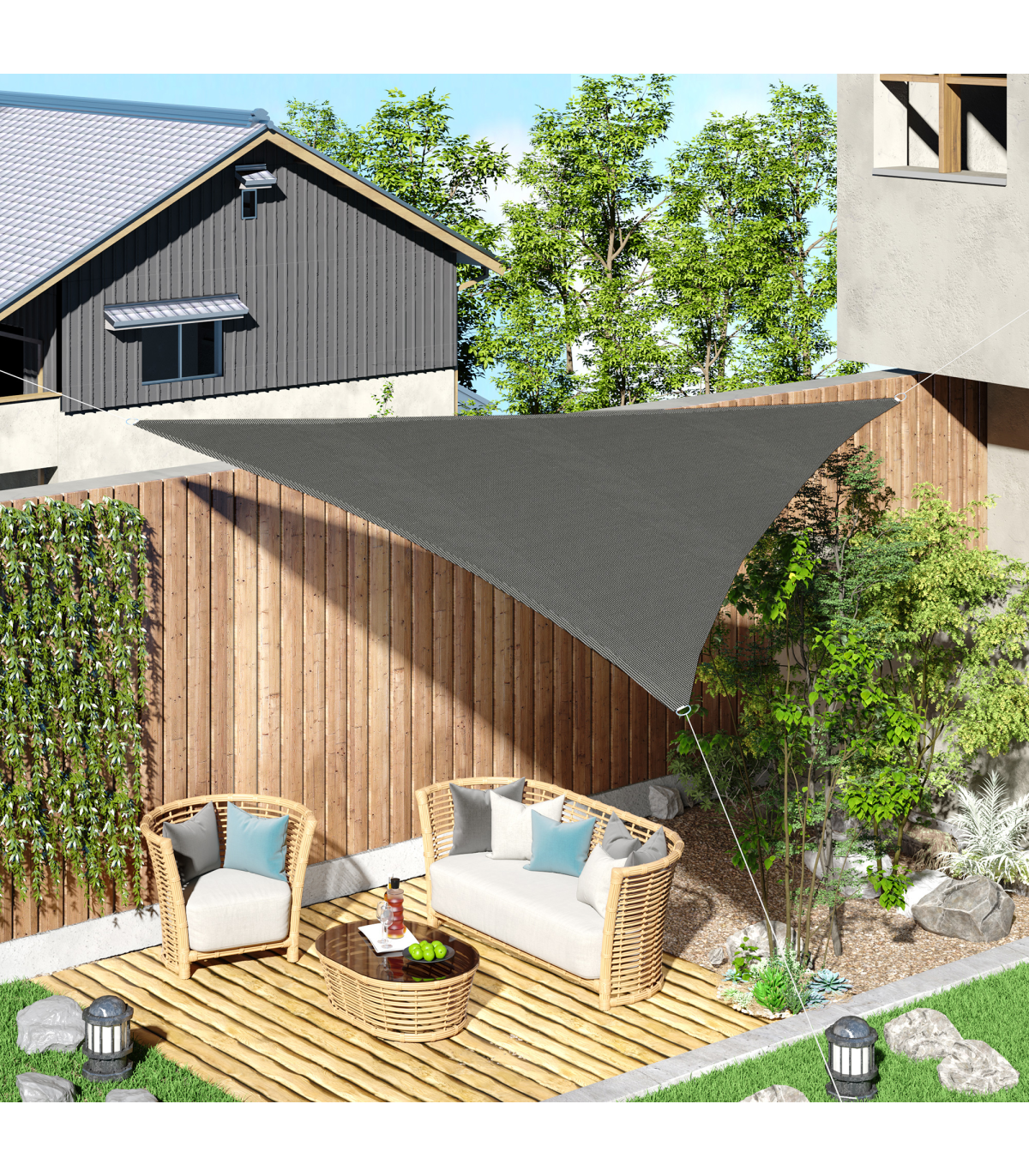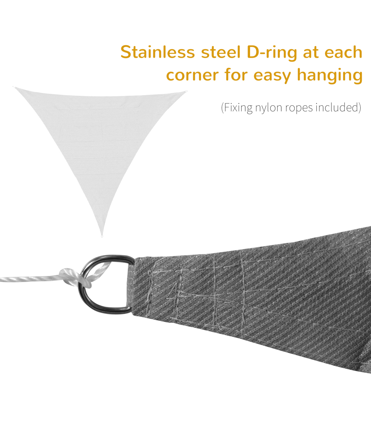 Keep sheltered outdoors with this sail shade from Outsunny. Made from 185gsm polyethylene, our sail shades for garden are tough and protects you from direct sunlight and damaging UV rays - meaning you can sit safely underneath. Cut to a triangle shape, this sun sail is easy to attach to odd-shaped spots, with stainless steel rings on each corner, and ropes to secure into place. Now any spot will become the go-to place when the sun comes out to play. Carry bag included.